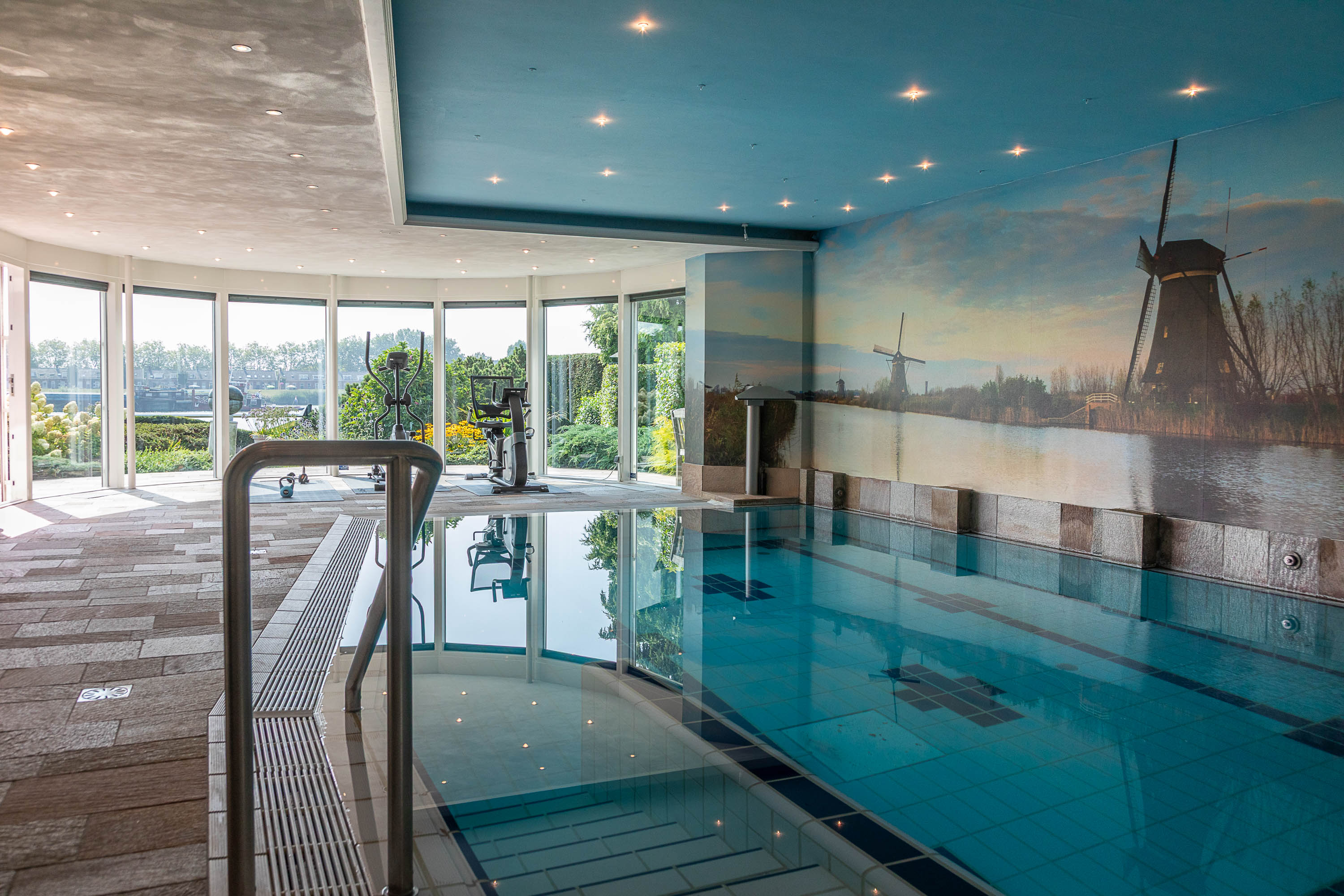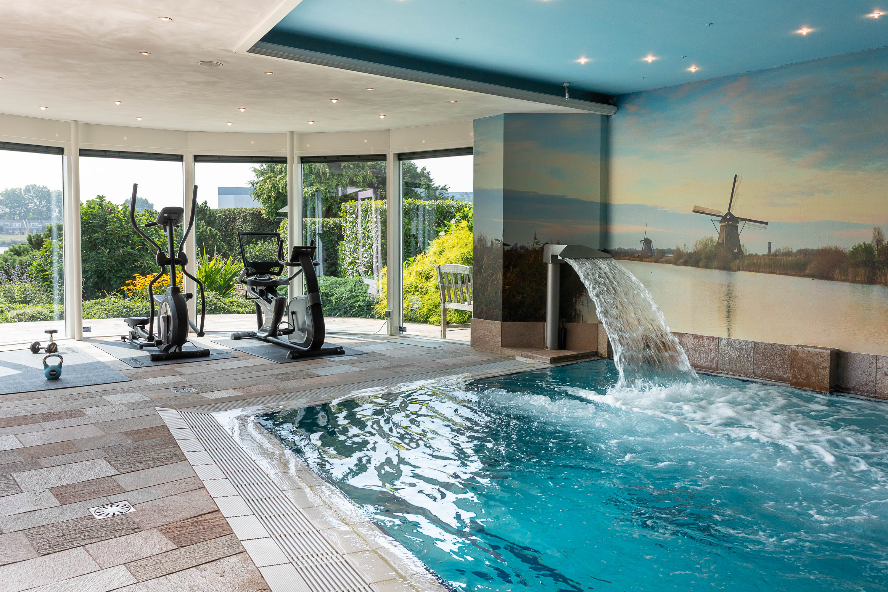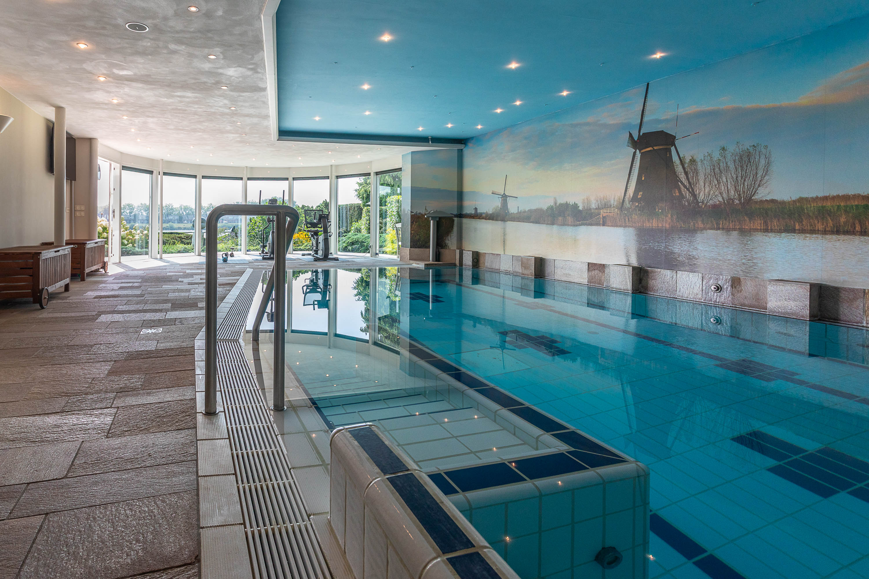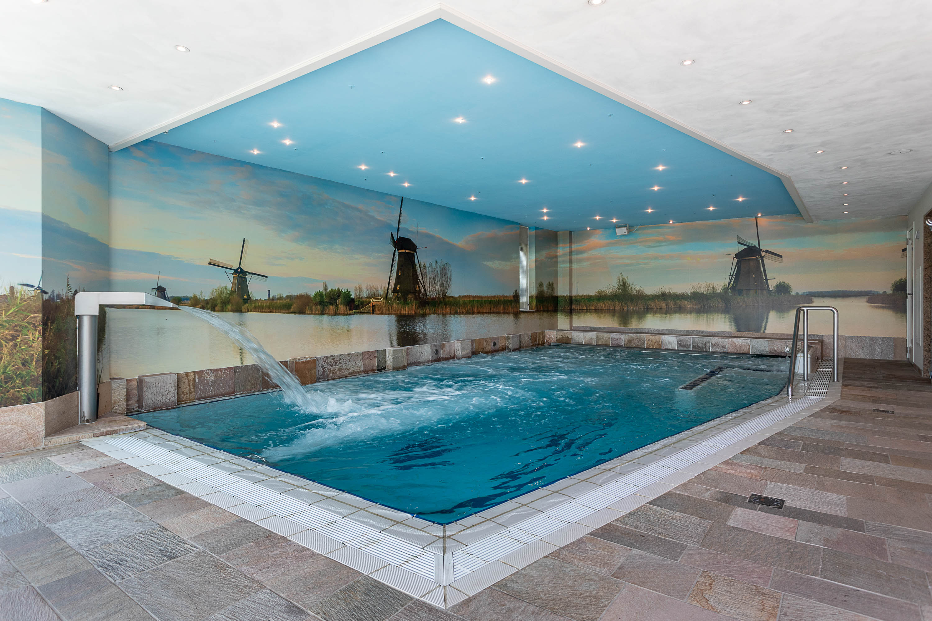 The basement features a complete wellness area, transforming this villa into your own private resort. Unwind in the swimming pool with jet stream, relax under the waterfall, enjoy the bubble plate and wall jets, or rest on the whirlpool bench. An oasis of relaxation — right at home.