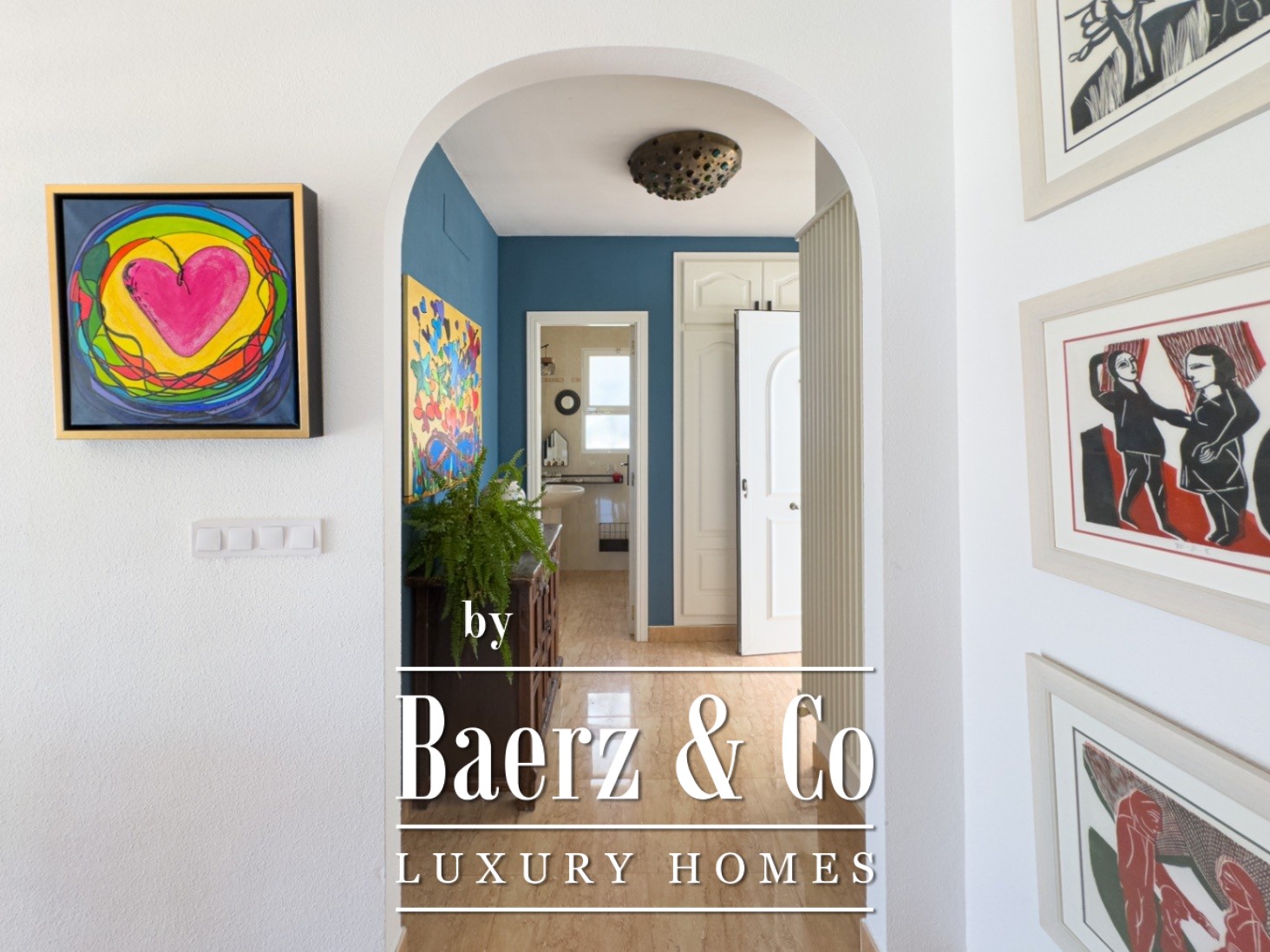 Outside, an array of palm and fruit trees create a sense of quiet seclusion. The private pool, dedicated parking, and refined garden spaces complete the sense of retreat. The outdoor kitchen enhances the Mediterranean atmosphere, making alfresco living effortless.