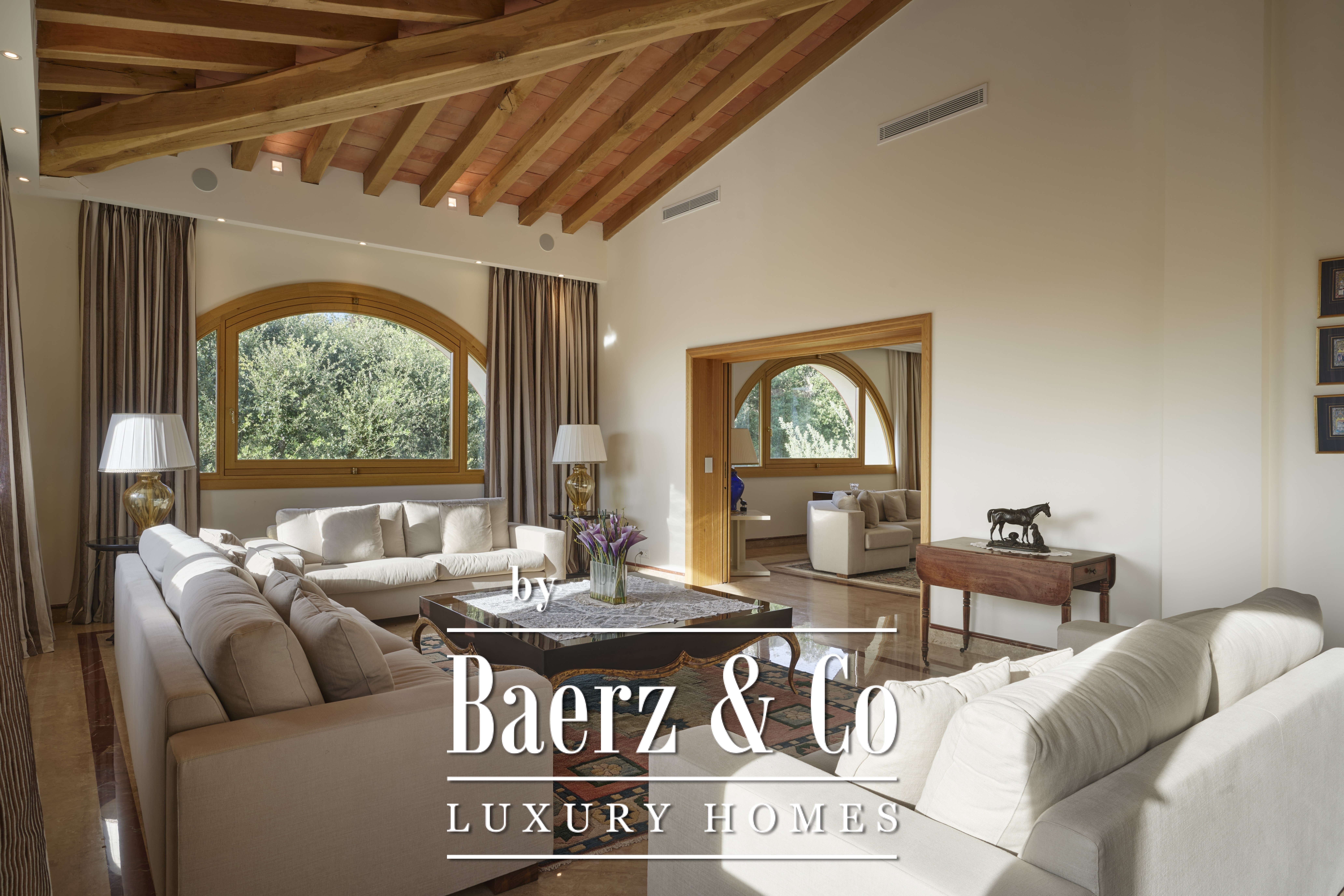 The estate also features a caretaker’s house, a fitness pavilion, and a **second adjoining property** with two large apartments. This additional property comes with planning permission to be converted into guest accommodations, a spa, or a gym.