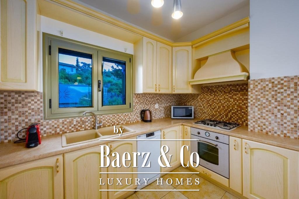 Outdoors, the infinity pool, BBQ area, aromatic gardens, and several dining and relaxation zones create a setting to savour. Features include autonomous fan coil heating, air conditioning, a solar water system, double glazed aluminum frames, and dedicated parking for two cars. This villa invites a lifestyle of quiet refinement and proximity to the heart of Lefkada’s rare natural beauty.