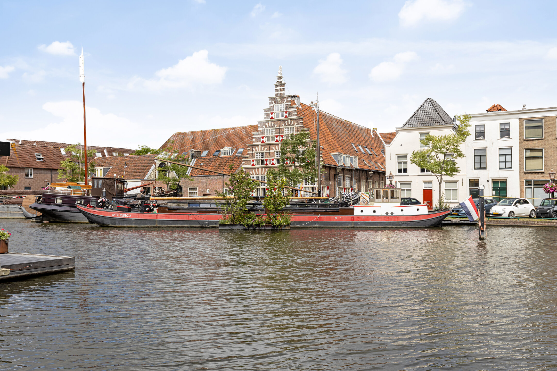 Op de plek waar eeuwen geleden de stadsmuren de stad beschermden, kijk je nu uit over de haven met haar historische schepen en monumentale panden. Het huis draagt nog altijd de charme van de vroege 20e en de 17e eeuw, met royale plafondhoogtes en een overvloed aan natuurlijk licht dat door de ramen naar binnen stroomt.