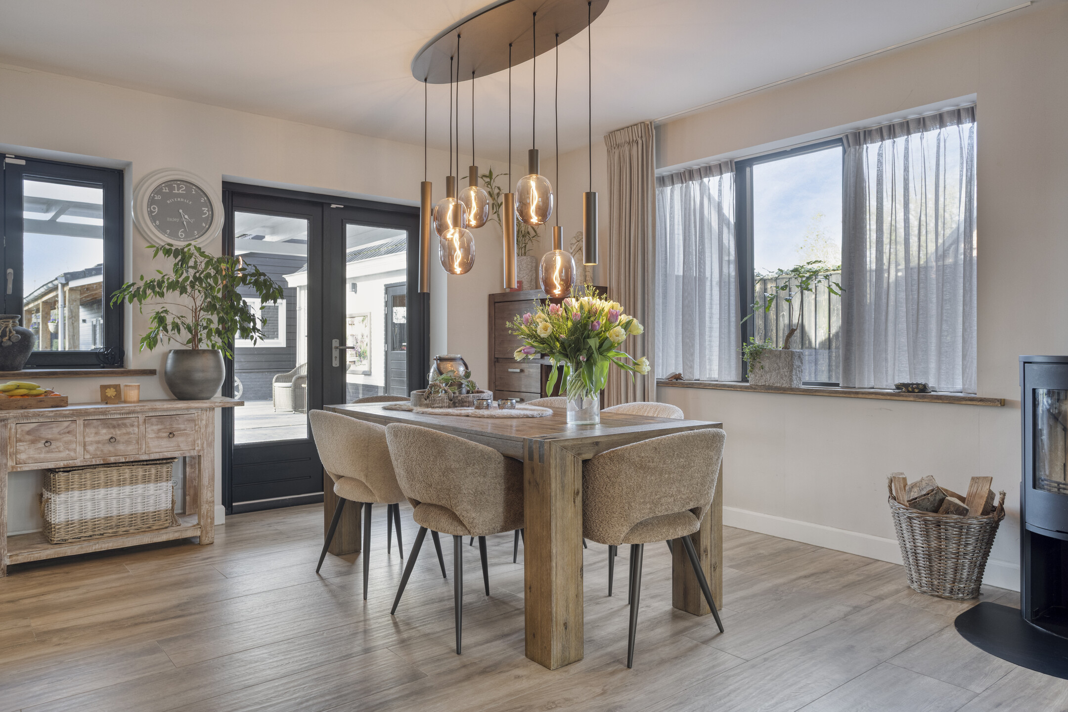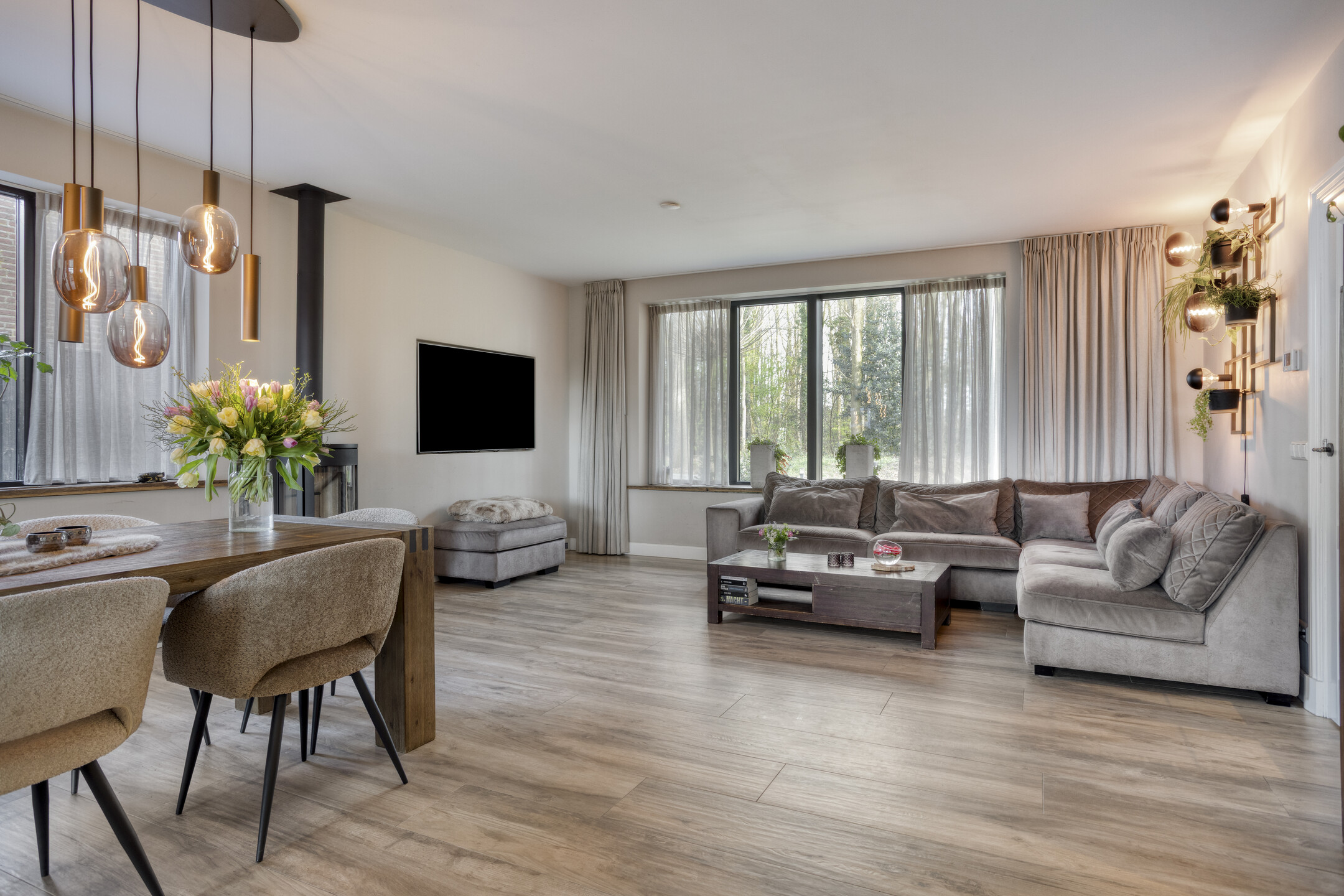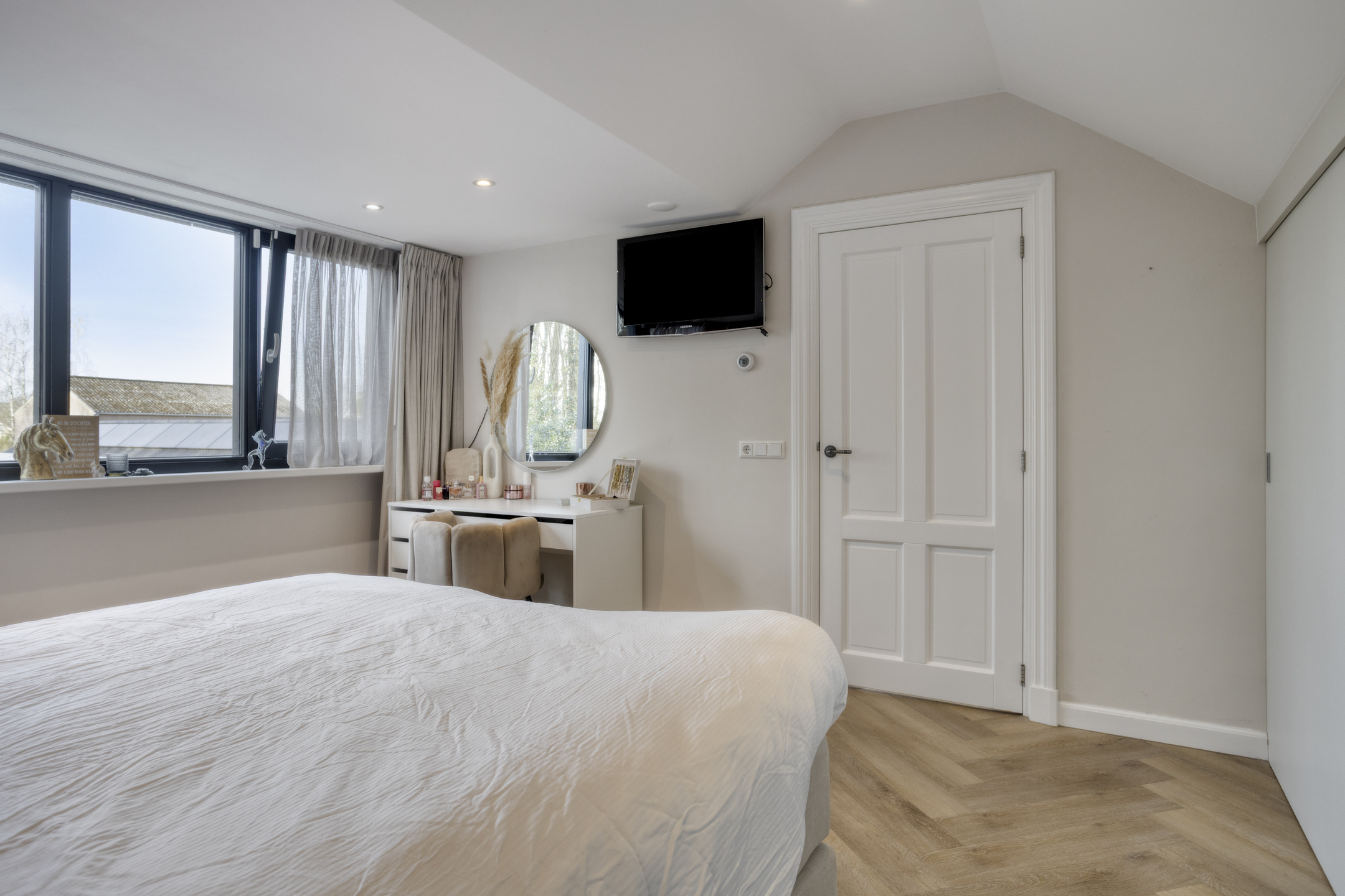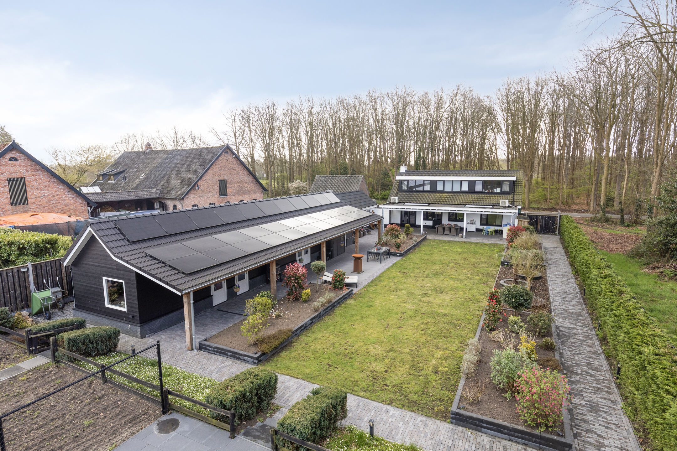 Extremely sustainable and energy-efficient (energy label A+++), this home is fully future-proof and equipped with every conceivable modern installation. Features include double wall insulation, floor and roof insulation, HR++ glazing in hardwood frames, an air-source heat pump with a 260-litre boiler tank, underfloor heating on both the ground and first floors, no fewer than 44 solar panels, and multiple air conditioning units.