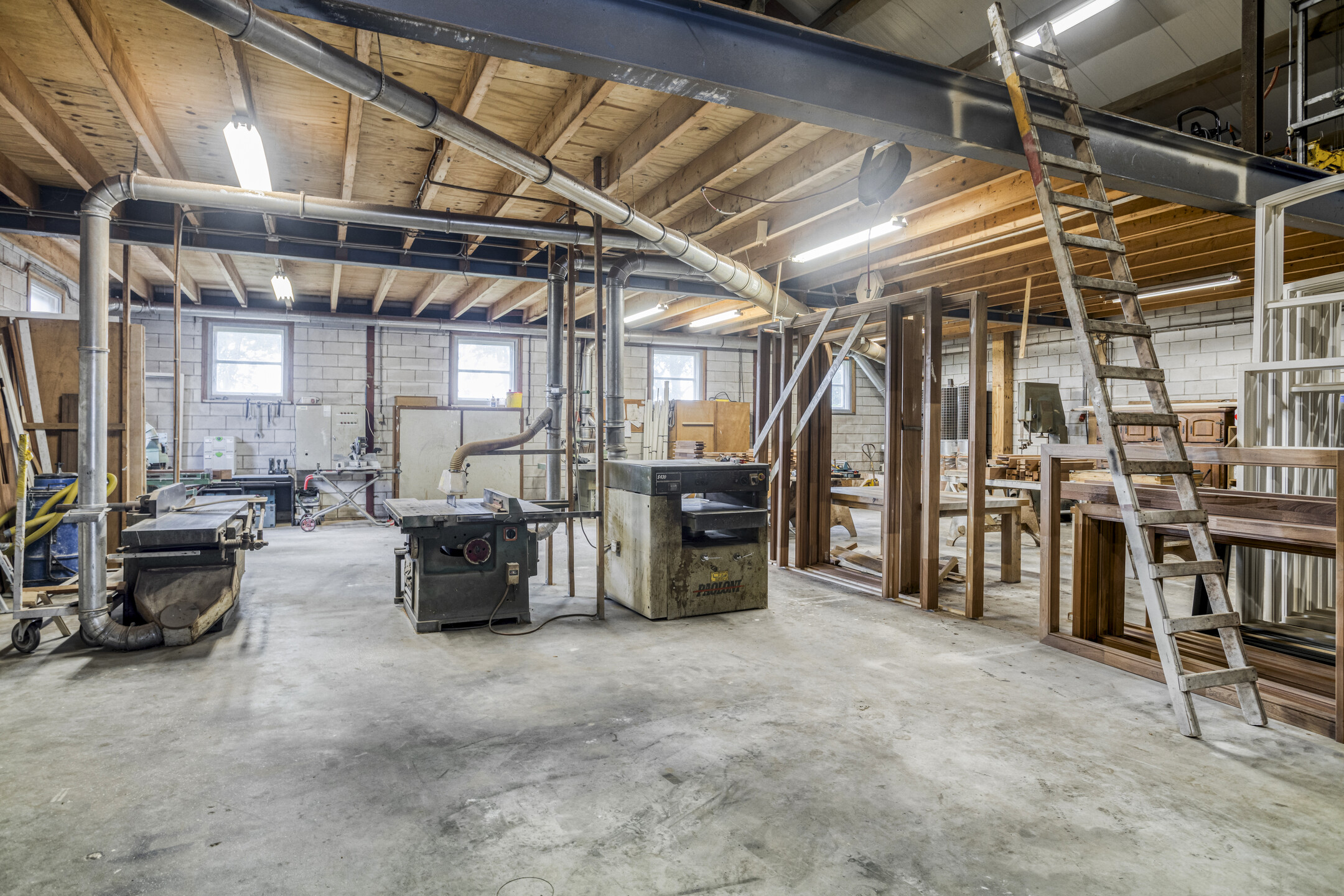 De ware klusser, ondernemer of hobbyist kan zijn hart meer dan luchten in de royale werkplaats alwaar ook een multifunctioneel gebruik denkbaar is. Ter afscheiding van stof is het voorste en achterste deel van elkaar gescheiden, maar ook is een open ruimte denkbaar gezien de tussenwand niet constructief is. Ook alhier is weer ruimte voor extra opslag ter plaatse van de entresolvloer in hout. Uiteraard is de sectiedeur (5,8 x 4) elektrisch bedienbaar, is krachtstroom aanwezig en is ook deze ruimte weer volledig geïsoleerd.