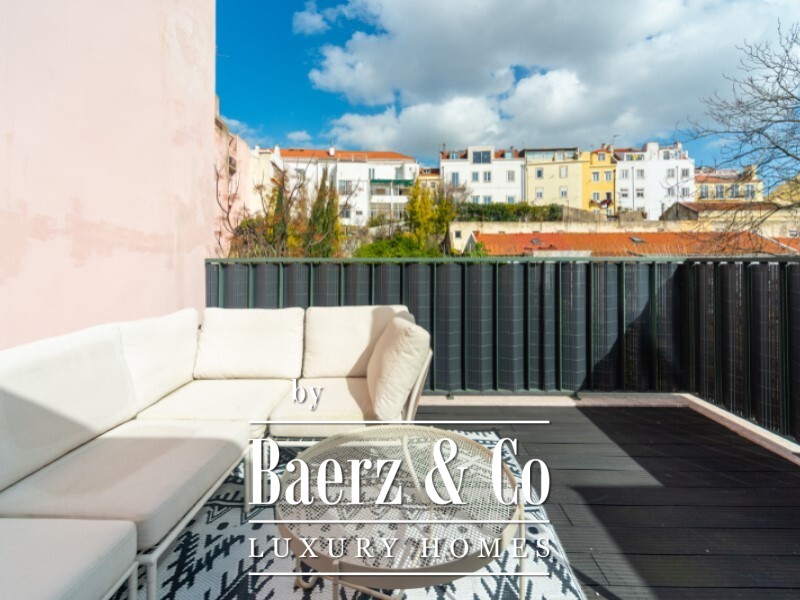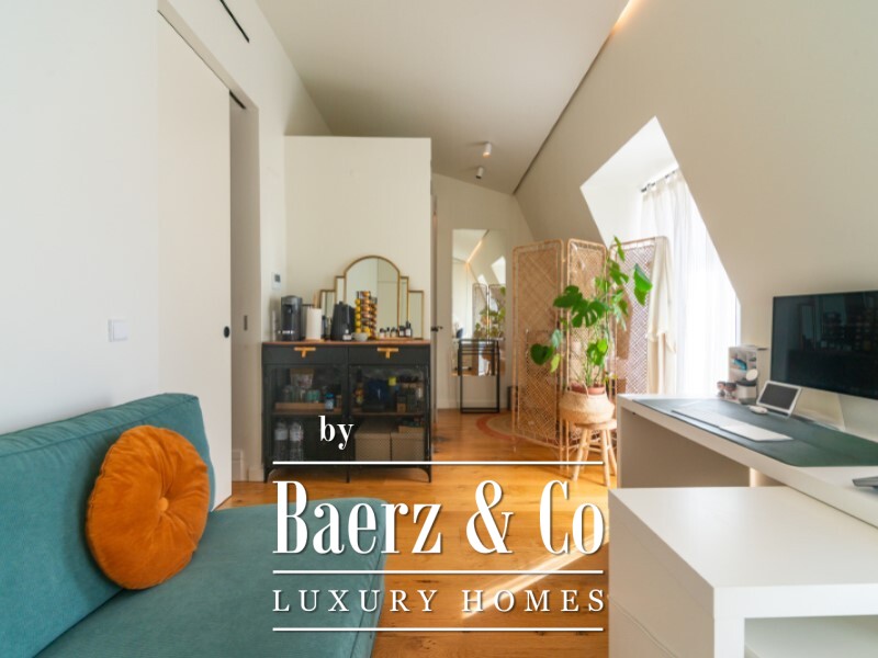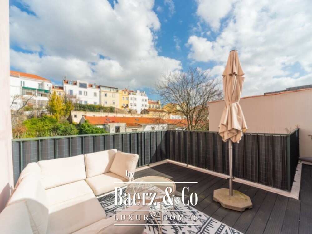 Apartment Príncipe Real Lisbon offers a refined top floor residence in one of the city’s most exclusive neighbourhoods. This large and exceptionally bright one bedroom property, spanning 80 m², occupies the upper level with lift access, creating an elevated sense of privacy and views. Sunlight moves through the space from east to west, matched by a spacious terrace and two balconies off the en-suite bedroom, inviting a luminous atmosphere throughout the day.