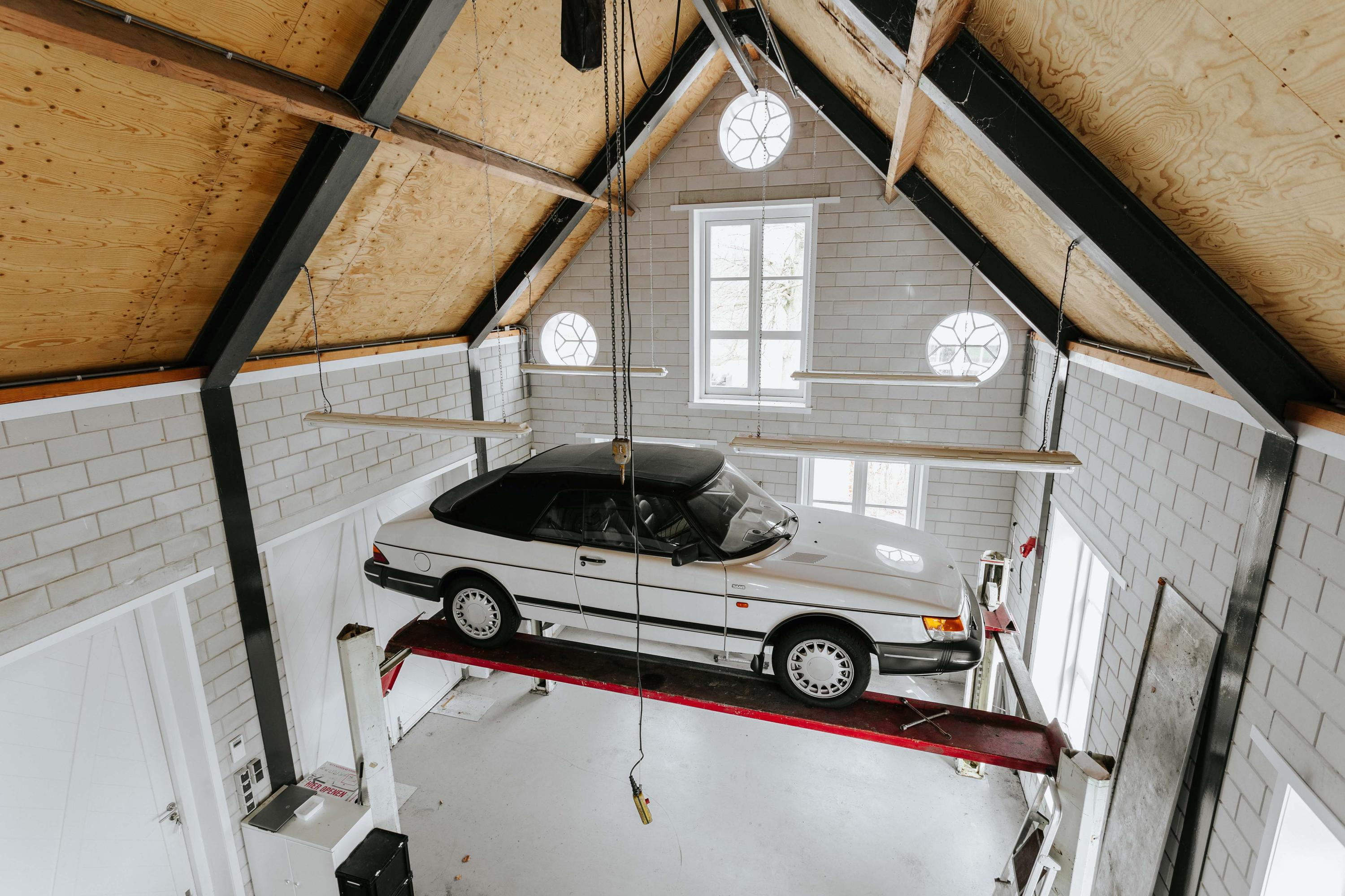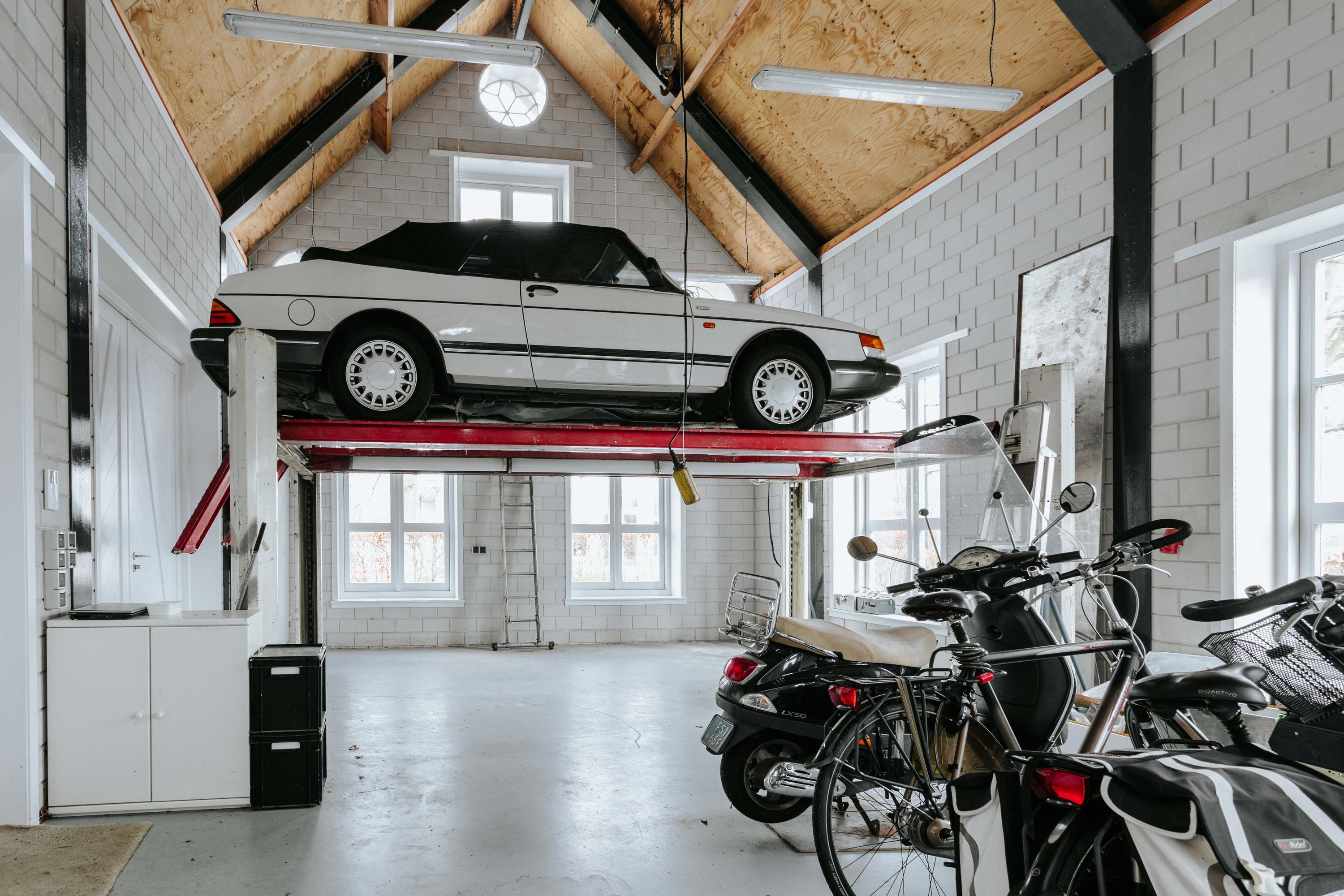 The luxurious detached garage offers parking space for 6 cars. The entire space has underfloor heating and there is a car bridge for working on your (hobby) car. This building could potentially be converted into living space.