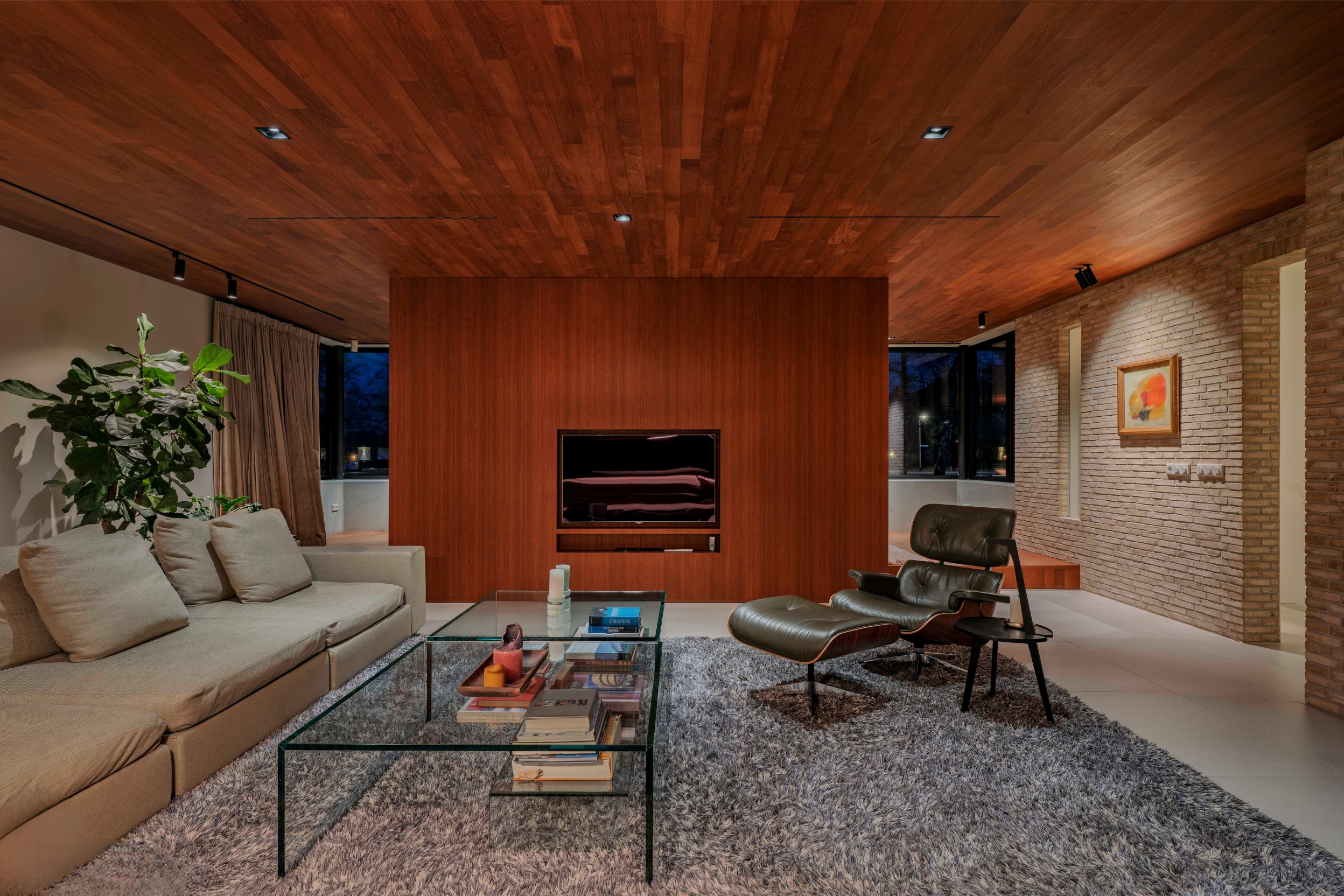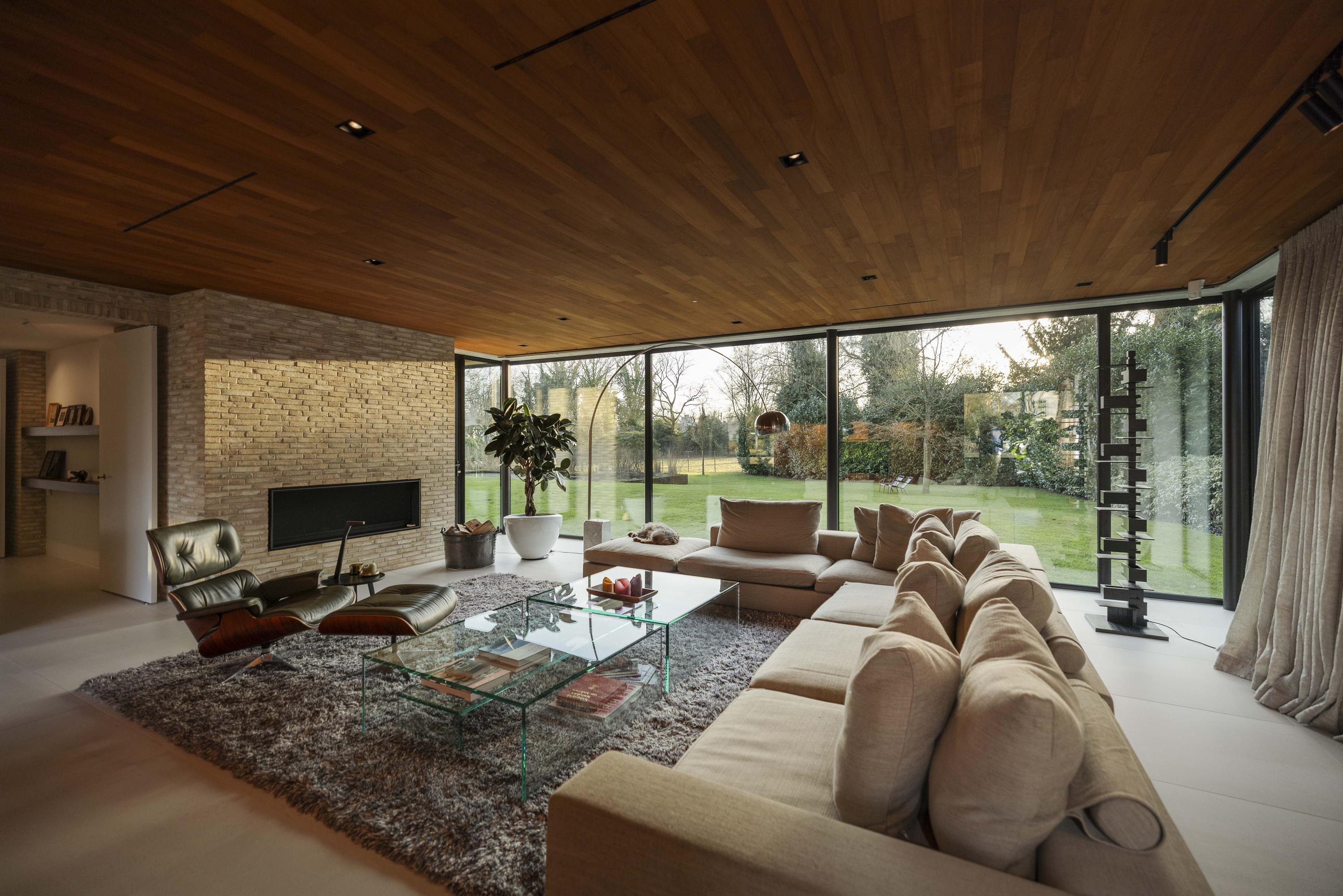 Architect Bart Vos designed the villa as a coherent whole in which wasserstrich bricks (from Petersen), copper, glass and wood (pine and teak) have been used consistently both inside and outside. With a usable area of 547 m² and a volume of 2,069 m³, this is a voluminous house, but thanks to its understated design and location on a spacious plot, the whole remains in perfect balance.