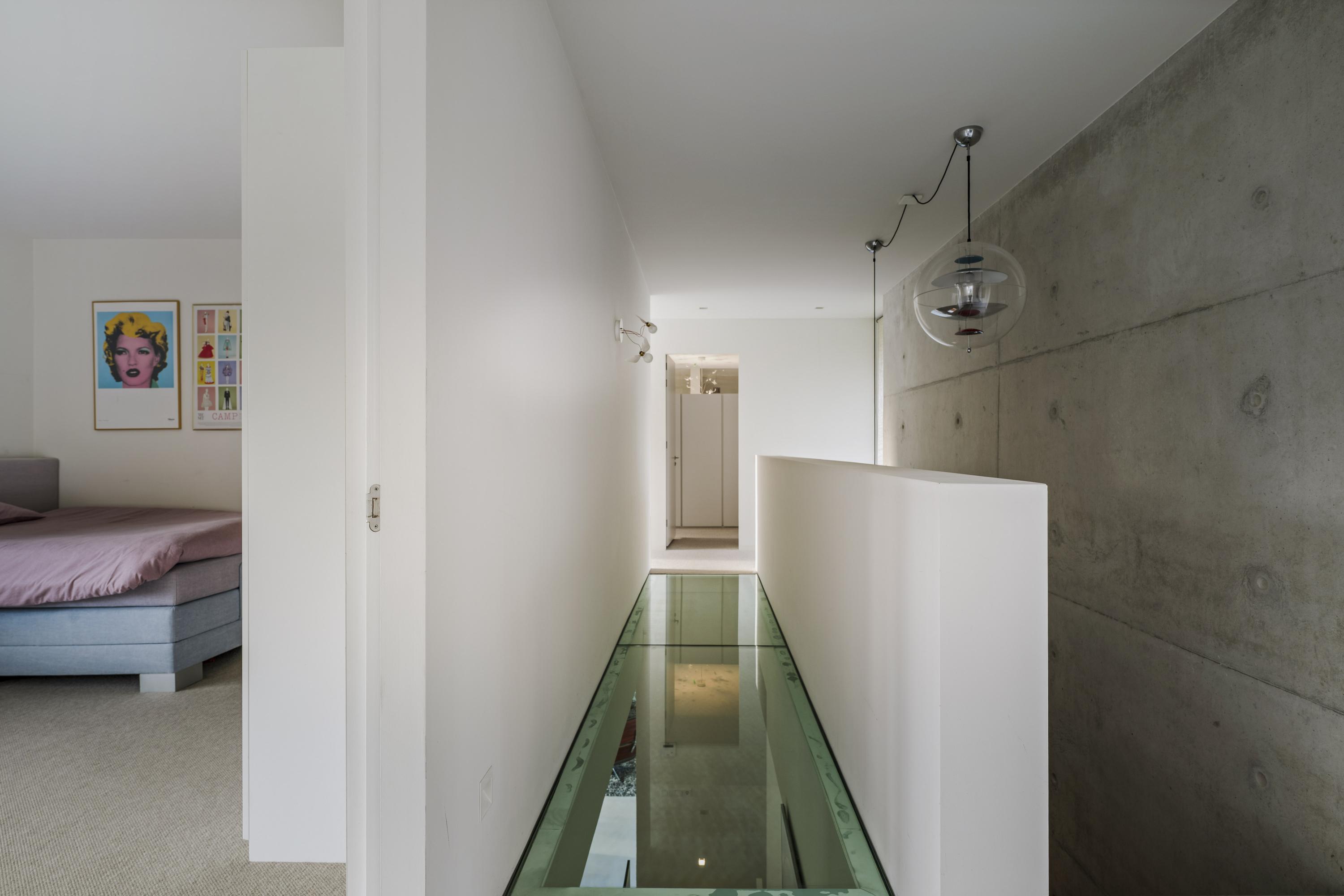 The design concept was clear: create a spacious family home that blends into its natural setting, where transparency and security are in balance. This principle is evident throughout the house. Large windows provide a constant connection with the outside, while the choice of materials and layout offer warmth and intimacy.