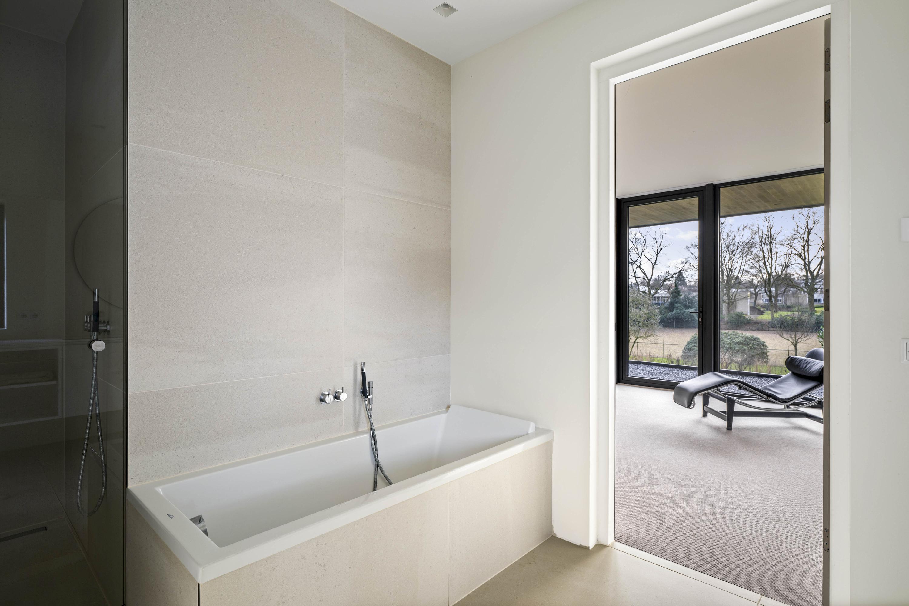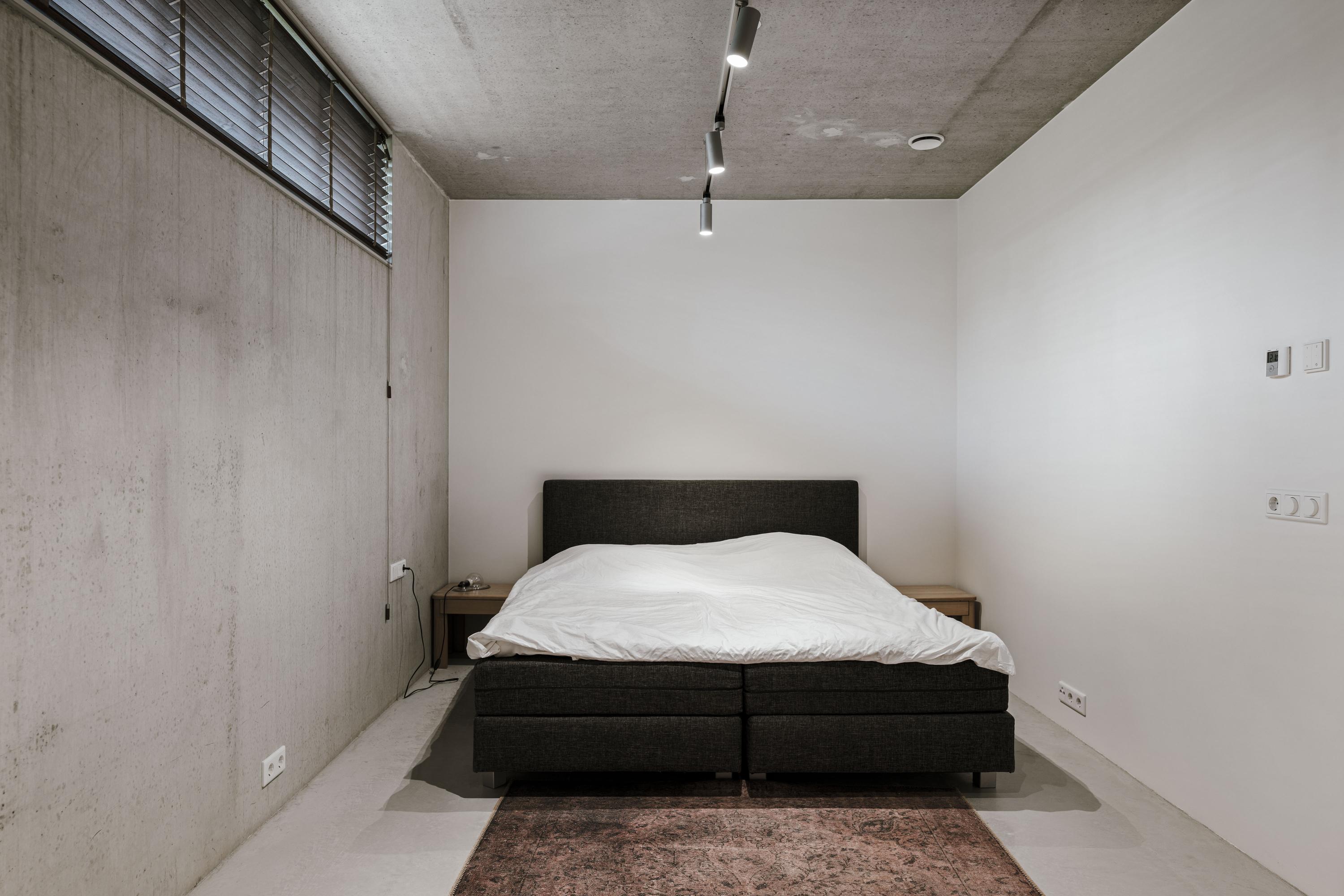 The basement is a fully-fledged living area with natural light at the front. The robust concrete ceilings and walls give this floor its own contemporary character. Here you will find a spacious studio, chill-out or fitness room, an extra bedroom with en-suite bathroom, a large laundry room and the technical installations. The house is equipped with a geothermal heat pump, 30 solar panels and a buffer tank of approximately 750 litres. The A++ energy label underlines the sustainable and future-proof character of the house.