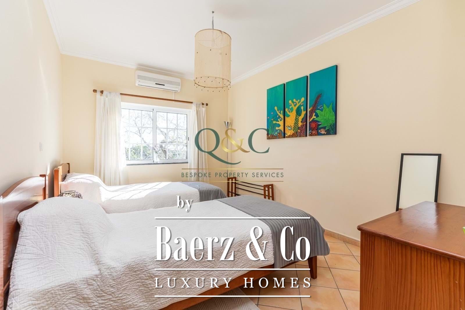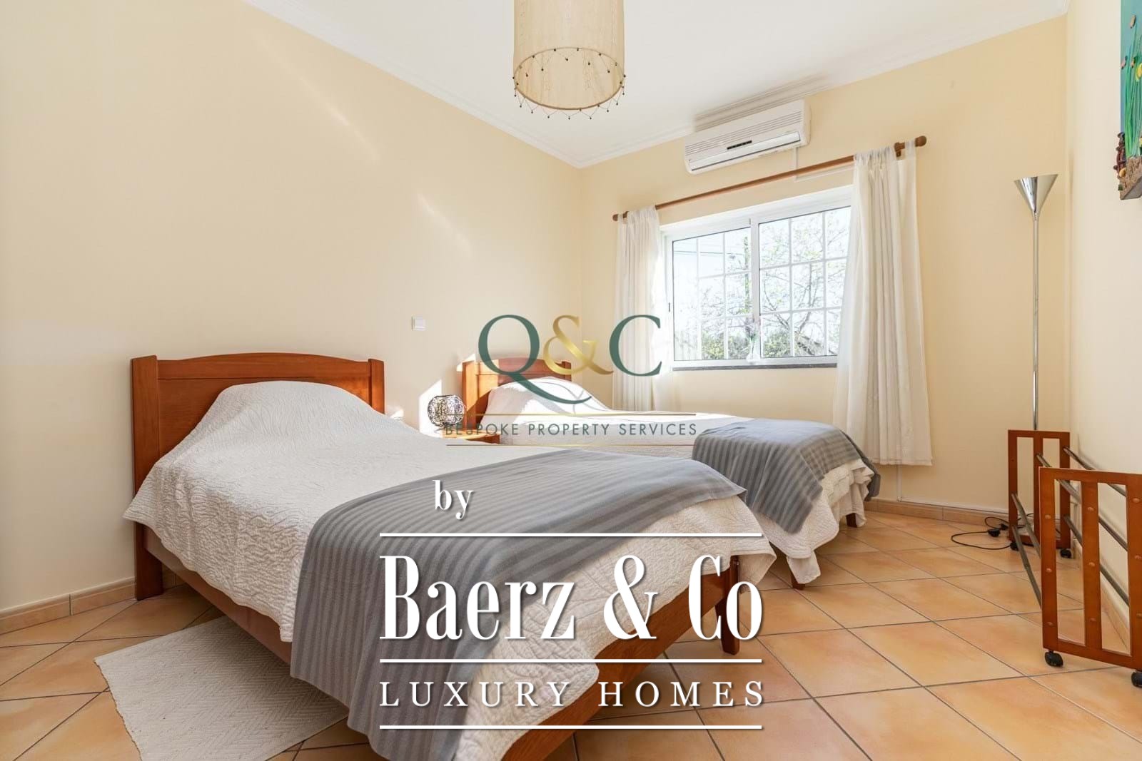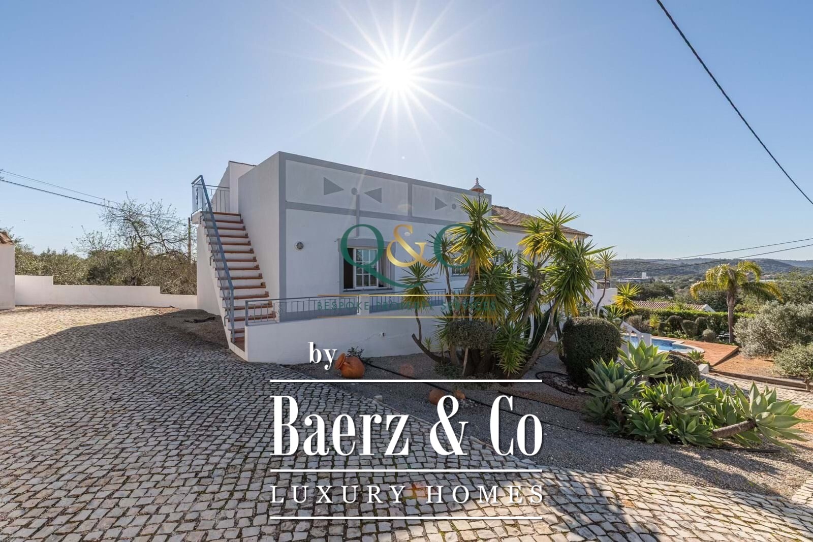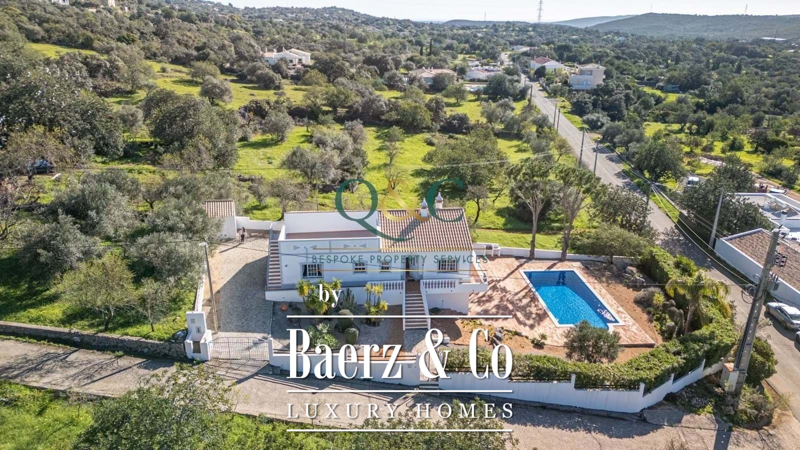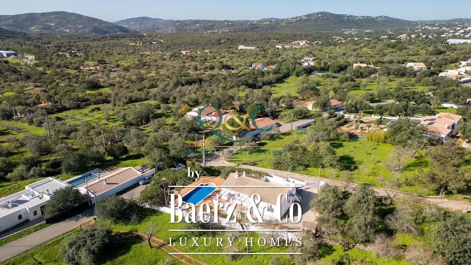 Stairs descend to a substantial games room with its own kitchen and bathroom, adaptable as a fourth bedroom or an independent apartment. Terraces, a roof level with broad vistas, mature gardens, and an expansive pool create opportunities for calm, conviviality, or discreet retreat. Features include air conditioning throughout, double glazing, barbecue, irrigation system, drive way parking, and mains water. This villa offers immediate connection to the rhythms of Algarve country life within reach of urban necessities.