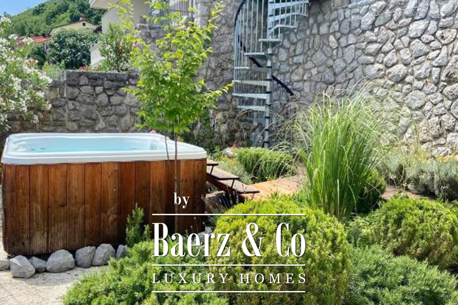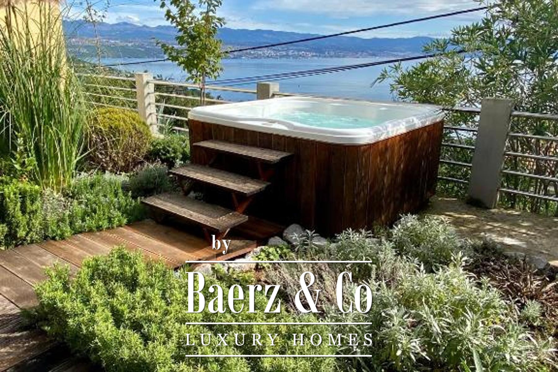 spans 53.09 m² and has an additional terrace of 9.14 m², providing extra space for living or working.The villa impresses with its fantastic panoramic views of the sea, the Kvarner Bay, and the peaks of the Gorski Kotar mountains. Spacious terraces and an infinity pool are perfect for relaxation and outdoor enjoyment, while the landscaped garden offers peace and privacy.Located close to Učka Nature Park and all the amenities of Lovran, this property represents a rare opportunity to own a piece of Adriatic paradise — a blend of luxury, nature, and spectacular views.For more information and to arrange a viewing, please feel free to contact us.