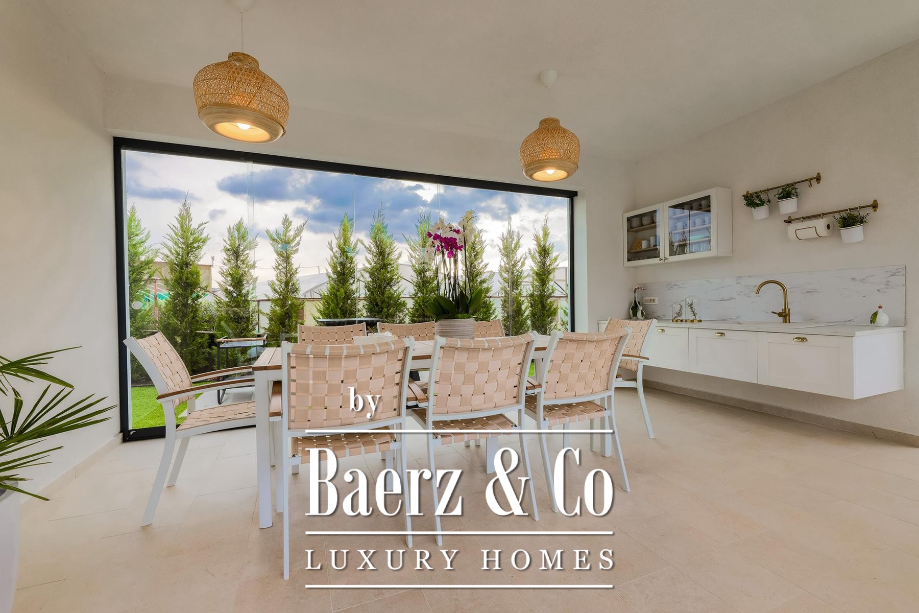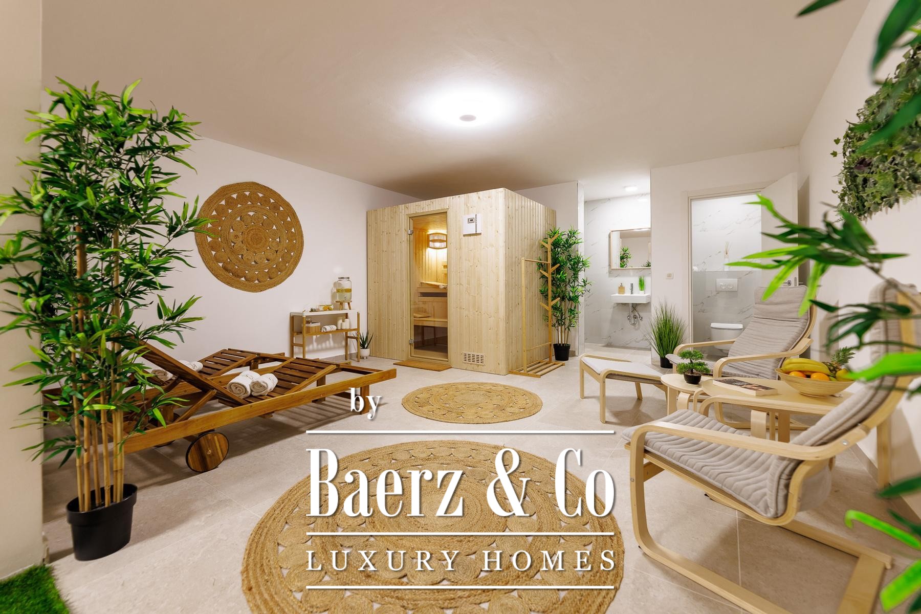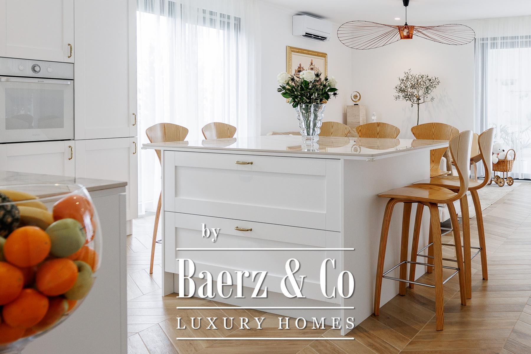 Island of Krk, Malinska, exceptional, modernly designed villa, located in the idyllic and peaceful surroundings of the island of Krk, only 2 km from the lively center of Malinska and crystal clear beaches. With a total net area of 390m2, it is spacious and perfectly arranged for a luxurious life.The villa is developed over three floors, including a functional basement, a spacious ground floor and an upper floor, all built on a plot of 826m2. In the basement there is an impressive space for socializing, which includes a wine shop, a gym, a children's playroom and a spa area with a Finnish sauna and a relaxing corner ideal for relaxation.The ground floor is characterized by an open concept kitchen and dining room, and a large living room surrounded by glass walls that provide an unobstructed view of the outdoor terrace and pool. There is also a luxuriously