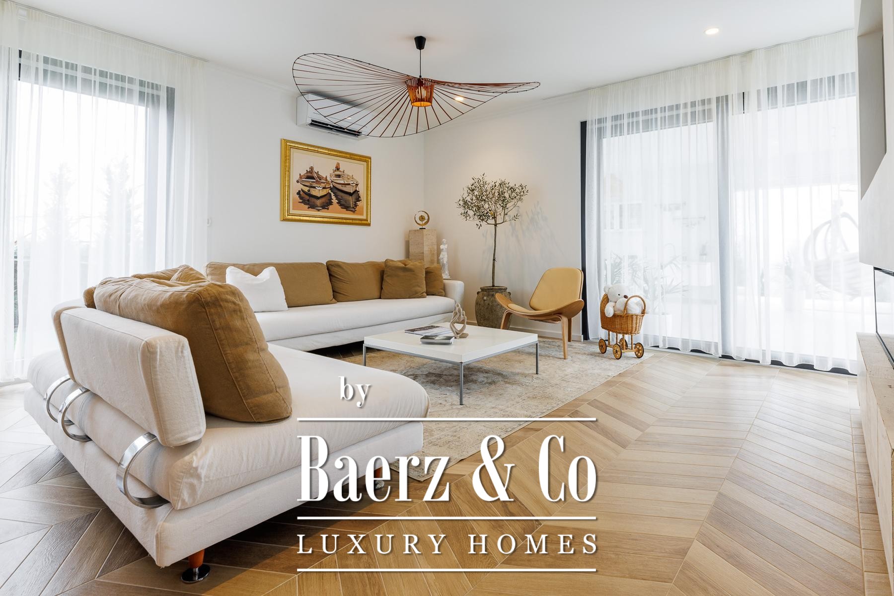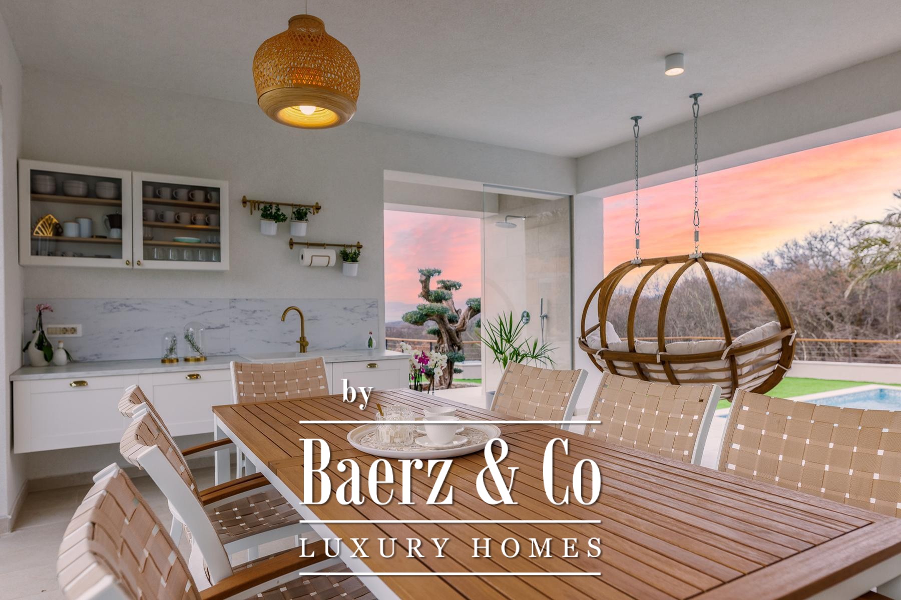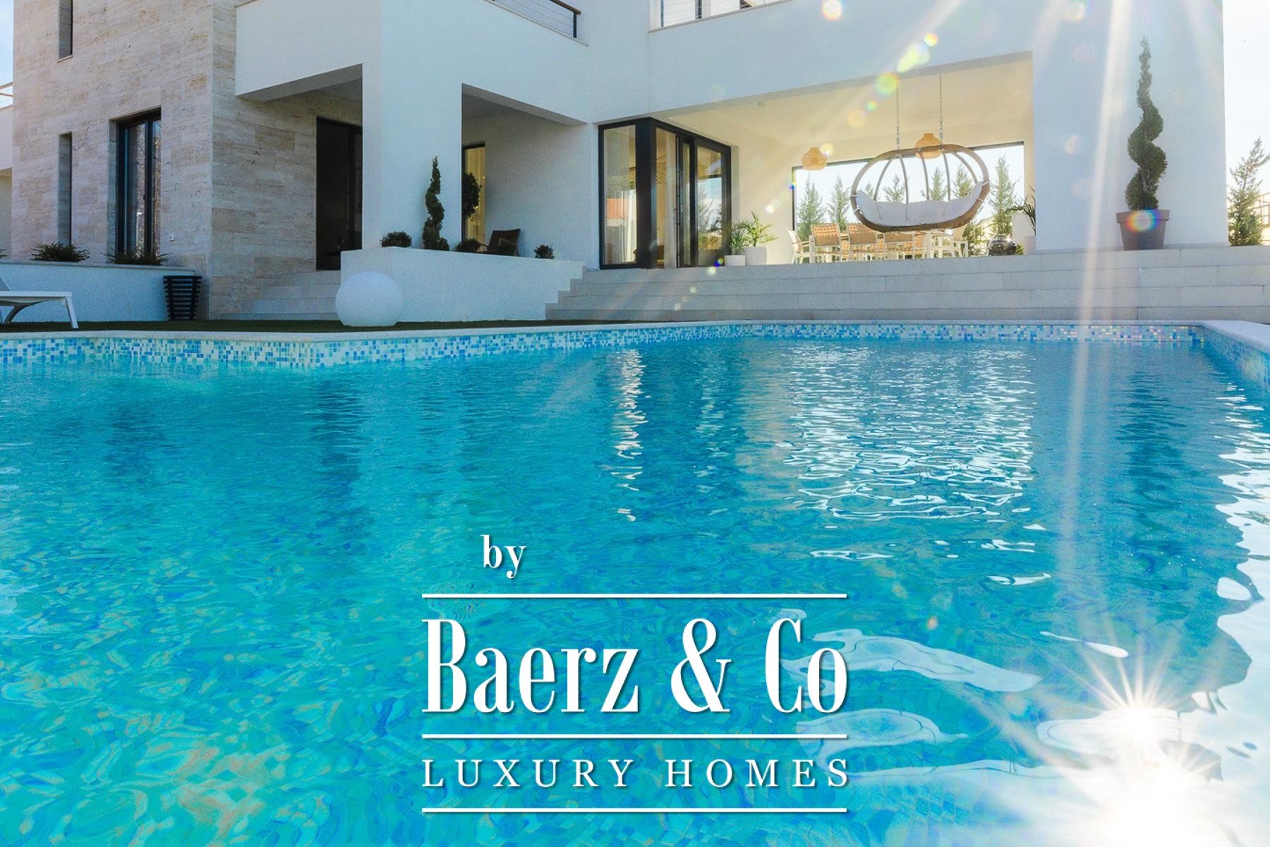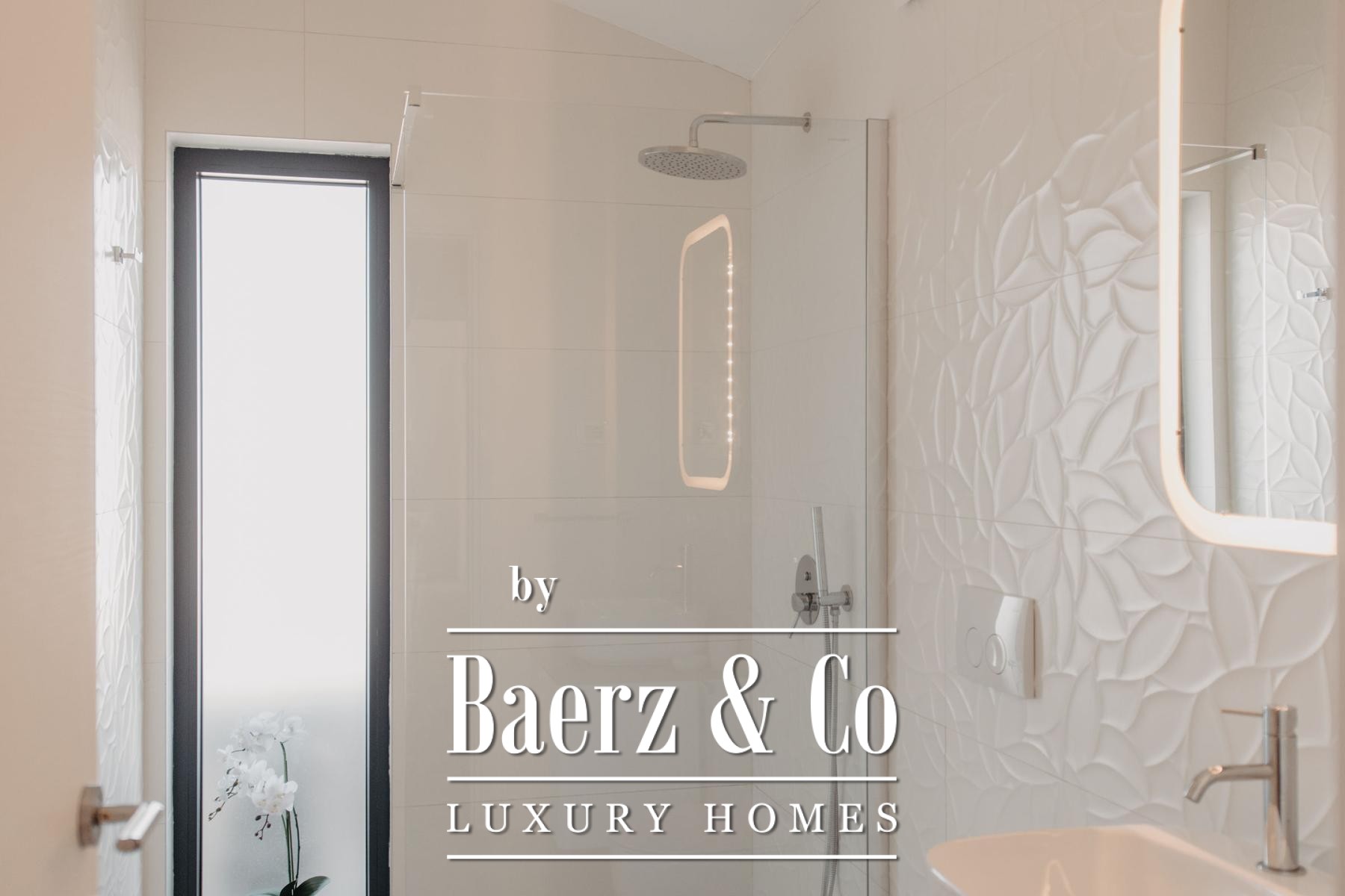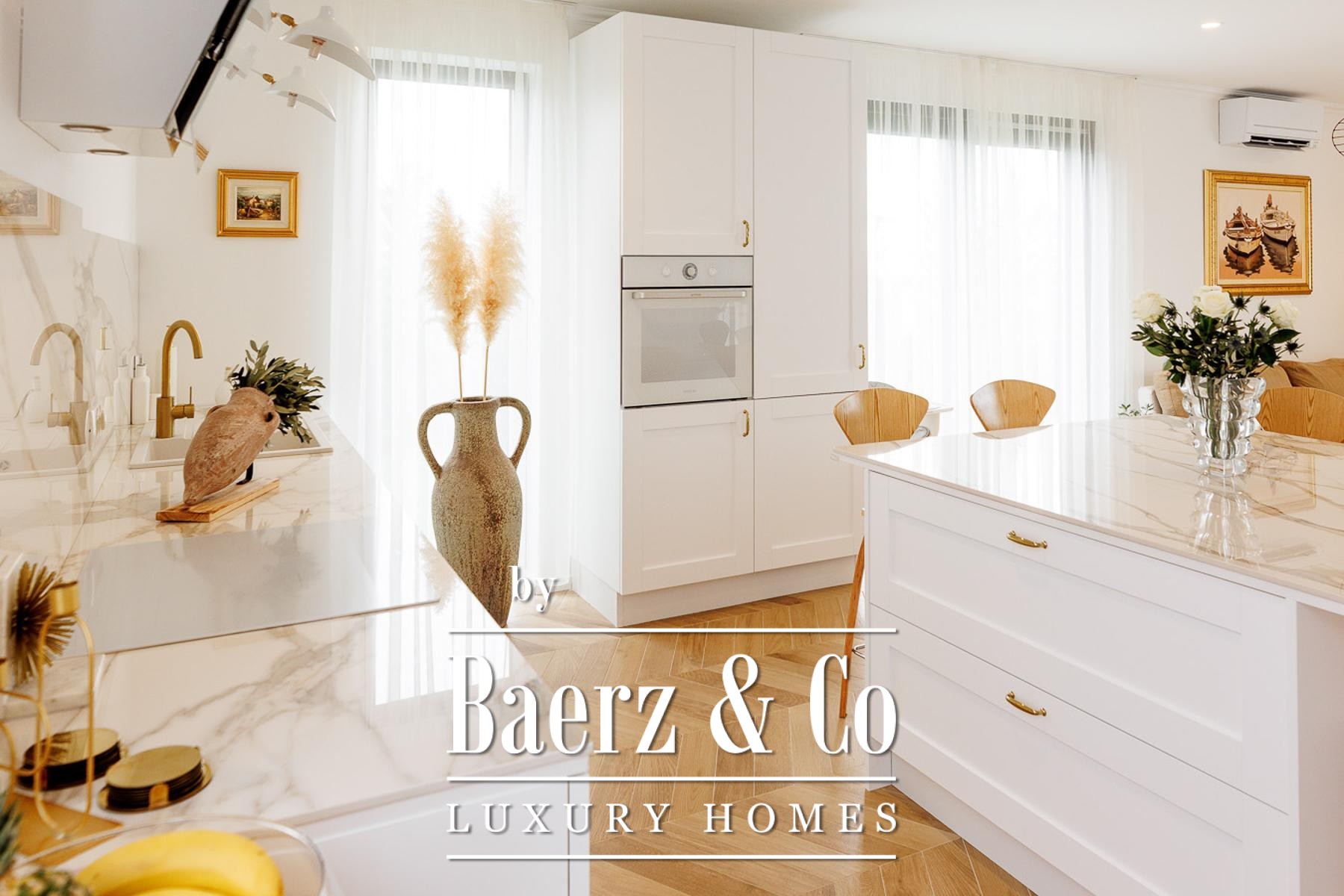 furnished bedroom with a private bathroom and a terrace.A marble staircase leads to the upper floor where there are two additional bedrooms with double beds and private terraces that offer an enchanting view of the blue of Kvarner, and another room with separate beds and a toilet.The exterior of the villa is equally impressive, with a beautifully landscaped garden of 700 m2 that contains a swimming pool, a sundeck and a terrace with a grill area, ideal for outdoor gatherings and enjoying the sun.The villa also offers a spacious garage of 45m2 with capacity for two cars and several parking spaces. With modern equipment and superb design, this villa represents an extraordinary opportunity for those looking for an exclusive home or investment in one of the most beautiful locations on the Adriatic.We are at your disposal for any additional information.