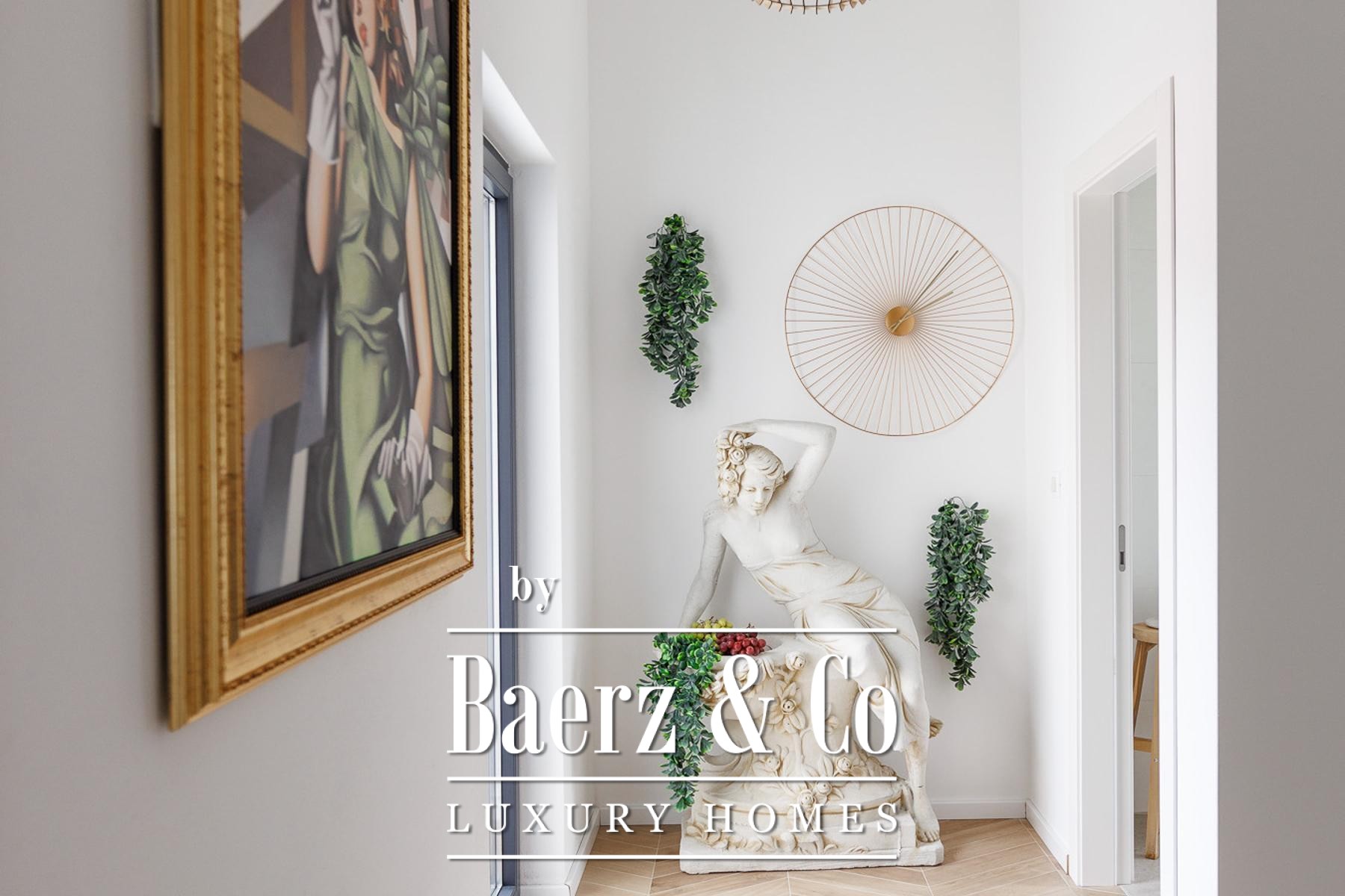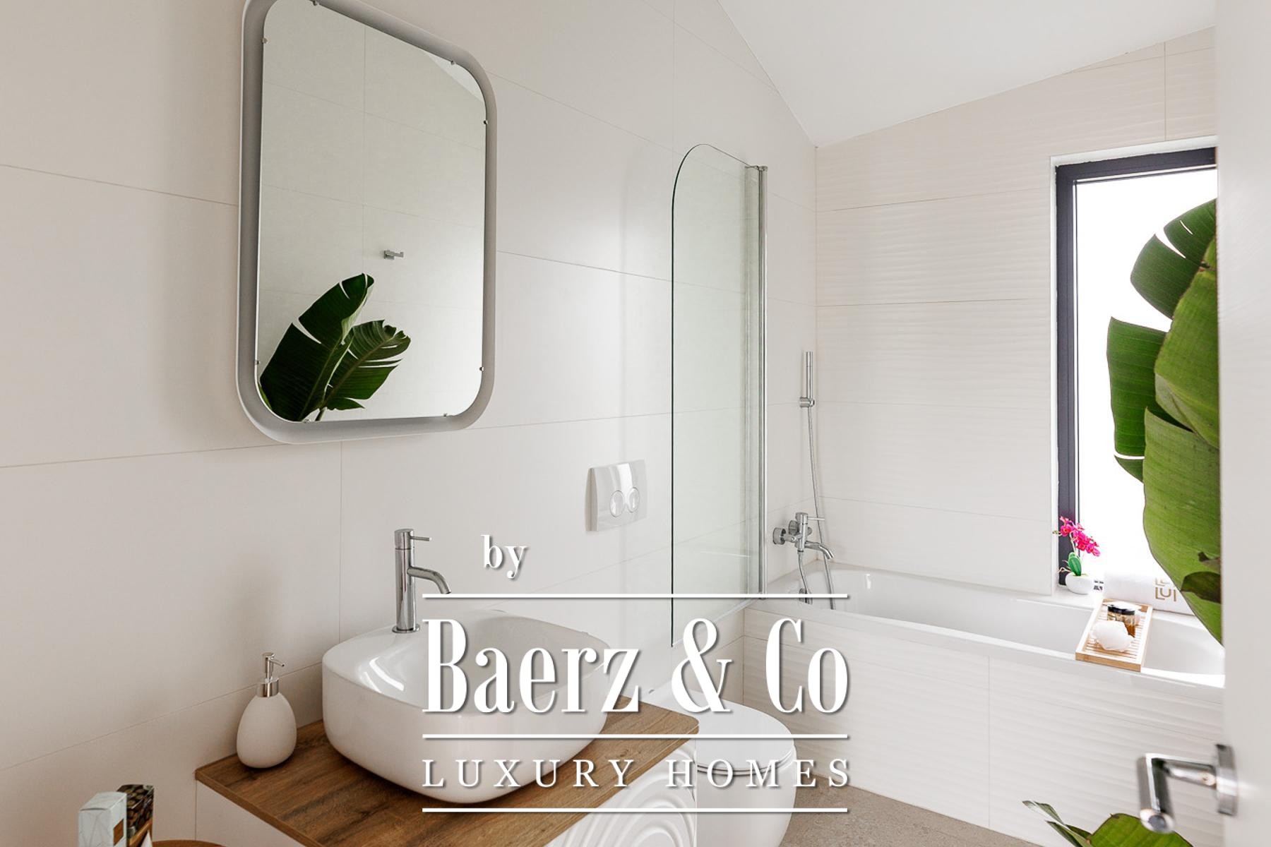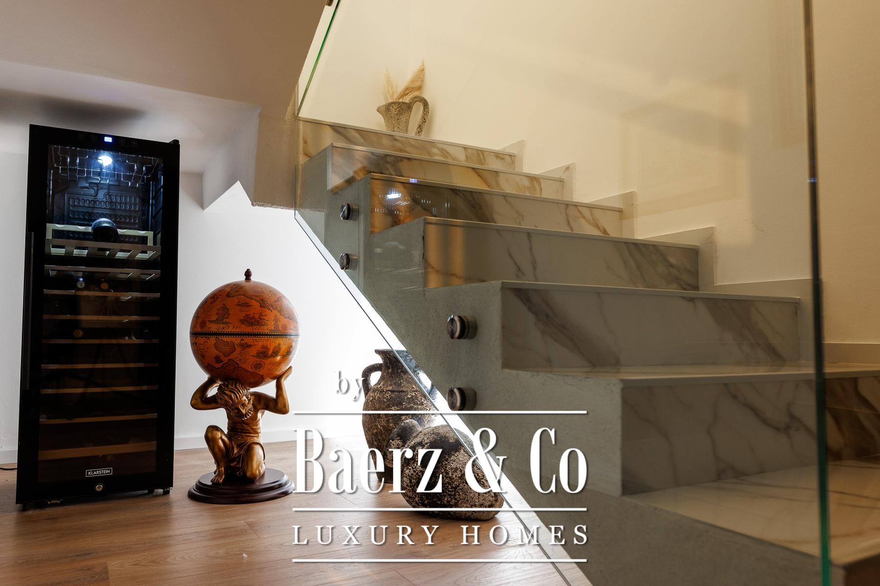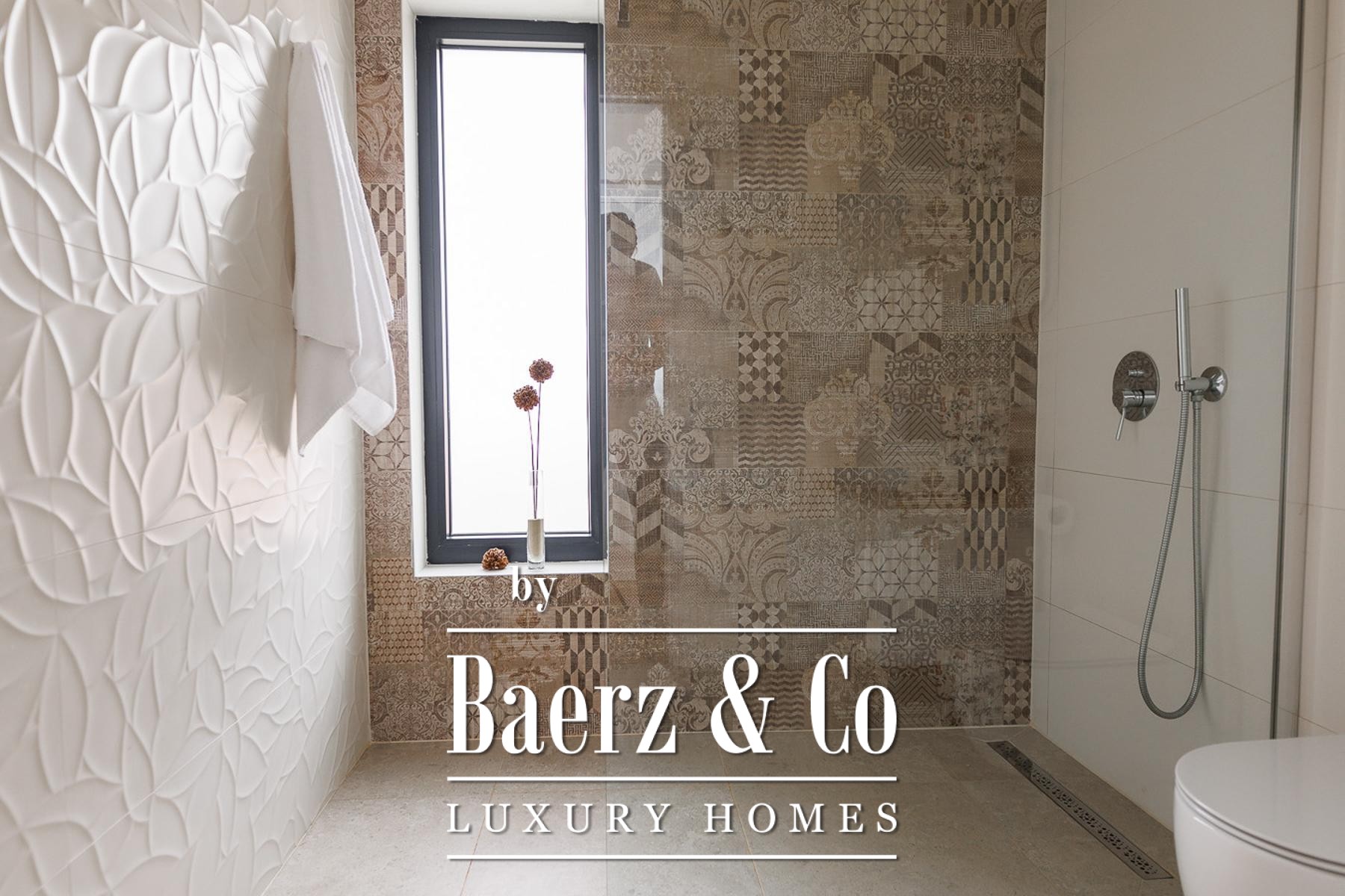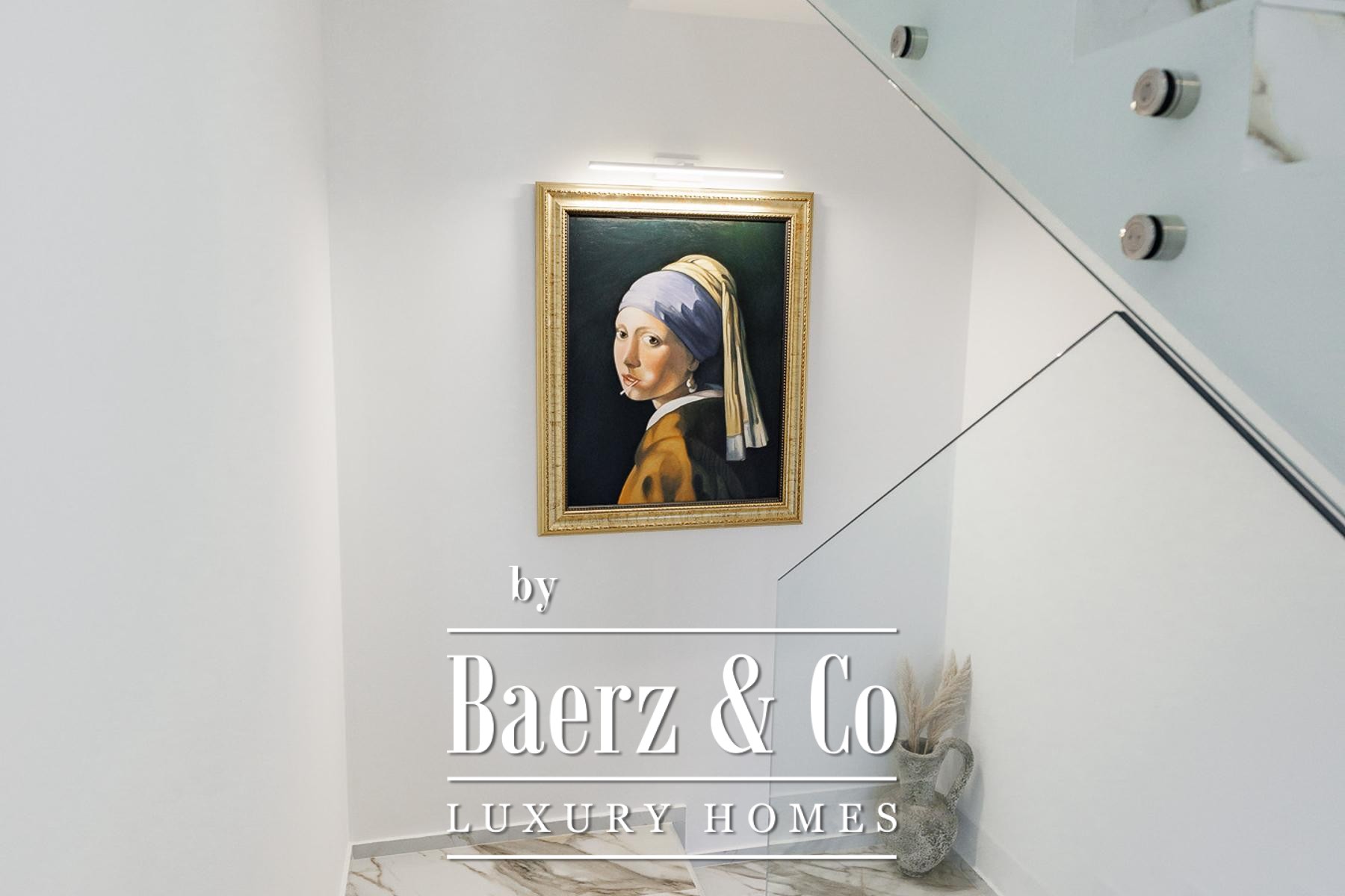 furnished bedroom with a private bathroom and a terrace.A marble staircase leads to the upper floor where there are two additional bedrooms with double beds and private terraces that offer an enchanting view of the blue of Kvarner, and another room with separate beds and a toilet.The exterior of the villa is equally impressive, with a beautifully landscaped garden of 700 m2 that contains a swimming pool, a sundeck and a terrace with a grill area, ideal for outdoor gatherings and enjoying the sun.The villa also offers a spacious garage of 45m2 with capacity for two cars and several parking spaces. With modern equipment and superb design, this villa represents an extraordinary opportunity for those looking for an exclusive home or investment in one of the most beautiful locations on the Adriatic.We are at your disposal for any additional information.