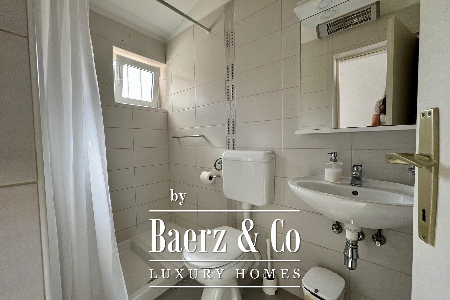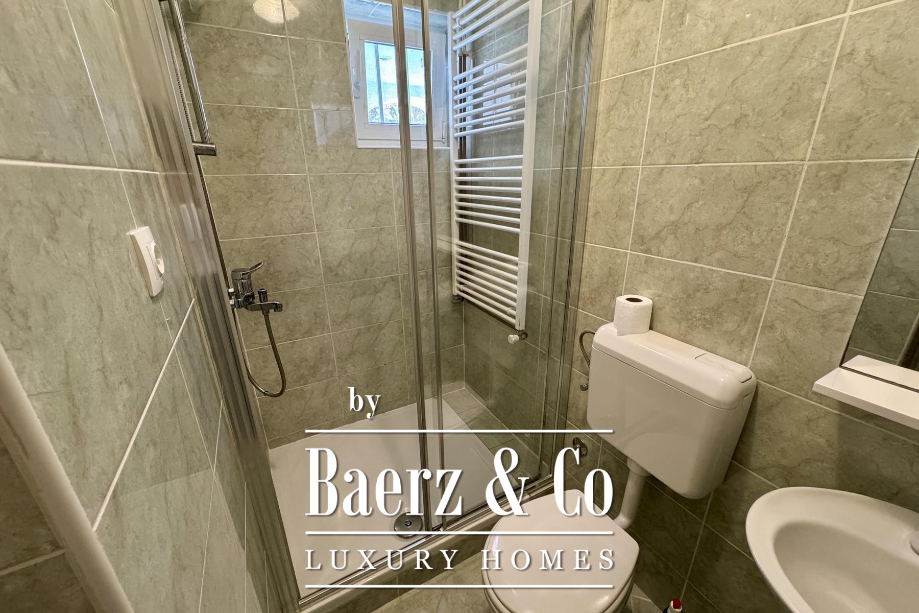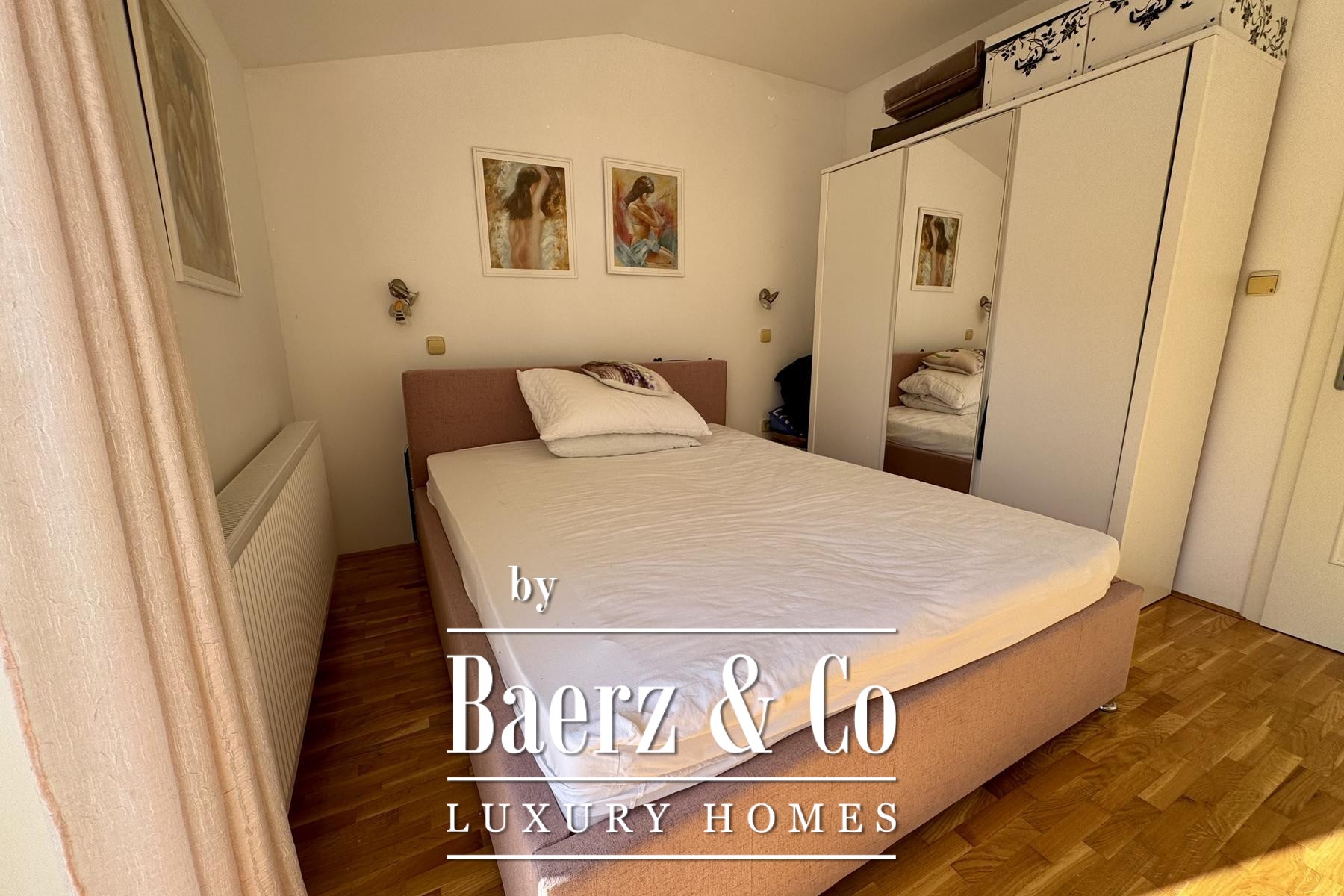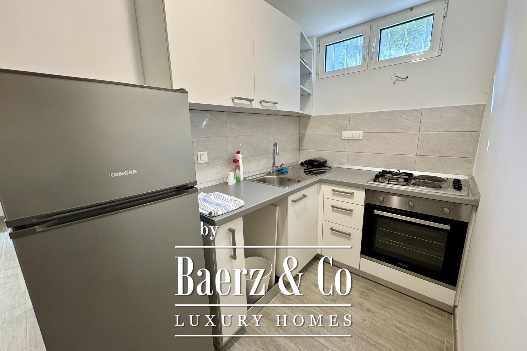 apartment consists of a bedroom, bathroom, kitchen, living room and terrace.Another additional apartment is located in the basement of the house and has two bedrooms, a kitchen, a bathroom and a storage room.There is also a garage in the yard of the house, and the garden itself is full of beautiful Mediterranean plants.Four more cars can be parked in the yard.For any additional information, feel free to contact us!