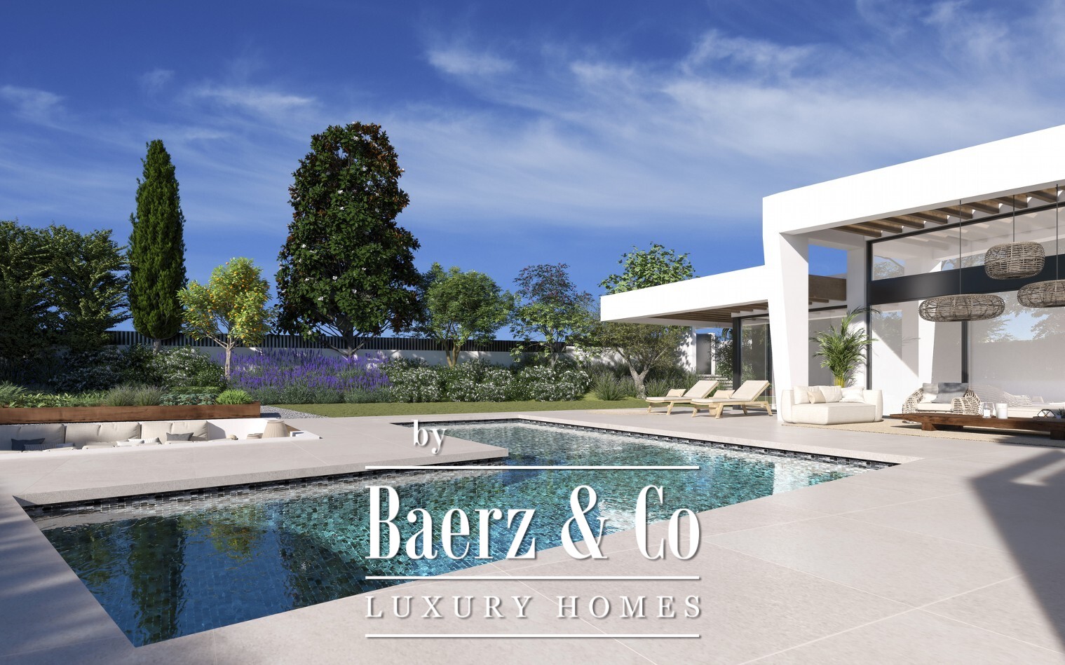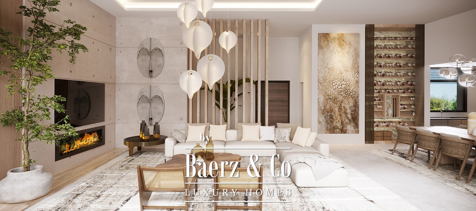 Spacious terraces, garden areas, swimming pool and chill out area with winter fire. The villas have an underground garage and a large basement that can be customised to suit the taste and lifestyle of each family.