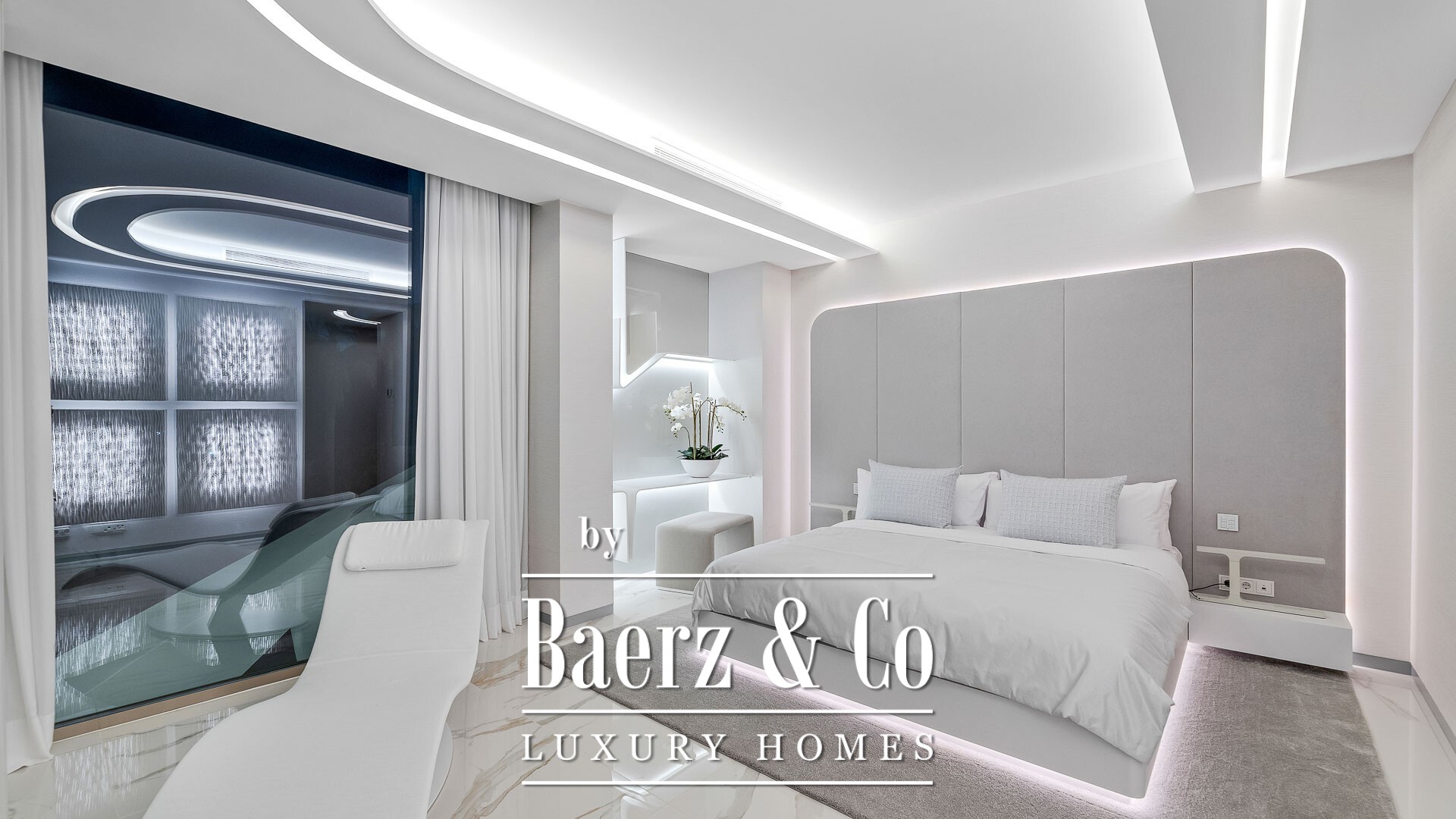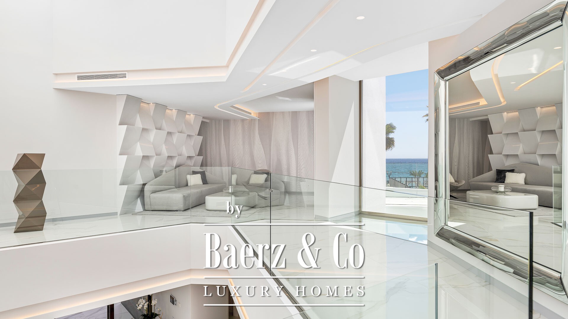 This architectural masterpiece boasts exquisite design and luxurious finishes throughout. As you step inside through the grand entrance hall, you are immediately greeted by the open-plan living and dining area, seamlessly connected to a partially enclosed kitchen. From here, you can access the marvelous terrace, offering panoramic views of the glistening sea. On the same floor, a master bedroom suite awaits, providing a haven of tranquillity and indulgence. Adjacent to it, you'll find a unique office space with a modern boat-style design, featuring double-height ceilings and surrounded by water—an inspirational setting for your work or creative endeavors. Additionally, there is a guest toilet for added convenience. To effortlessly move between levels, a private lift is at your service, granting access to the basement or the first floor. The basement is bathed in natural daylight and features a state-of-the-art garage capable of accommodating up to 5 cars. Furthermore, there is an additional bedroom and a versatile multi-use room that can be transformed into a private gym, sauna, bar, or home cinema, catering to your personal desires. Completing the basement are a laundry room, a storage room, and a spacious technical room. Ascending to the first floor, you will discover three out of the four en-suite bedrooms, each offering breath-taking views of the sea. The master suite on this level is a true embodiment of luxury and space, providing the utmost comfort and serenity. A crowning jewel of this extraordinary property is the rooftop terrace, where you can unwind and bask in pure bliss. Immerse yourself in the Jacuzzi pool or lounge on the expansive decking areas, all enclosed with glass walls that guarantee uninterrupted vistas of the sea, Africa, Gibraltar, and the Bay of Marbella. Notable features of this prestigious villa include under-floor heating throughout the property, an advanced alarm system, 24-hour security for peace of mind, and a cutting-edge home automation system. Moreover, you will enjoy direct access to the beach, allowing you to relish the sun, sand, and sea at your leisure.