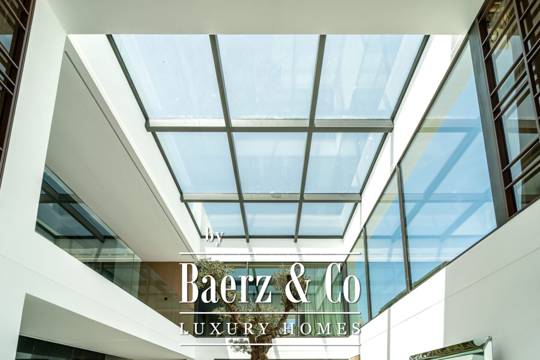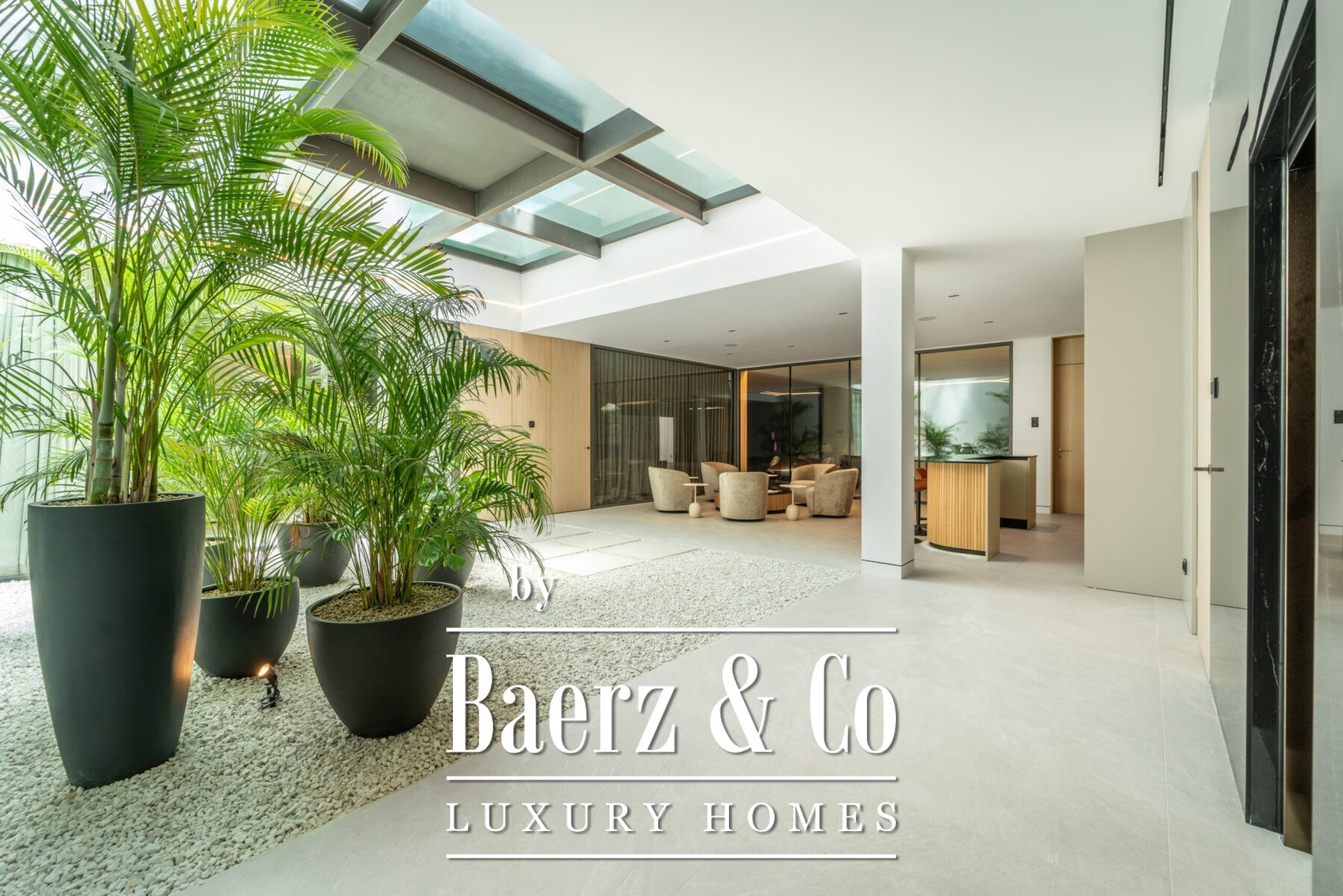 The rooftop solarium, covering 100 m², is dedicated to panoramic dining, a pool, and a tranquil chill-out area—designed for moments set against Marbella’s iconic sunsets. Entertaining is effortless with a cinema room, gym, and a flexible entertainment space in the basement, complemented by a bar, reception area, laundry, and an eight-car garage. Security and comfort are assured with features such as alarm, lift, A/C, UHF, and fireplace.