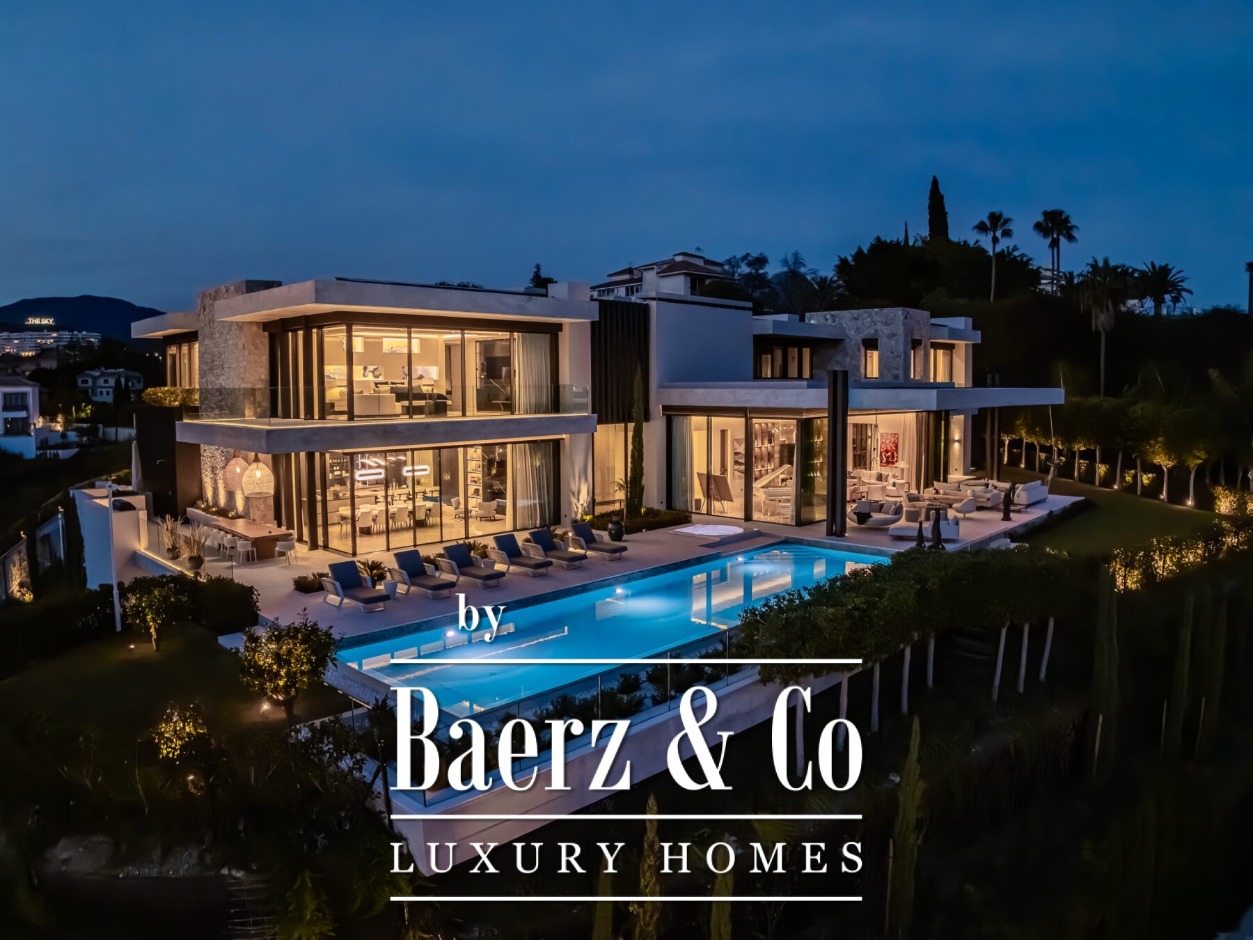 Villa Marbella with Panoramic Sea and Mountain Views is an architectural statement within the prestigious La Quinta enclave. This residence spans 1,451m² of living space on a 2,650m² plot, thoughtfully proportioned for privacy, connection, and seamless indoor-outdoor living. The villa features eight bedrooms and eight bathrooms, including a master suite with a walk-in closet and a spa-inspired bathroom. Each room is oriented to maximize the sweeping views of the Mediterranean coastline and green landscapes, creating a perpetual dialogue with its surroundings.