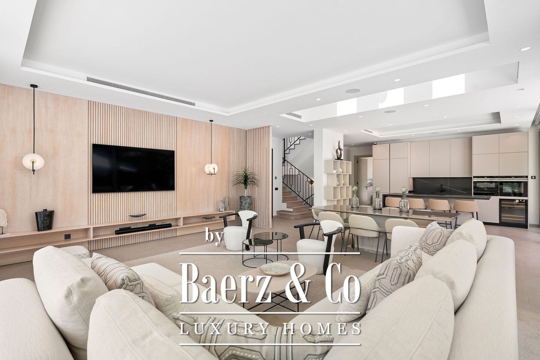 Modern villa Nueva Andalucía defines the quiet confidence of contemporary Mediterranean living in one of Marbella’s most sought-after enclaves. Set in La Cerquilla, this 2023 residence spans 770 square meters across three levels on a 1,000 square meter plot, crafting a sanctuary of privacy and elevated design. Four spacious en-suite bedrooms and five bathrooms flow through an open-plan layout, where a refined kitchen by Siemens and Miele anchors the social heart of the home. Intelligent features such as a Sonos system, smart home automation, and a secure auto-lock system offer seamless control and discretion.