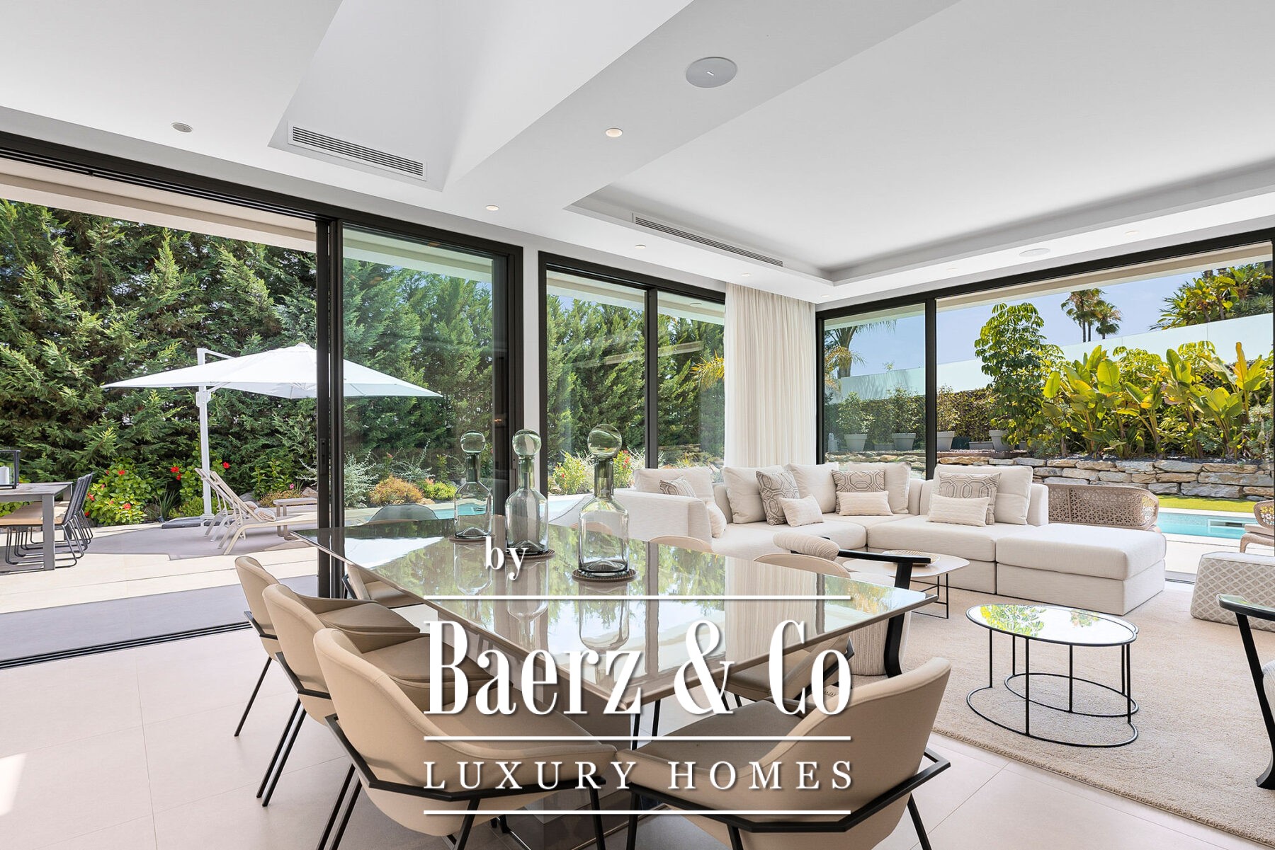 Embracing the rare blend of serene surroundings and immediate access to golf, beaches, and international schooling, this luxury villa for sale in Nueva Andalucía lies moments from Los Naranjos, Las Brisas, and Ocean Club Marbella. From fine dining and boutique shopping at Centro Plaza to the wellness offerings of the Golden Mile, every aspect of Marbella’s best is within reach. The property provides swift access to the AP-7 motorway, linking directly to Malaga Airport and the wider Costa del Sol. A harmonious composition of high technology and timeless Mediterranean architecture.