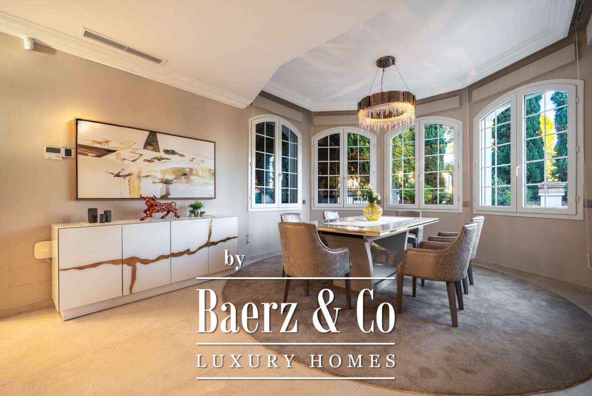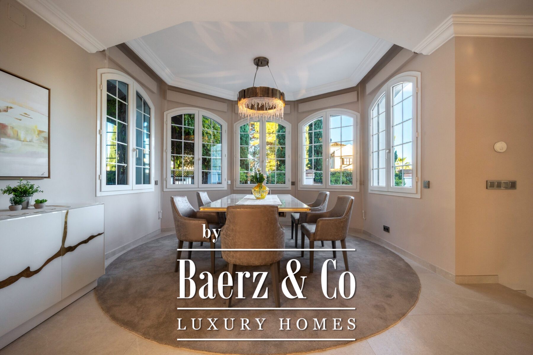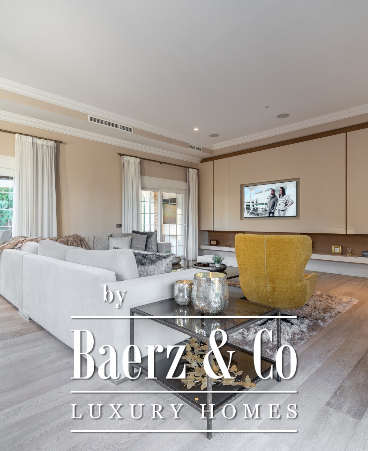 The property is within moments of celebrated golf clubs, notable private schools, vibrant cafés, and the marina of Puerto Banús. This luxury villa for sale in Marbella is an ensemble of timeless quality and modern ease, catering to those who seek distinguished living in the Costa del Sol.