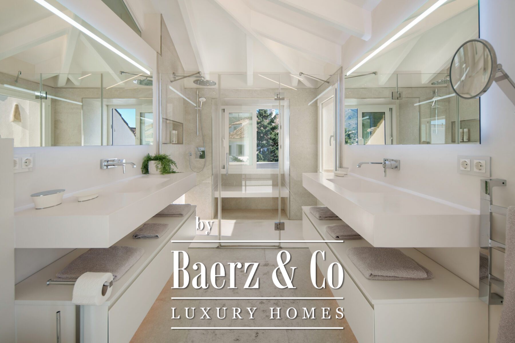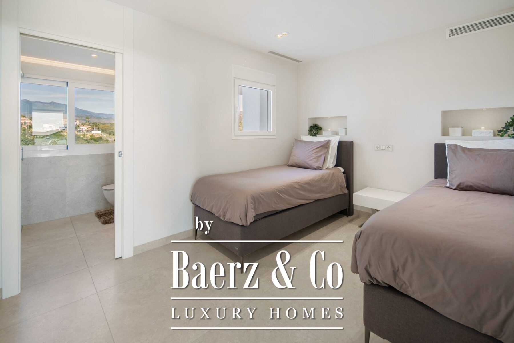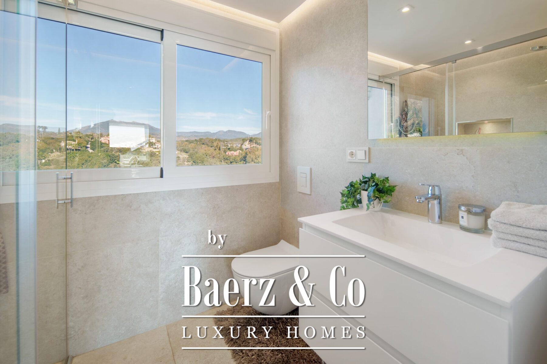 Ascending to the upper floor, the master suite commands its own domain, fostering a sense of privacy and quiet. Each detail speaks to understated comfort, from the fully equipped kitchen to the tranquil outlooks from every room. The property is located within Monte Paraiso, Sierra Blanca, set in a gated community with controlled access, 24h security, and essential amenities including a communal pool, gym, and landscaped gardens. Proximity to Marbella’s coastline, golf courses, and the city center ensures you remain connected yet insulated from the city's pace.