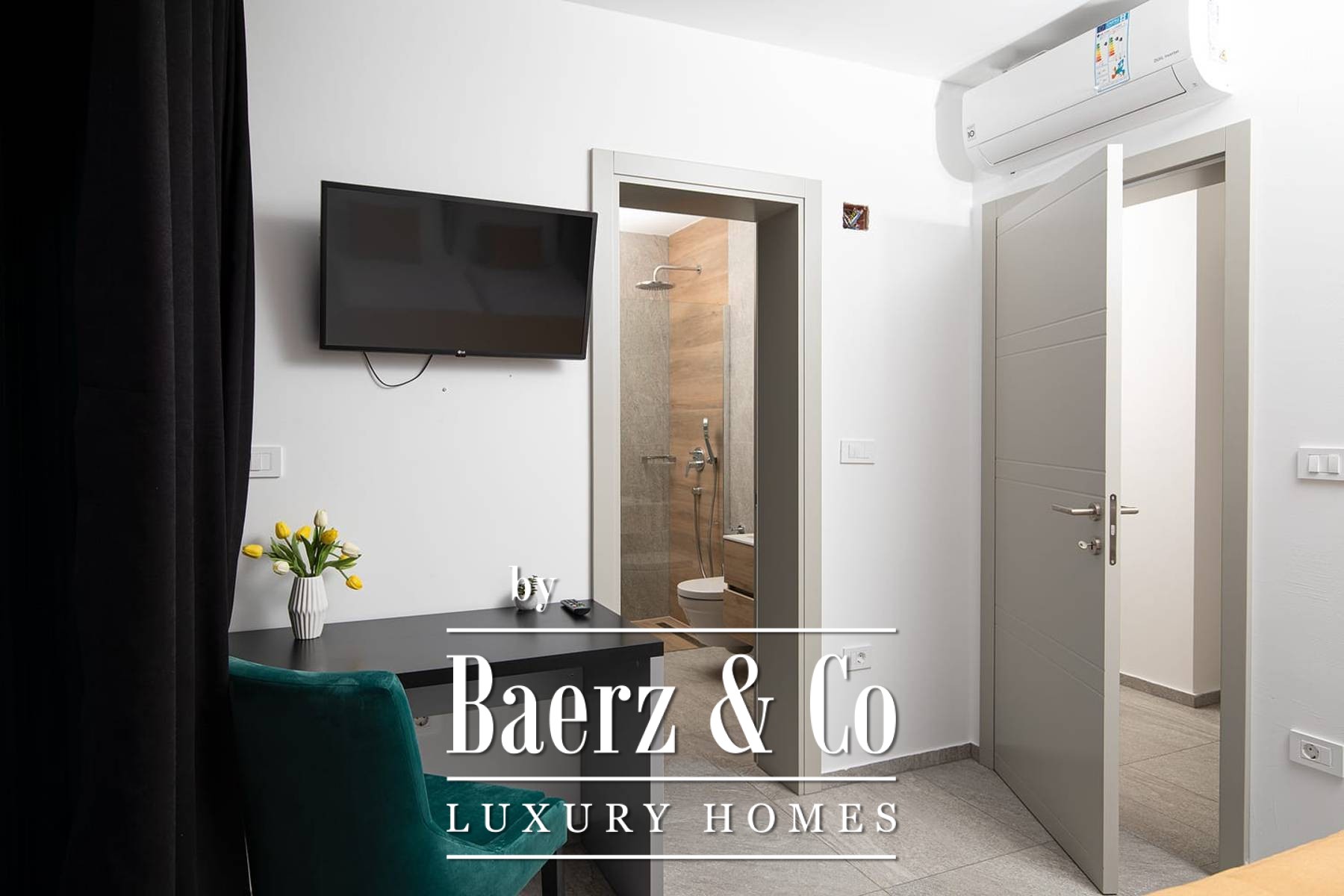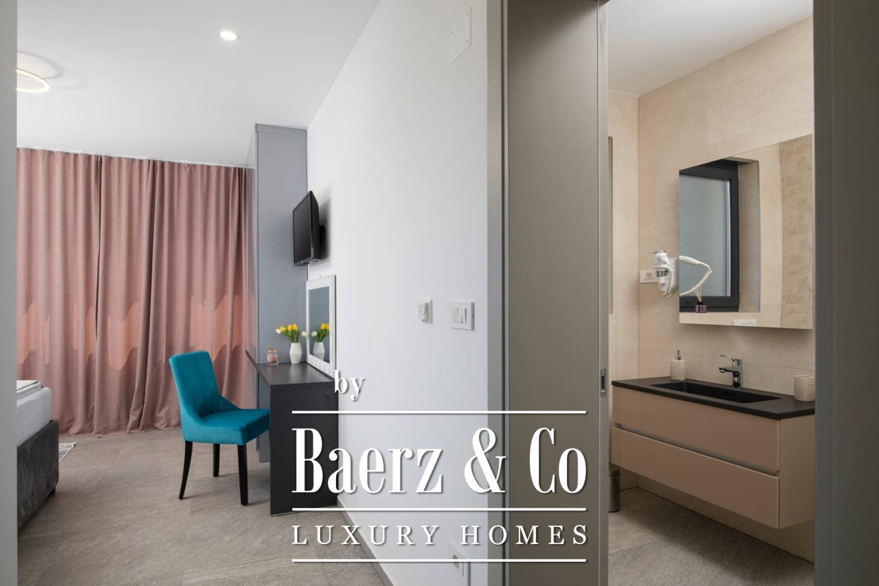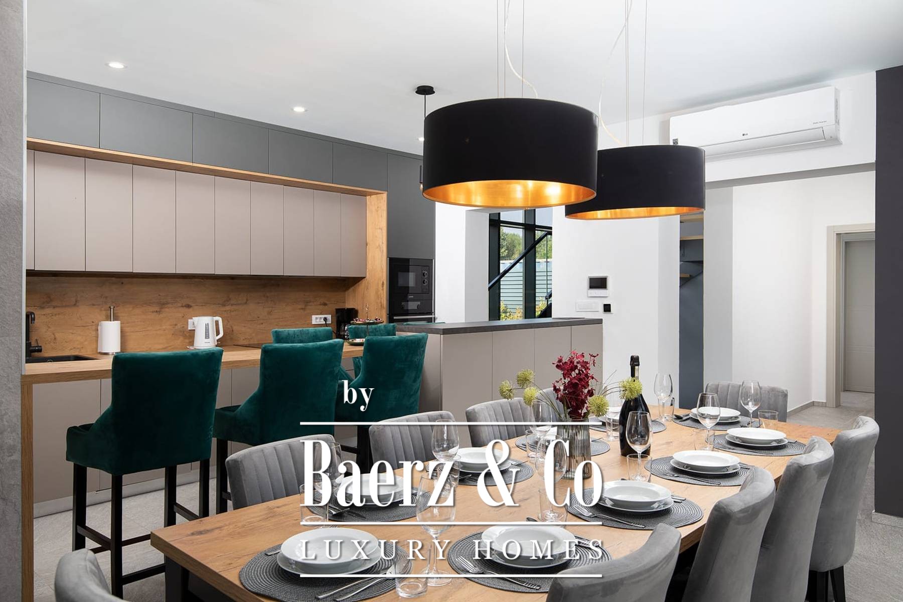 floor, stairs lead to a corridor through which there are 5 bedrooms, 5 bathrooms, a laundry room and two covered terraces. One terrace connects two bedrooms, while the second terrace is accessed from the hallway. Underfloor electric heating throughout the villa. Air conditioned too. ALU PVC joinery with mosquito nets. Video surveillance of the villa. First-class ceramics and furniture. It is sold in a fully furnished condition as shown in the pictures. The villa is ready for rent and is an excellent property for use for tourist purposes. We are at your disposal for more additional information.