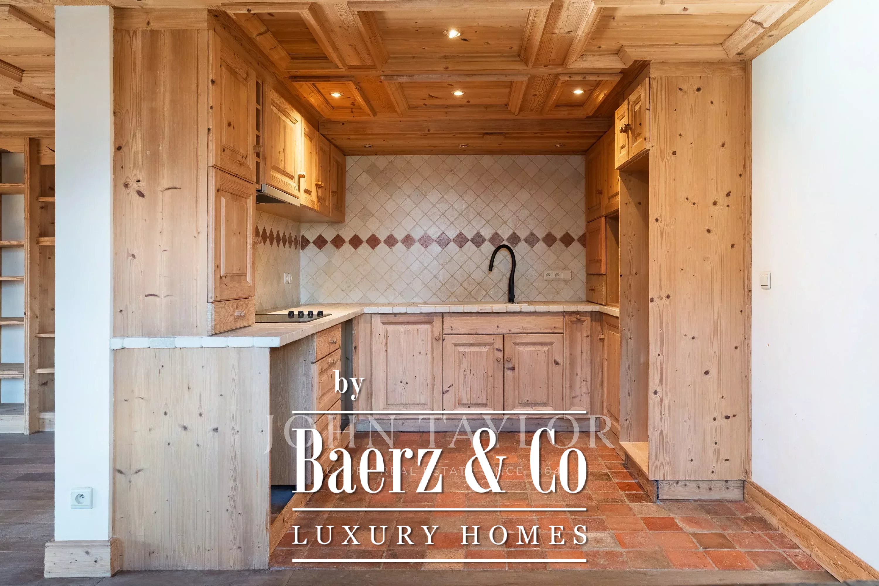 Apartment Megève offers a refined retreat just steps from the heart of the village. With a living area of 85.30 m², this property is set on the first floor and is easily accessed by elevator. The apartment welcomes you with an entrance hall leading into a luminous kitchen and a living room enhanced by a fireplace. Large windows open onto an expansive terrace, framing an unobstructed view that brings light and space together in quiet harmony.