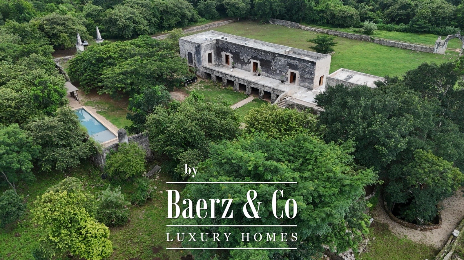 Hacienda with cenote Merida offers a rare encounter with 18th-century history and nature in deep Yucatán. This extraordinary property, comprised of 163 hectares and featuring a restored main house of 829 m², is a secluded retreat where heritage and privacy are experienced at every turn. Six bedrooms with private bathrooms, a traditional kitchen with comal and stone mill, spacious dining room, and an office form the heart of a layout designed for comfort and authenticity.