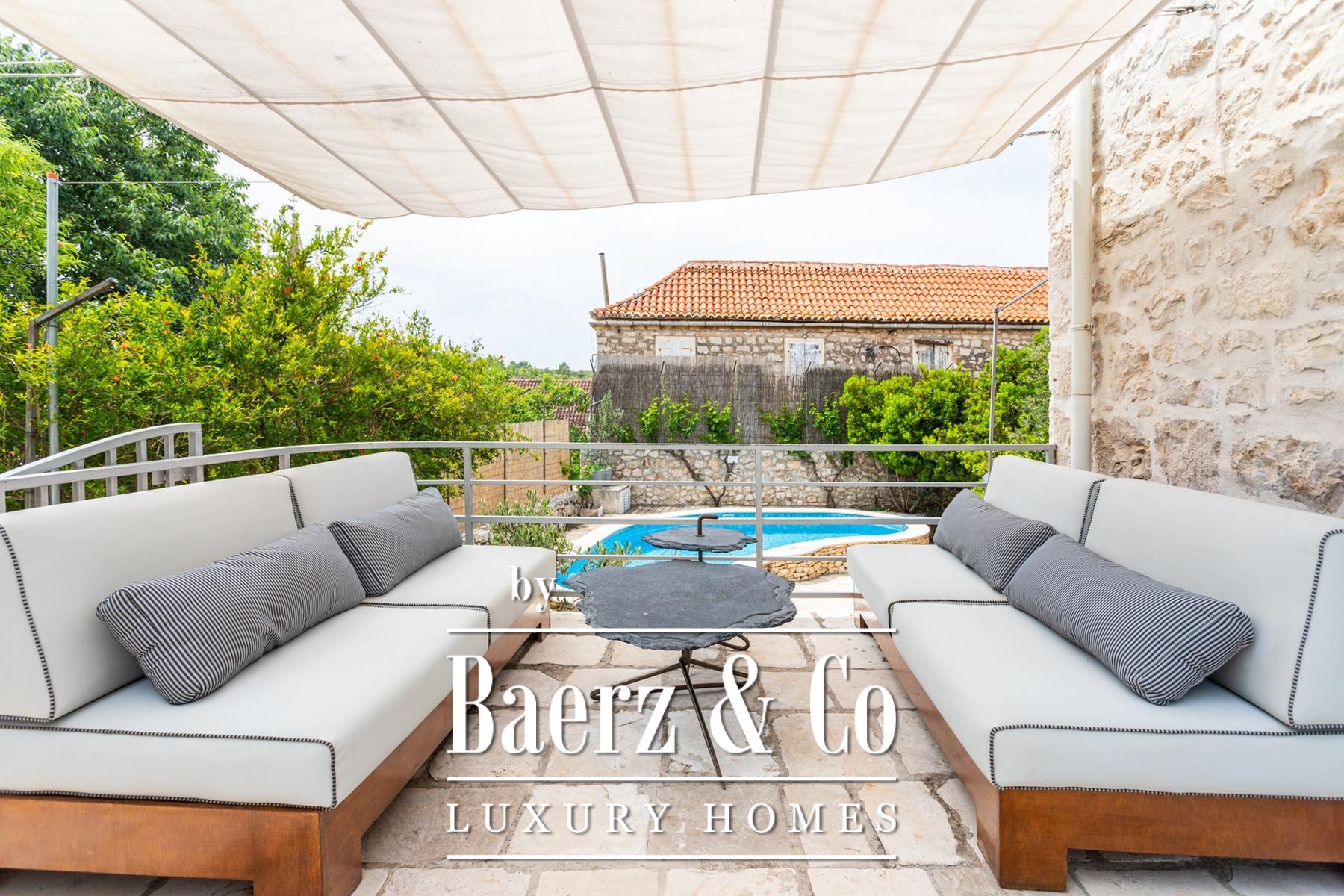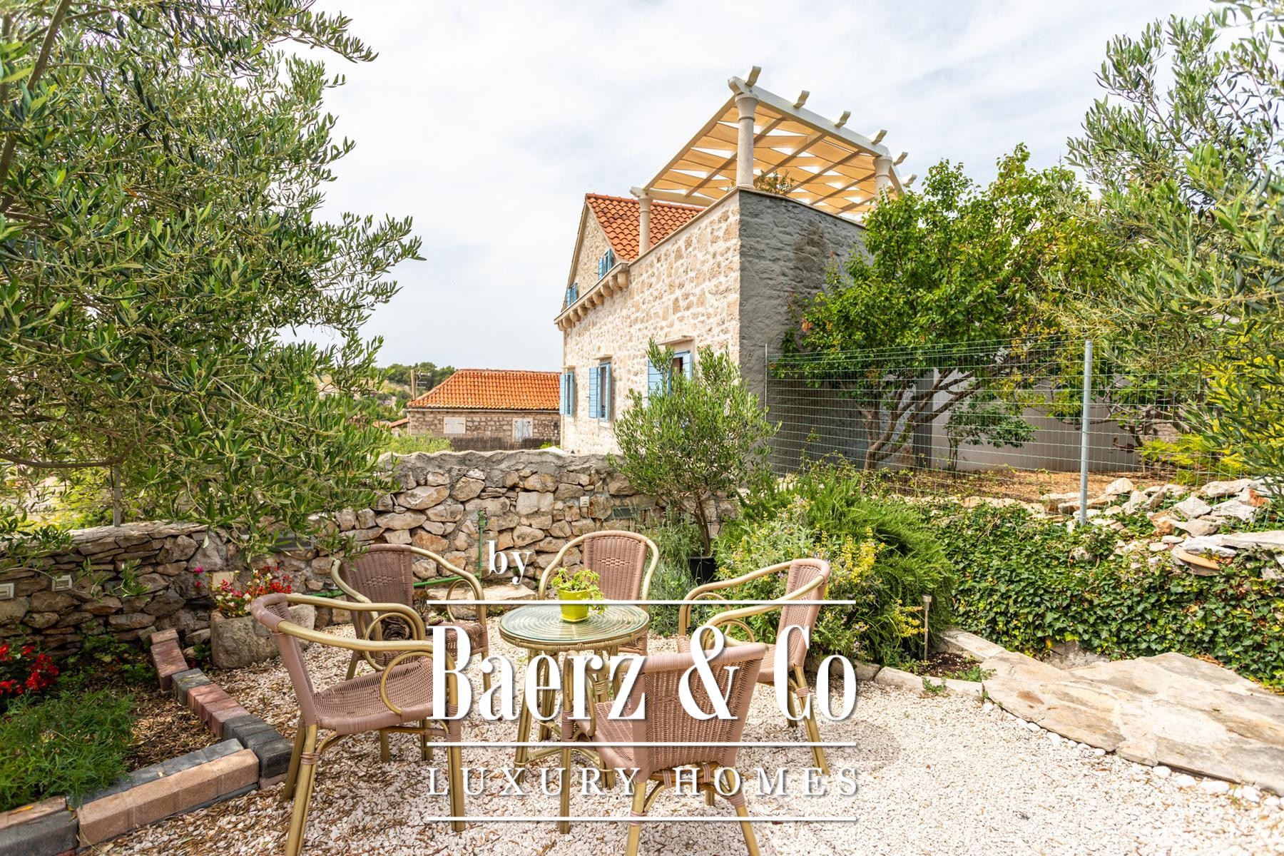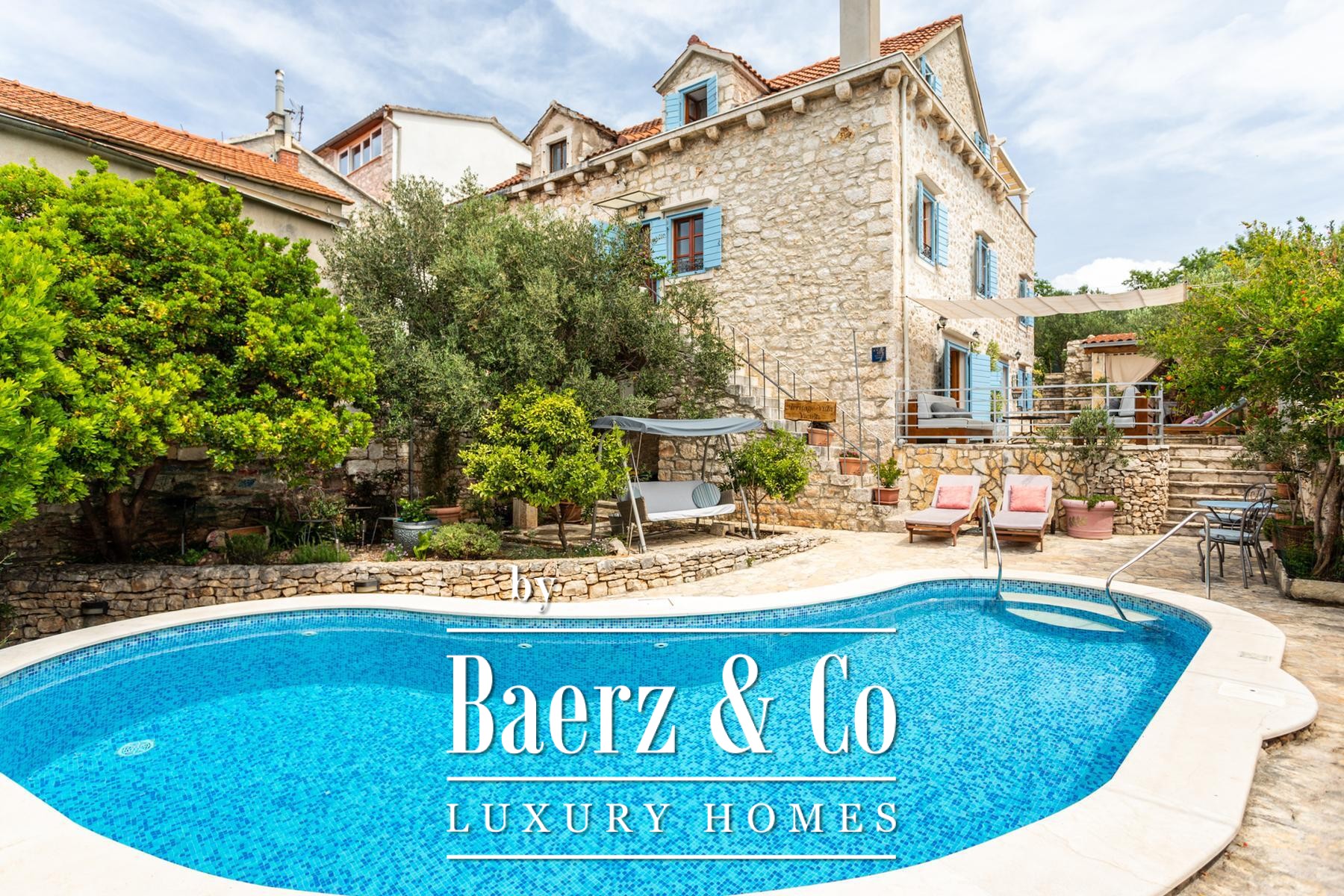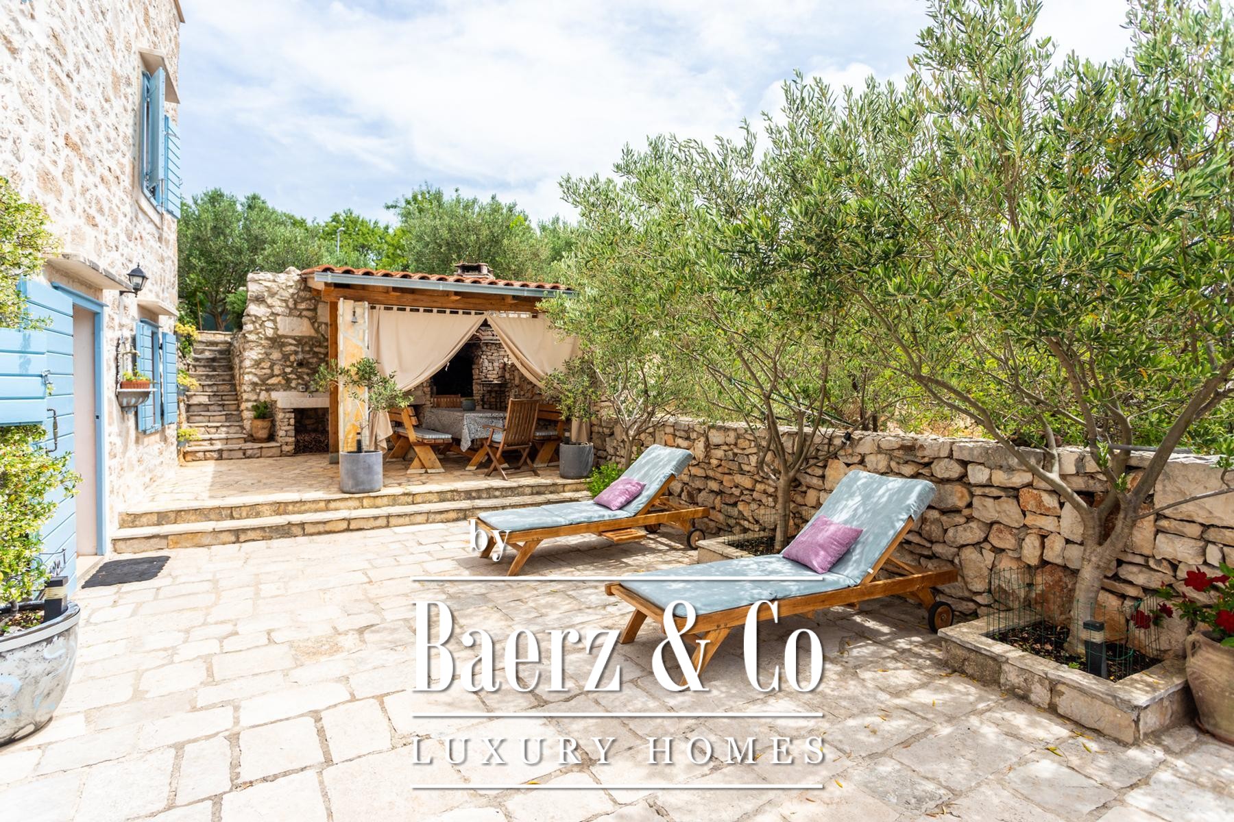 there is a lounge area, a spacious swimming pool, a sunbathing area, a barbecue area, a children's playground and a garden with native Dalmatian plants. The villa originates from the 19th century and has been completely renovated and decorated to the smallest detail in the original Dalmatian style, i.e. stone and wood, modernized to meet the needs of today's lifestyle. It is located in the very center of the small town of Milna, close to the waterfront, beach, shops, restaurants and all other essential amenities. More information on request.