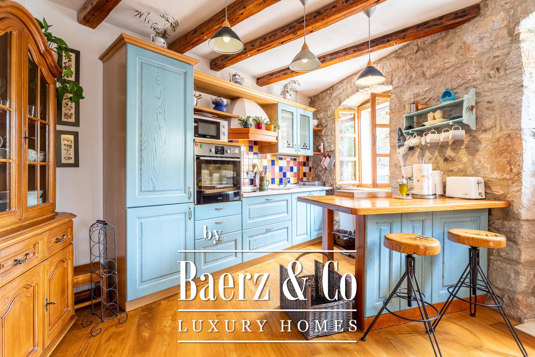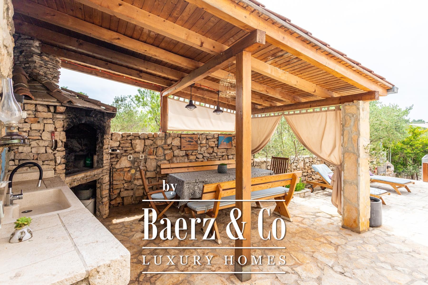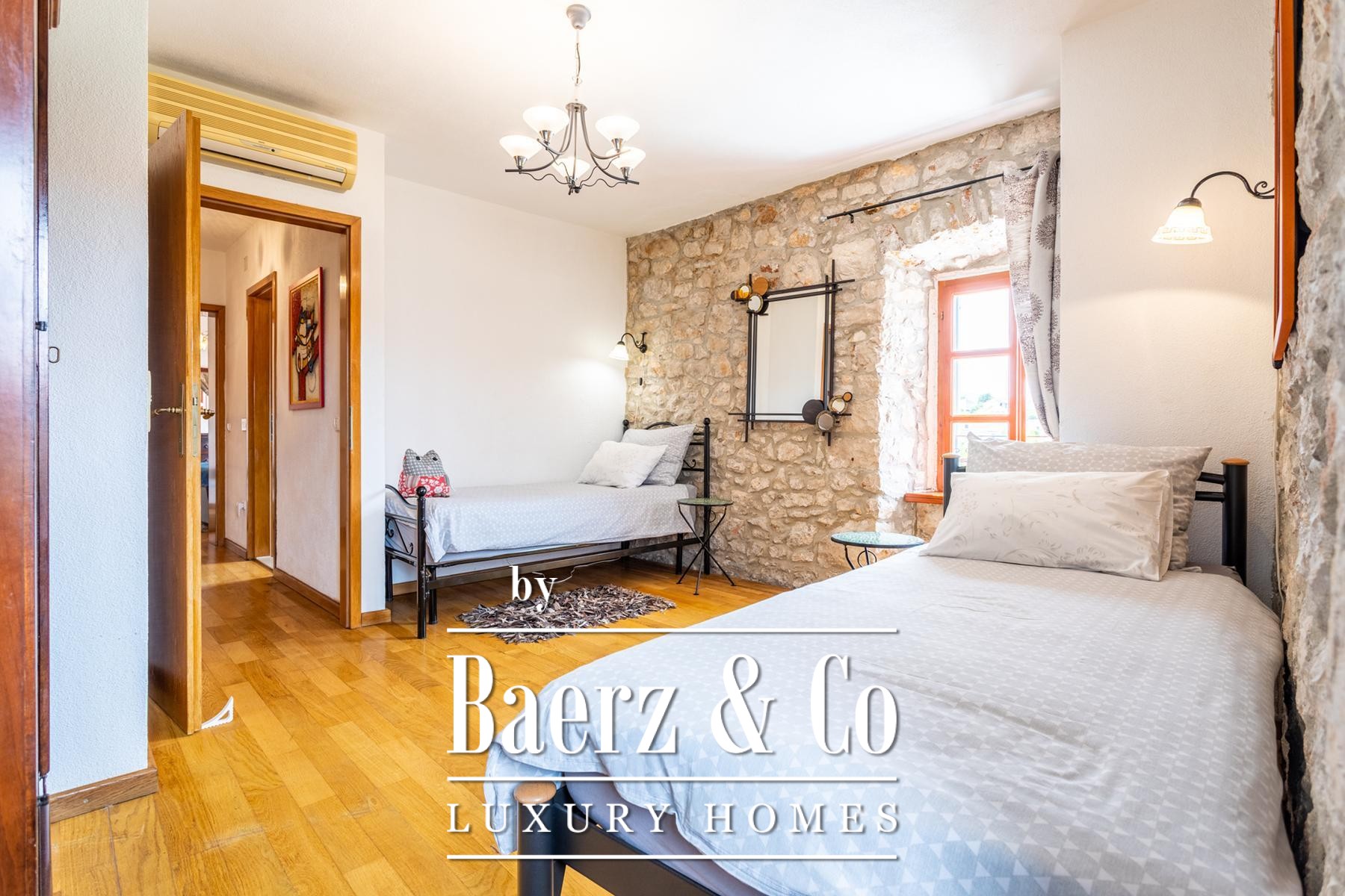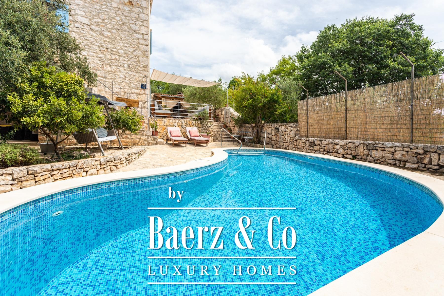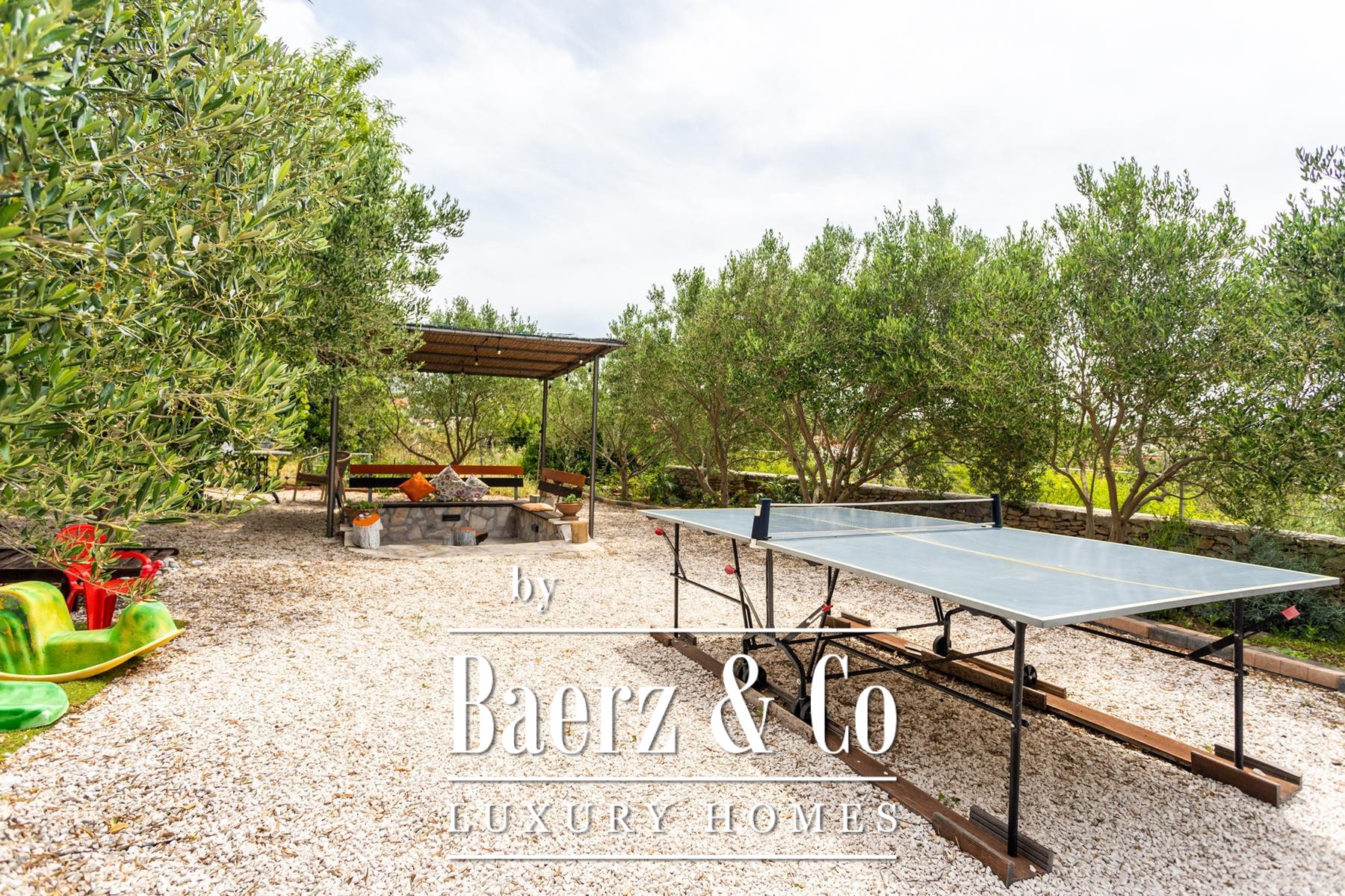 there is a lounge area, a spacious swimming pool, a sunbathing area, a barbecue area, a children's playground and a garden with native Dalmatian plants. The villa originates from the 19th century and has been completely renovated and decorated to the smallest detail in the original Dalmatian style, i.e. stone and wood, modernized to meet the needs of today's lifestyle. It is located in the very center of the small town of Milna, close to the waterfront, beach, shops, restaurants and all other essential amenities. More information on request.