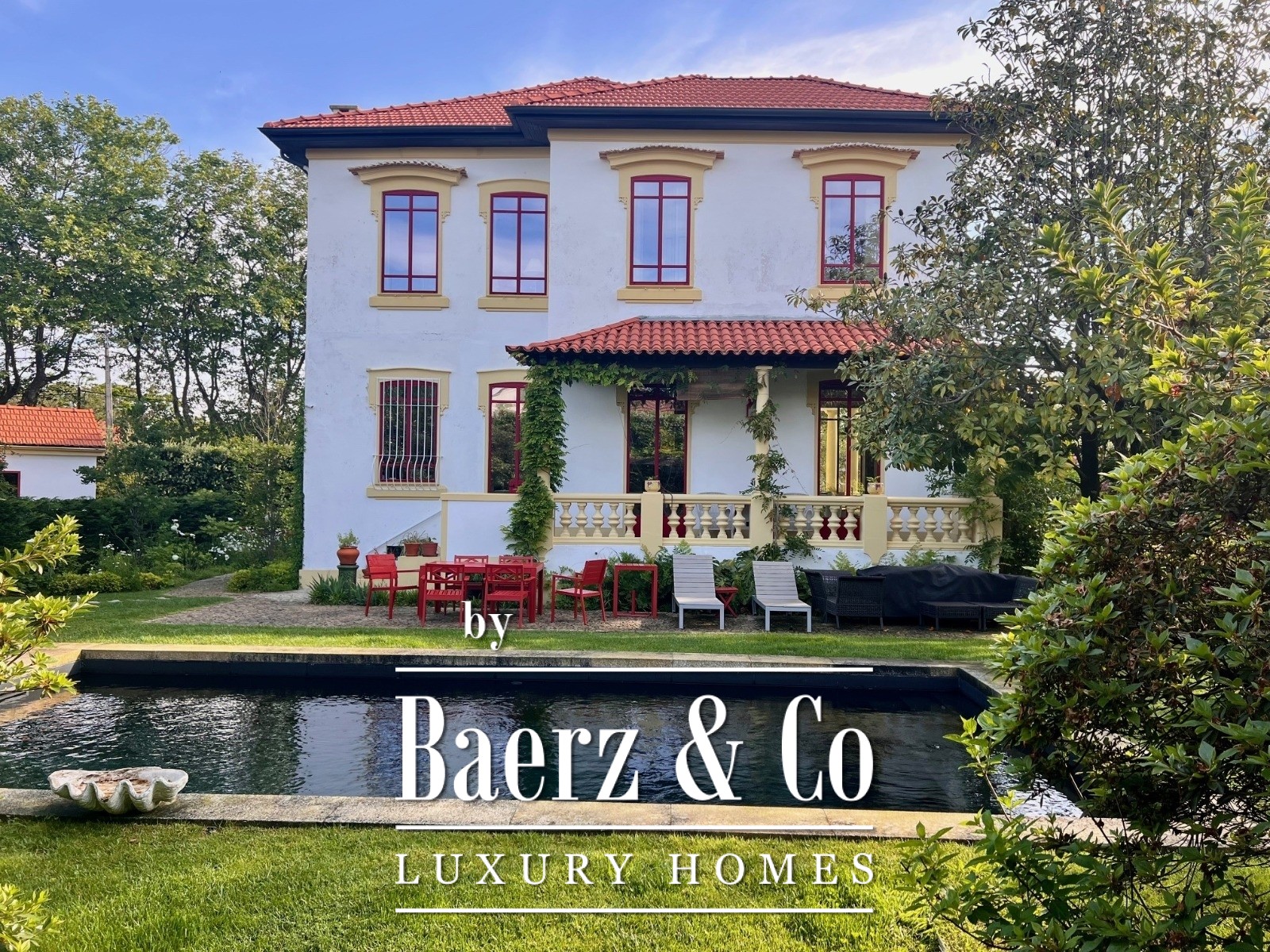 Within 576 m² of refined living space, the main house presents 5 bedrooms and 5 bathrooms. Two suites highlight contemporary luxury, while the interiors exude timeless elegance through crafted ceilings, a striking stained glass staircase, and airy volumes that bring a luminous atmosphere throughout. Fluid transitions connect the living room, dining area, and a modern kitchen with a central island; comforts include underfloor heating and select air conditioning, alongside a fire place for seasonal ambiance.