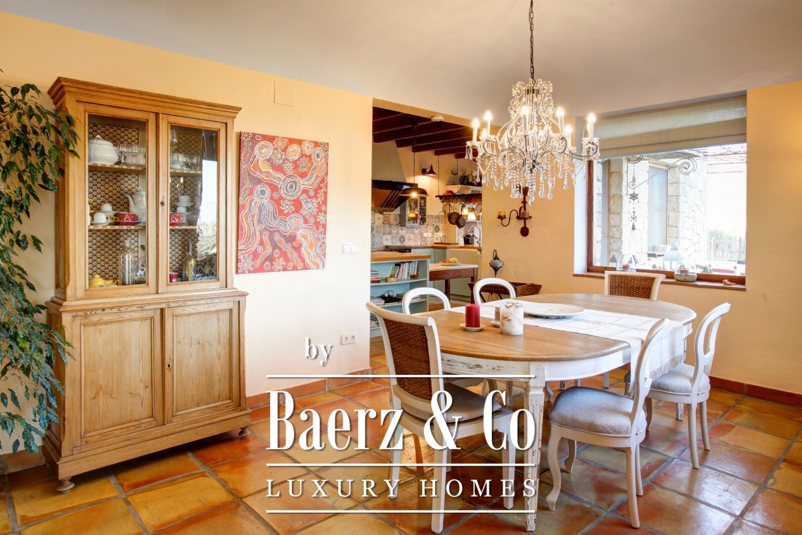 Step into a world of luxury and tranquility with this exceptional finca, built in 1998 and set on a spacious plot of 10,229 m² in the peaceful countryside. The property combines timeless elegance with modern comfort and offers stunning panoramic views of both the Mediterranean Sea and the majestic mountains, a breathtaking backdrop to enjoy every day. The finca is surrounded by nature and offers complete privacy. The 556 m² built area is distributed over three floors. On the ground floor, we find the living area with a bright living room, a formal dining room, and an elegant kitchen. There is also a garage (for one car). The upper floor features four spacious bedrooms and three refined bathrooms with high-quality finishes, two of which are en-suite. Lastly, there is a lovely bodega in the basement for