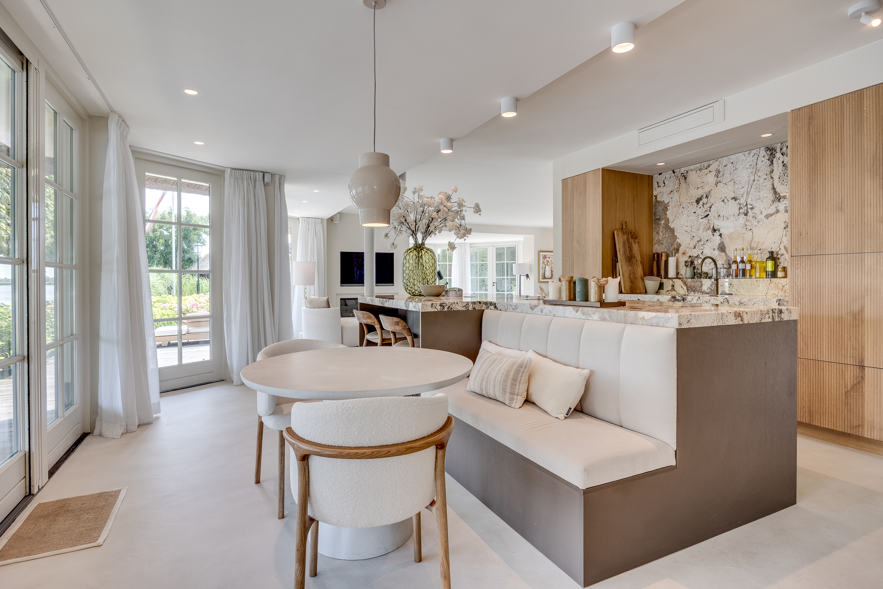 Vreelandseweg 99 in Nigtevecht - A beautiful, modern (completely renovated in 2023), luxurious, thatched villa on the majestic River Vecht, just outside Amsterdam. Living here means endless enjoyment with family and friends of the beautiful nature, the conviviality of water sports on the river, but also the ultimate peace and privacy that this magnificent place has to offer. And all this just a stone's throw (20 minutes) from Amsterdam and the charming villages of Nigtevecht and Vreeland (5 minutes).