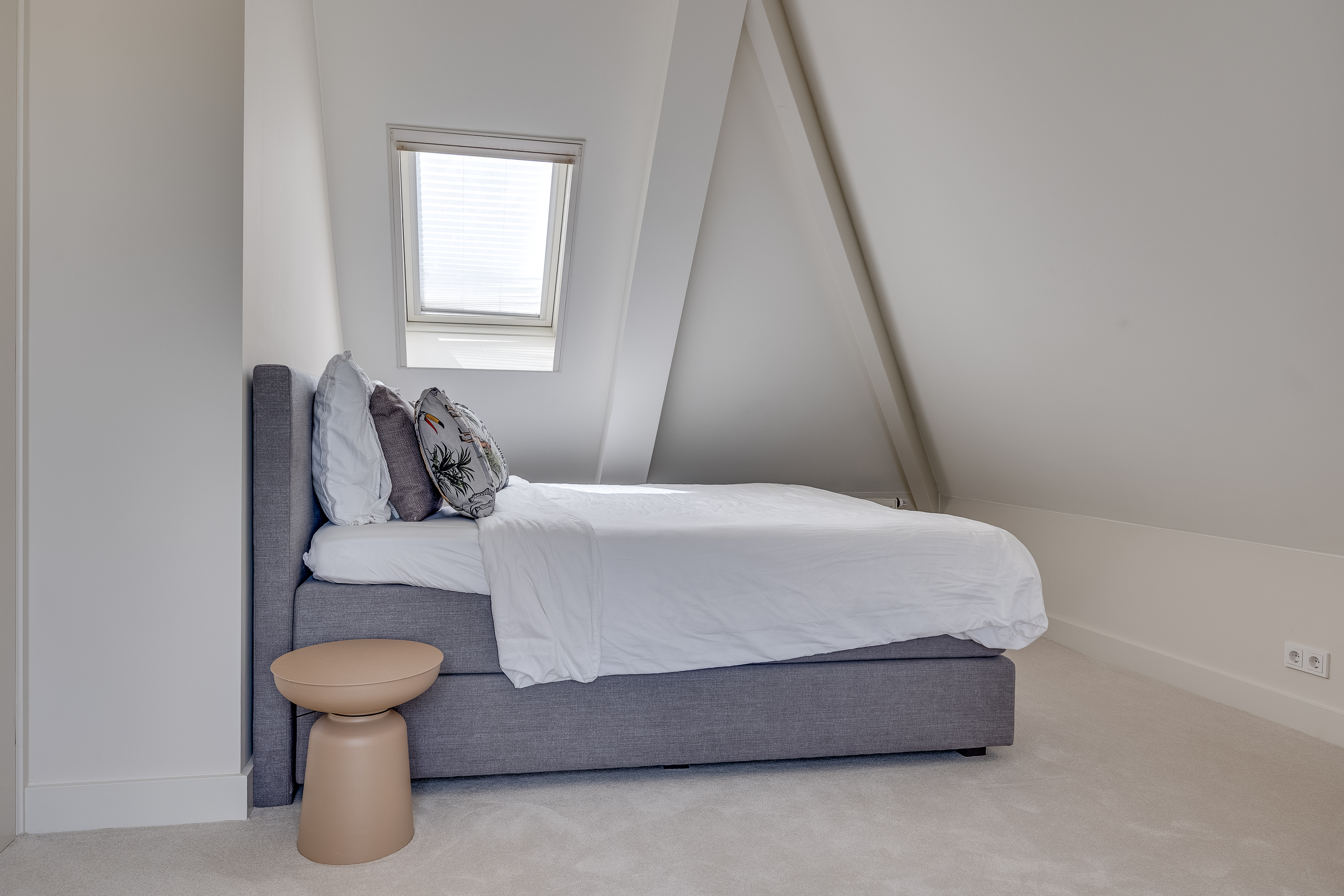 The upper floor features the master bedroom, fully equipped with an en-suite bathroom and walk-in closet. Here, the tranquility is almost tangible; beautiful sweeping views of the countryside and the Vecht river through the French doors and the indoor balcony. All you can hear is the rippling water and the soft singing of the (water) birds. There is also a luxurious second bedroom with its own en-suite bathroom. Time to end your working day? Close your laptop and stroll through the garden, or grab your boat and set sail. A well-deserved dip is, of course, also an option.
