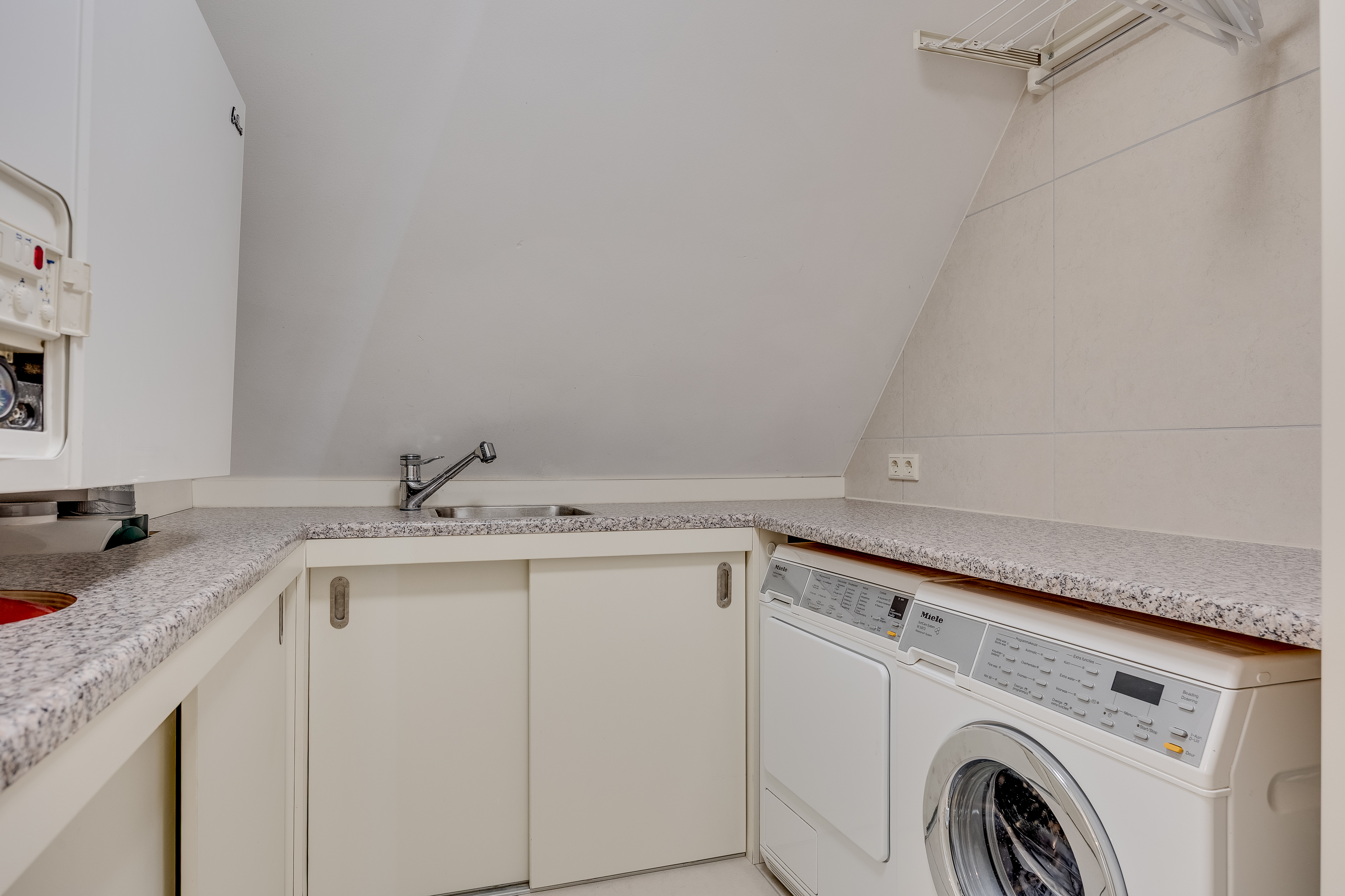 The layout is practical and well thought out, with several living areas on the ground floor. These include a spacious living room, a cozy conservatory, and an attractive kitchen. This is not a place to cook, but a place to live. Enjoy hours of dining, relaxing drinks with friends, and cozy winter evenings by the fireplace. Pour yourself a glass of wine from the wine cabinet, open the garden doors, and relax on the cozy terrace overlooking the river “de Vecht.”