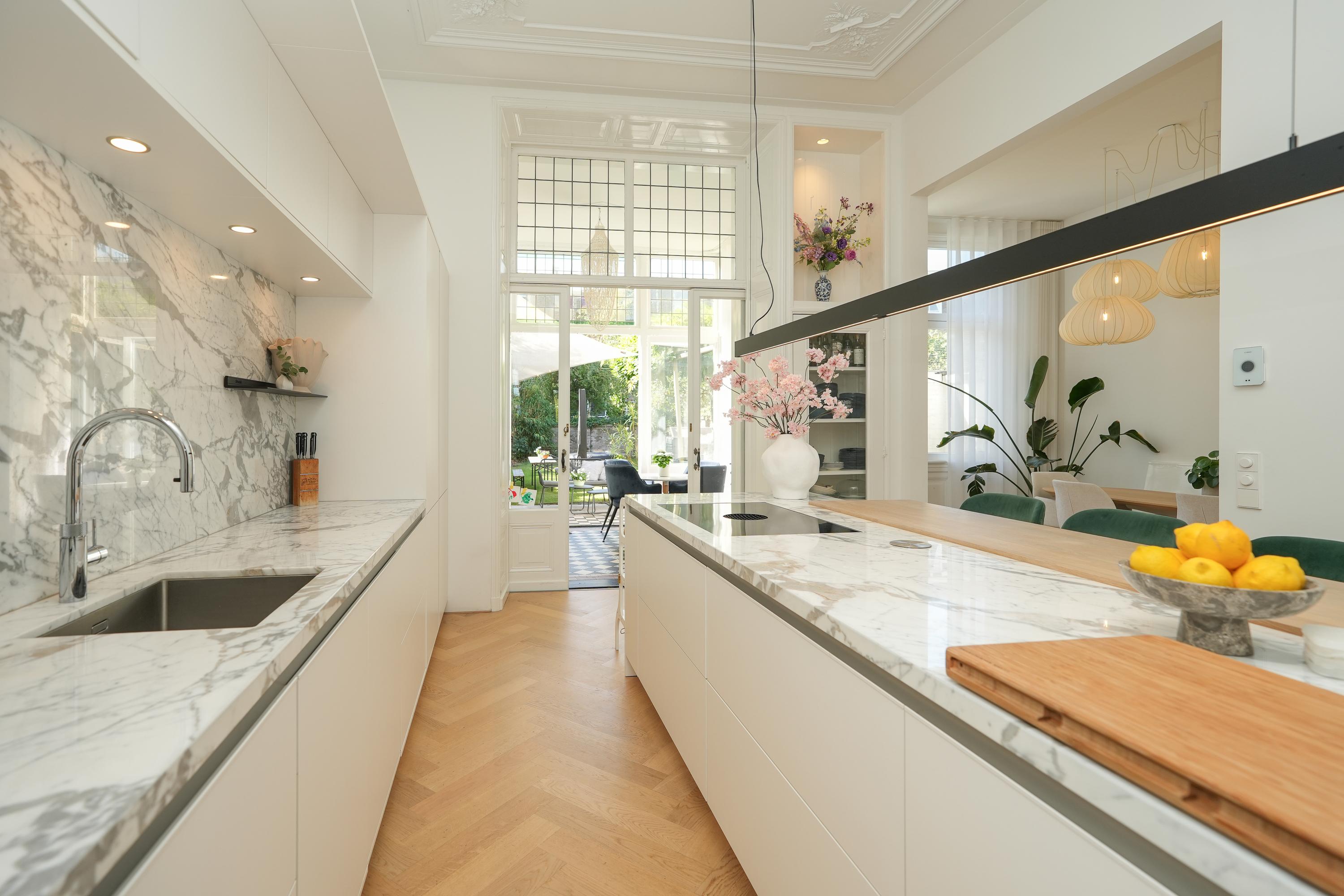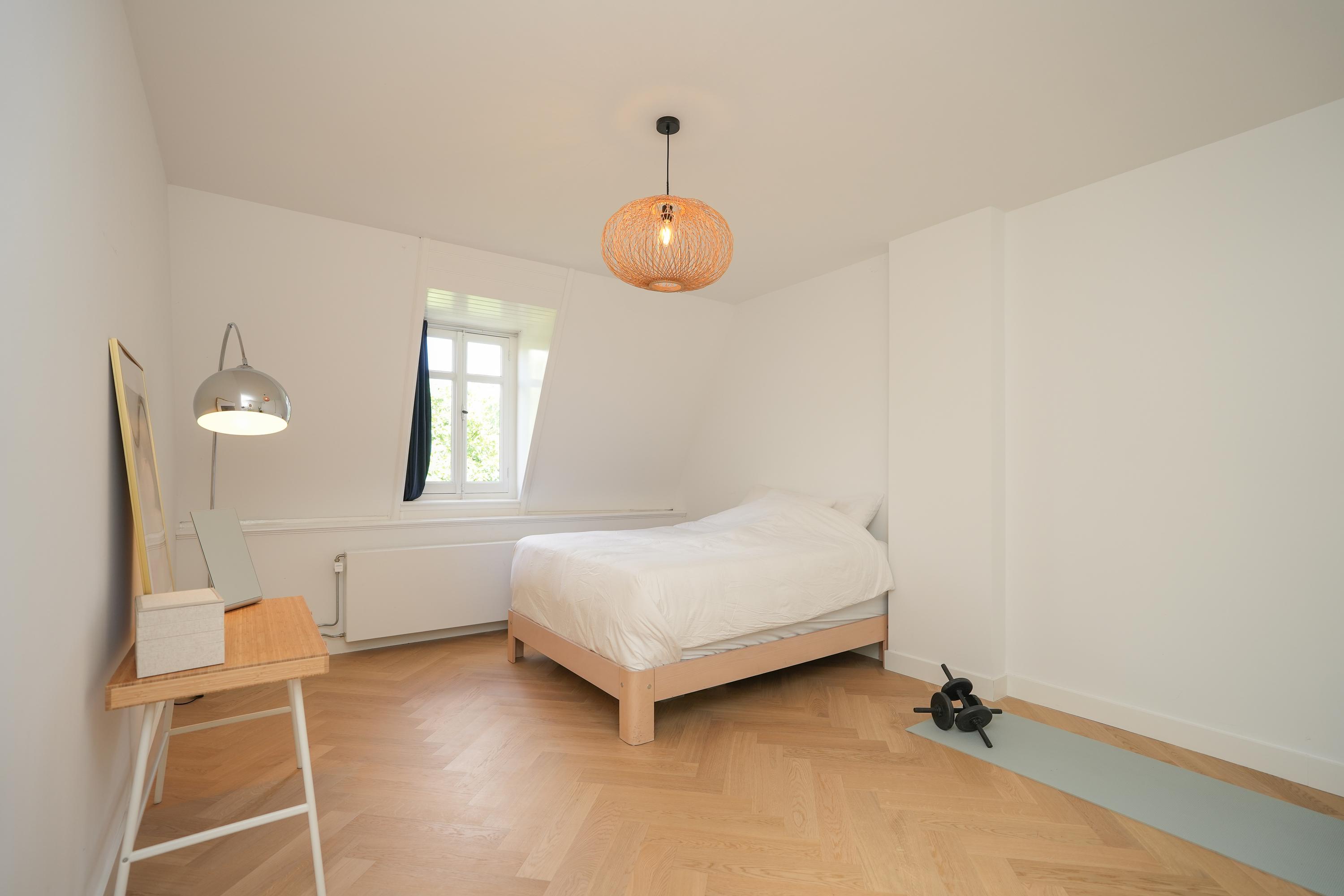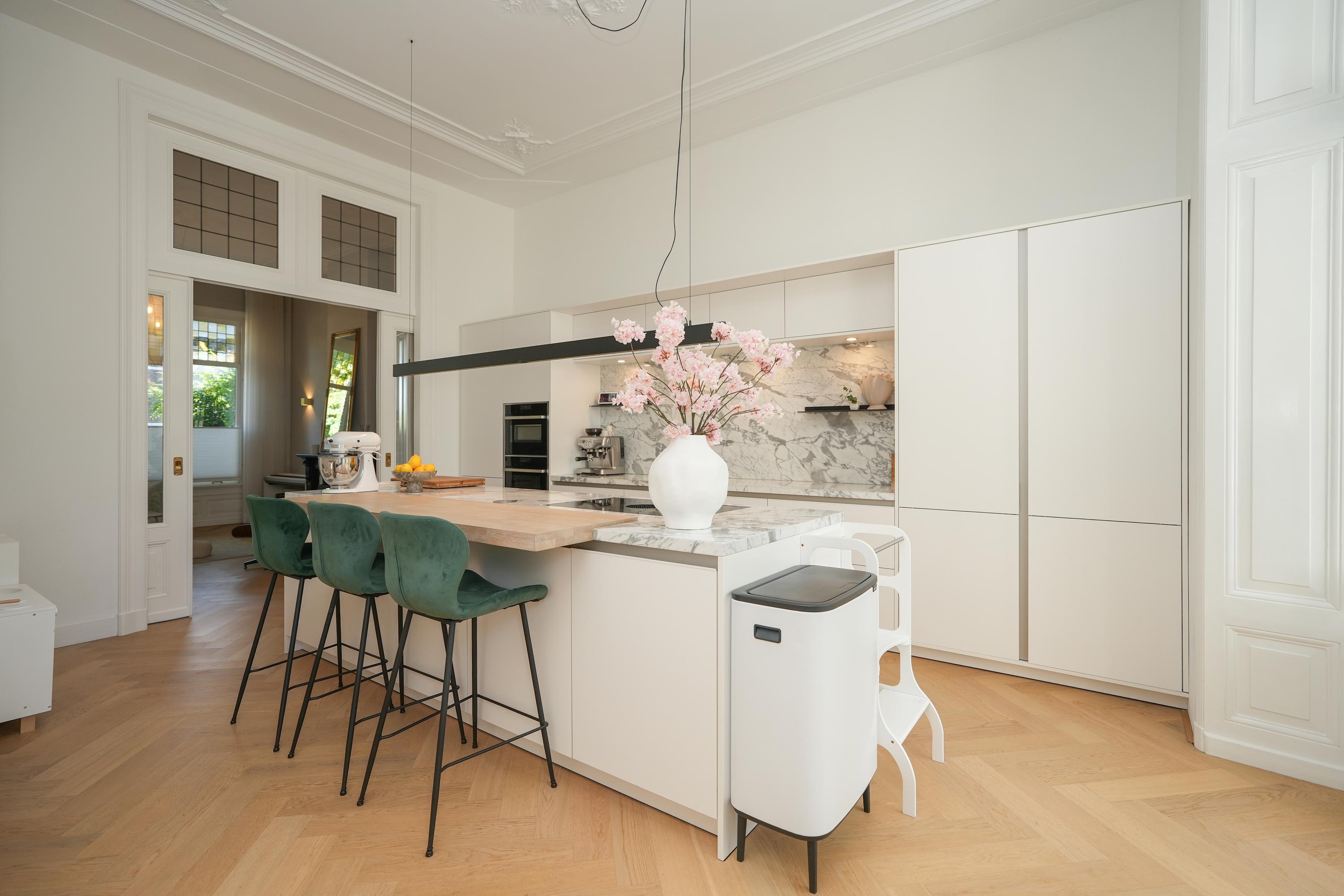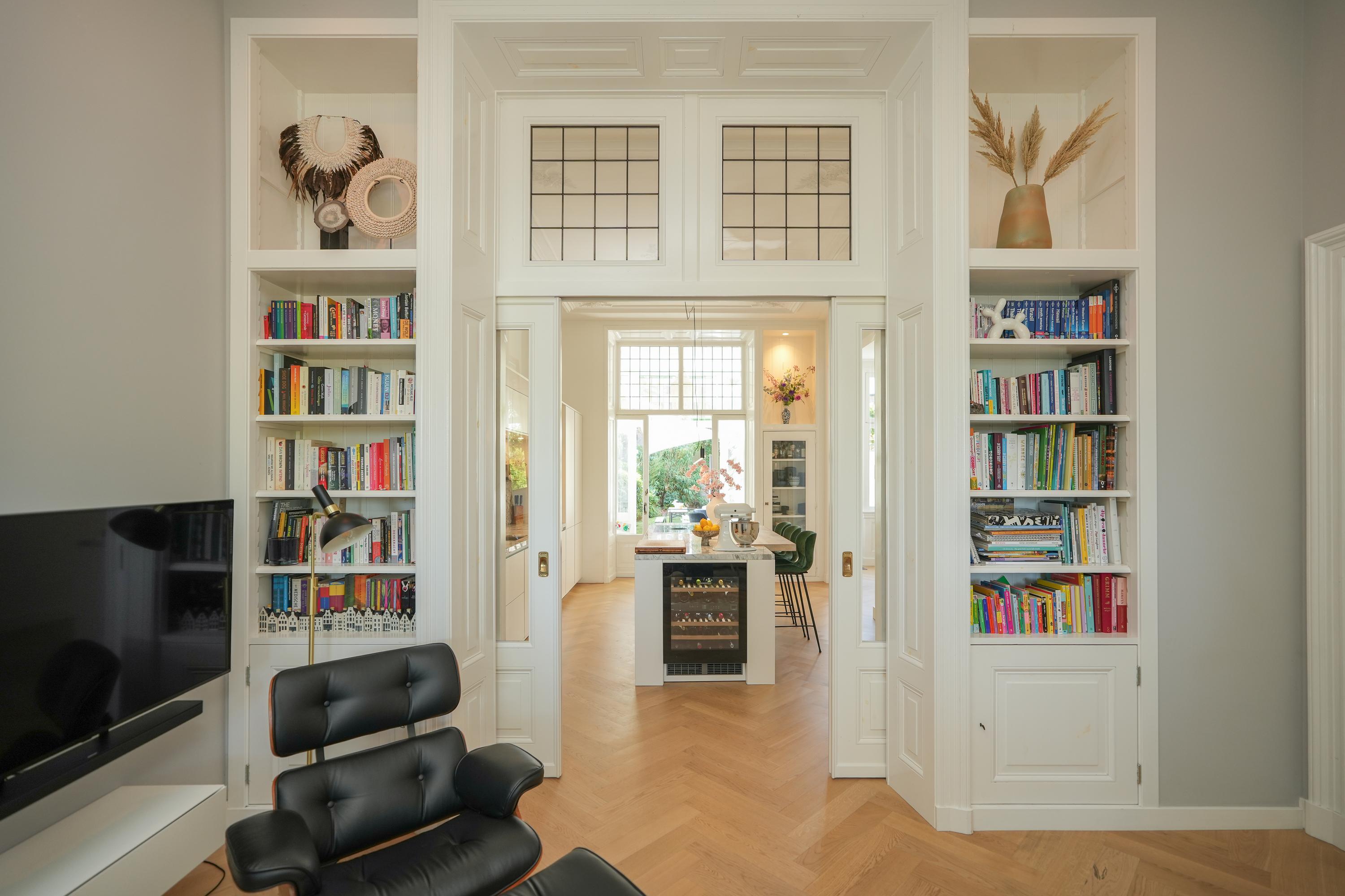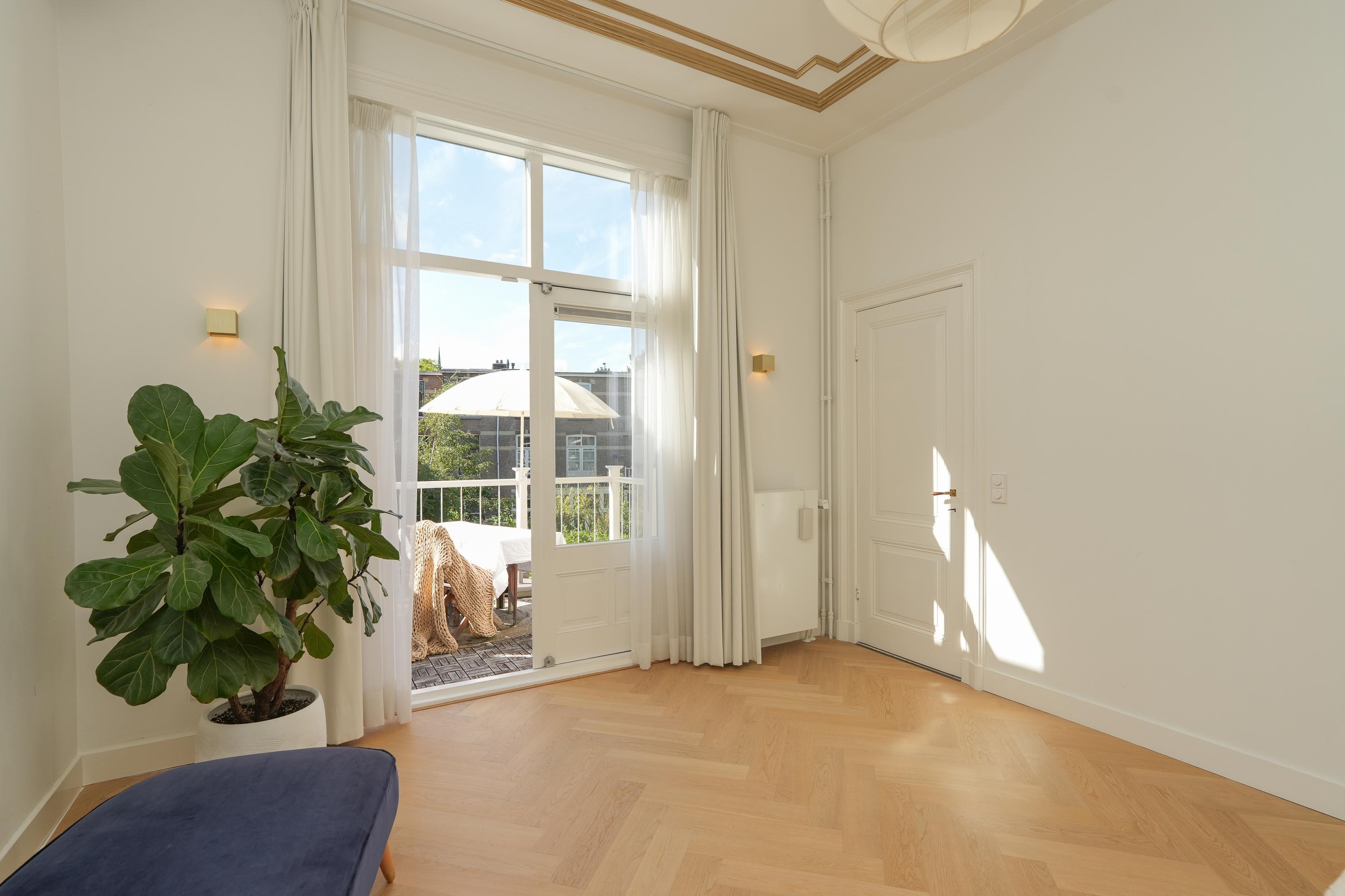 This beautiful and luxurious townhouse is a property that really makes an impression. The property was completely renovated in 2020, preserving and restoring many authentic details such as high ceilings with ornate mouldings, en-suite doors and stained glass. This house exudes atmosphere and elegance, while at the same time offering modern living comfort. With no fewer than five spacious bedrooms, the possibility for a sixth bedroom, two bathrooms, three toilets and a spacious basement, this house offers all the space a family could wish for. The stately double front door, the wide balcony at the front, the deep and quiet south-facing back garden and the excellent state of maintenance give this house an extra sense of grandeur and living pleasure. Thanks to its good insulation, the house has an energy label A and is energy efficient.