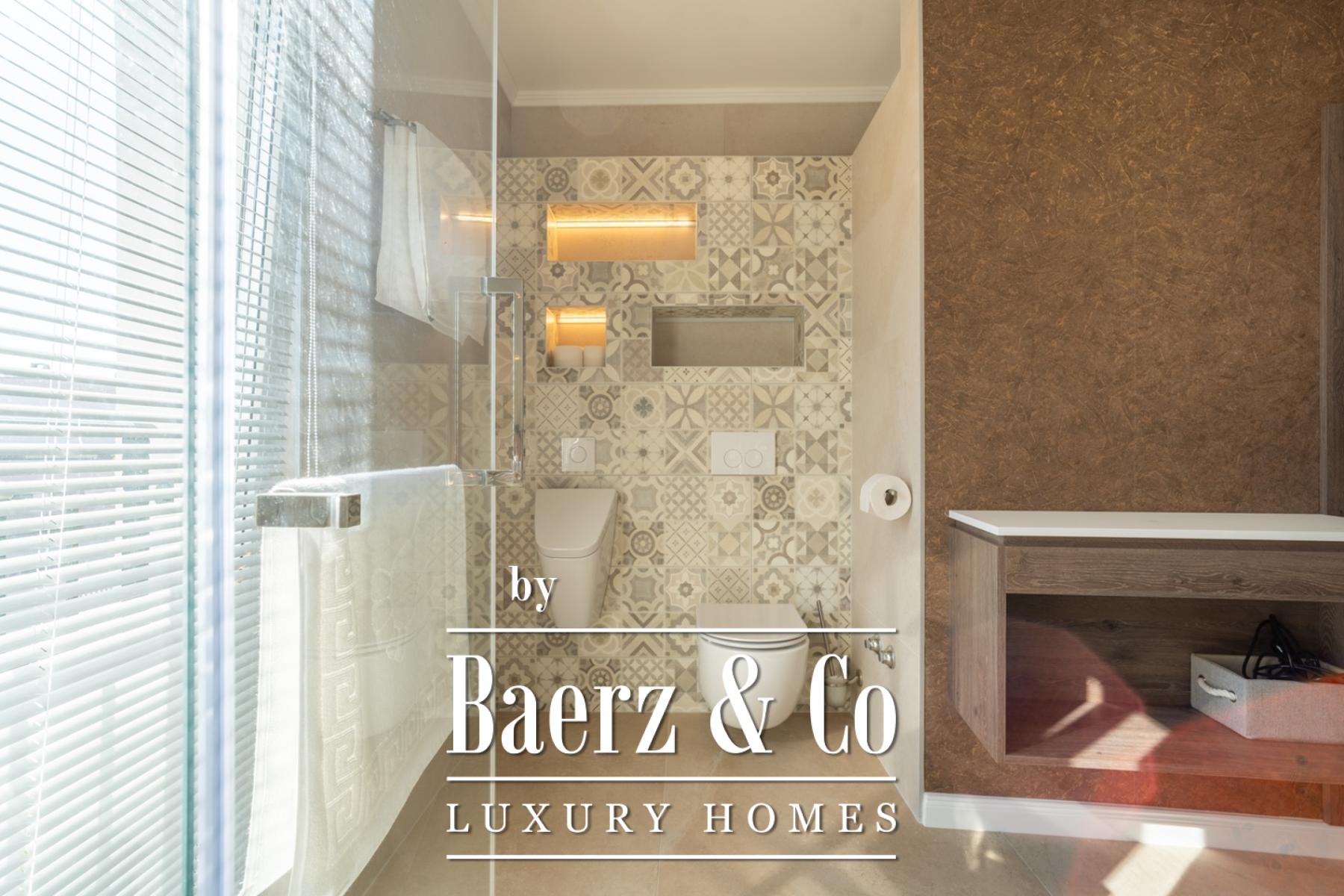 Upstairs, a flexible layout accommodates a two-bedroom apartment, two suites and a studio apartment, each with luxurious bathrooms, dressing rooms, and access to a sunlit terrace. Every element, from materials to bespoke furniture, reflects careful curation.