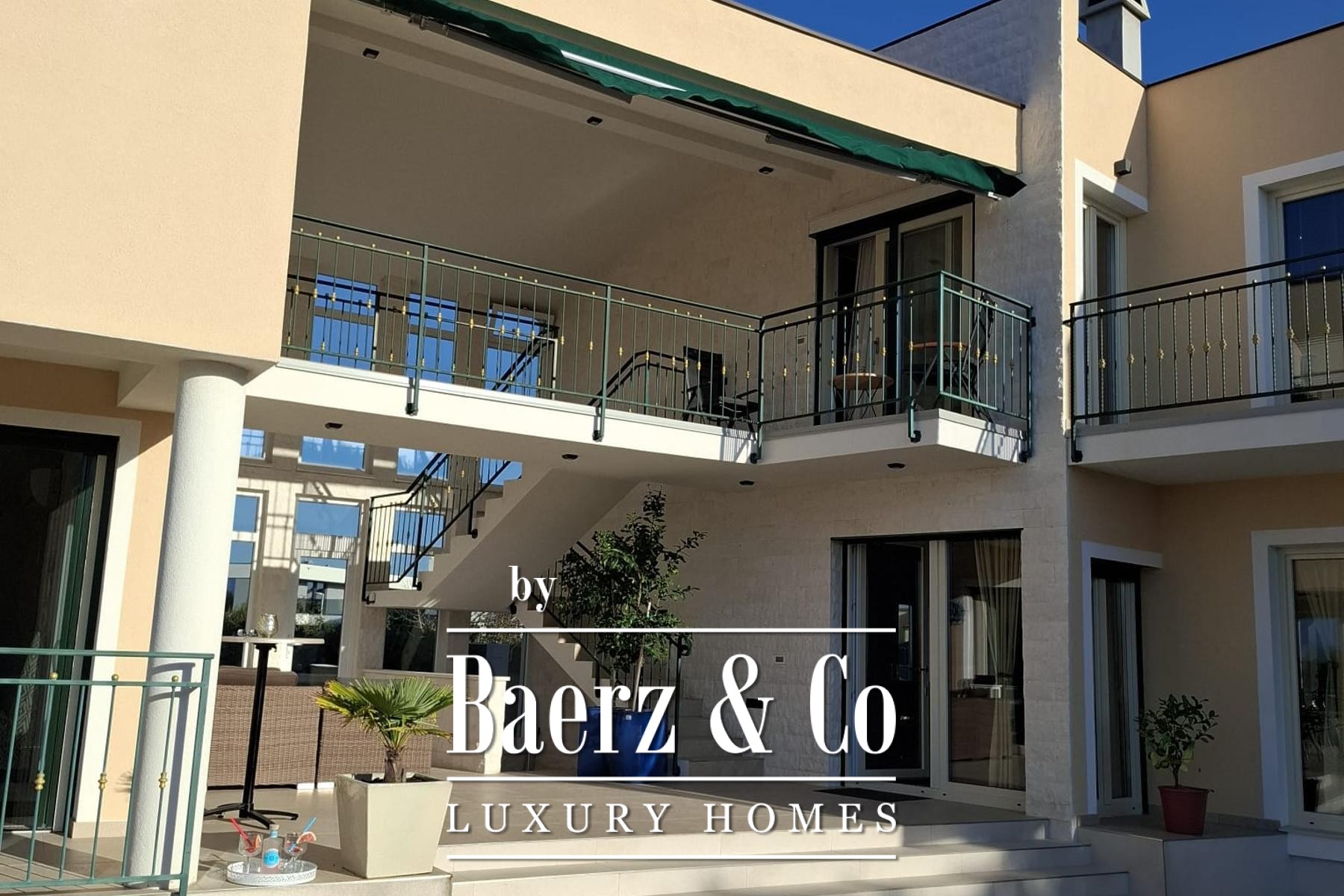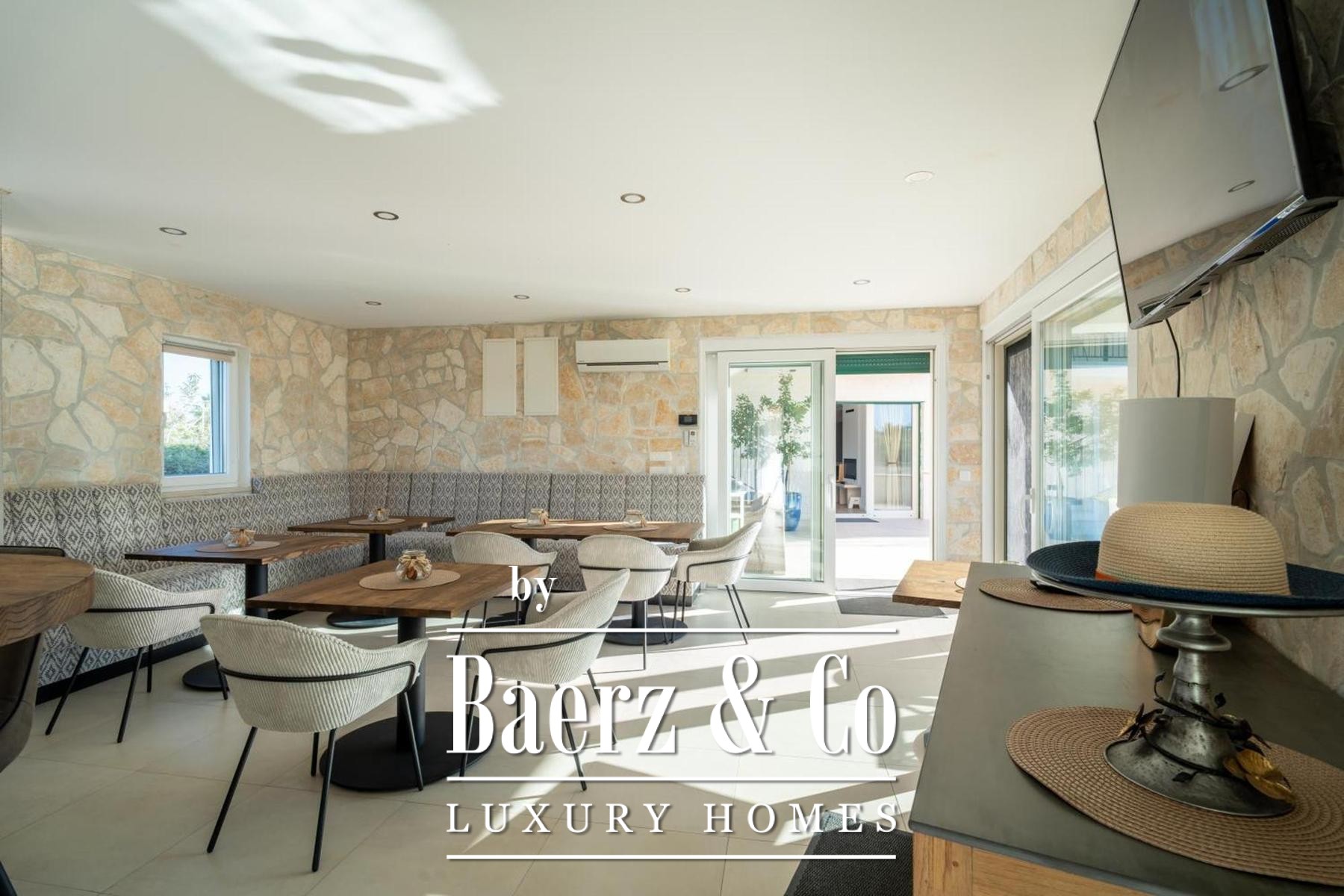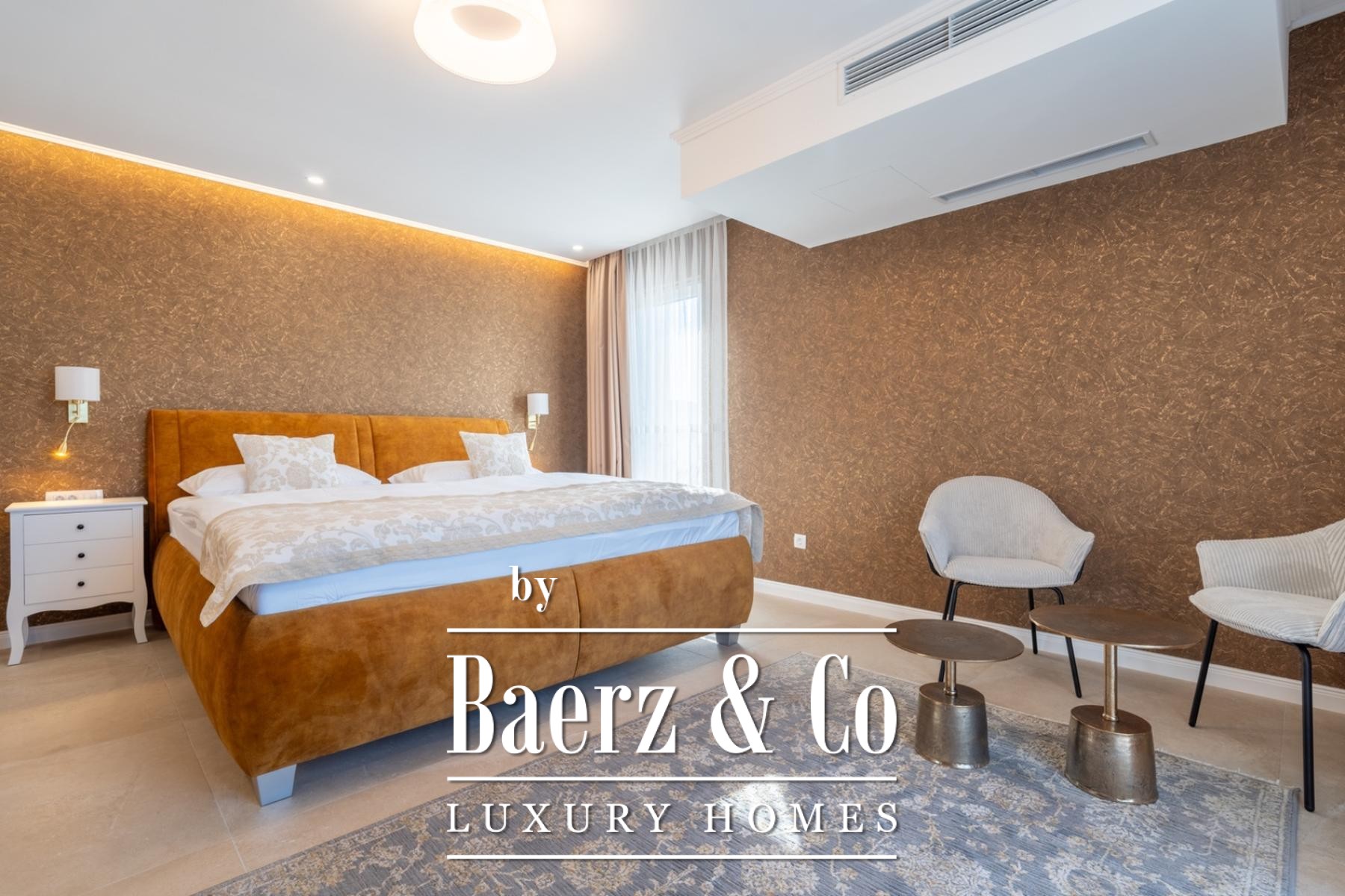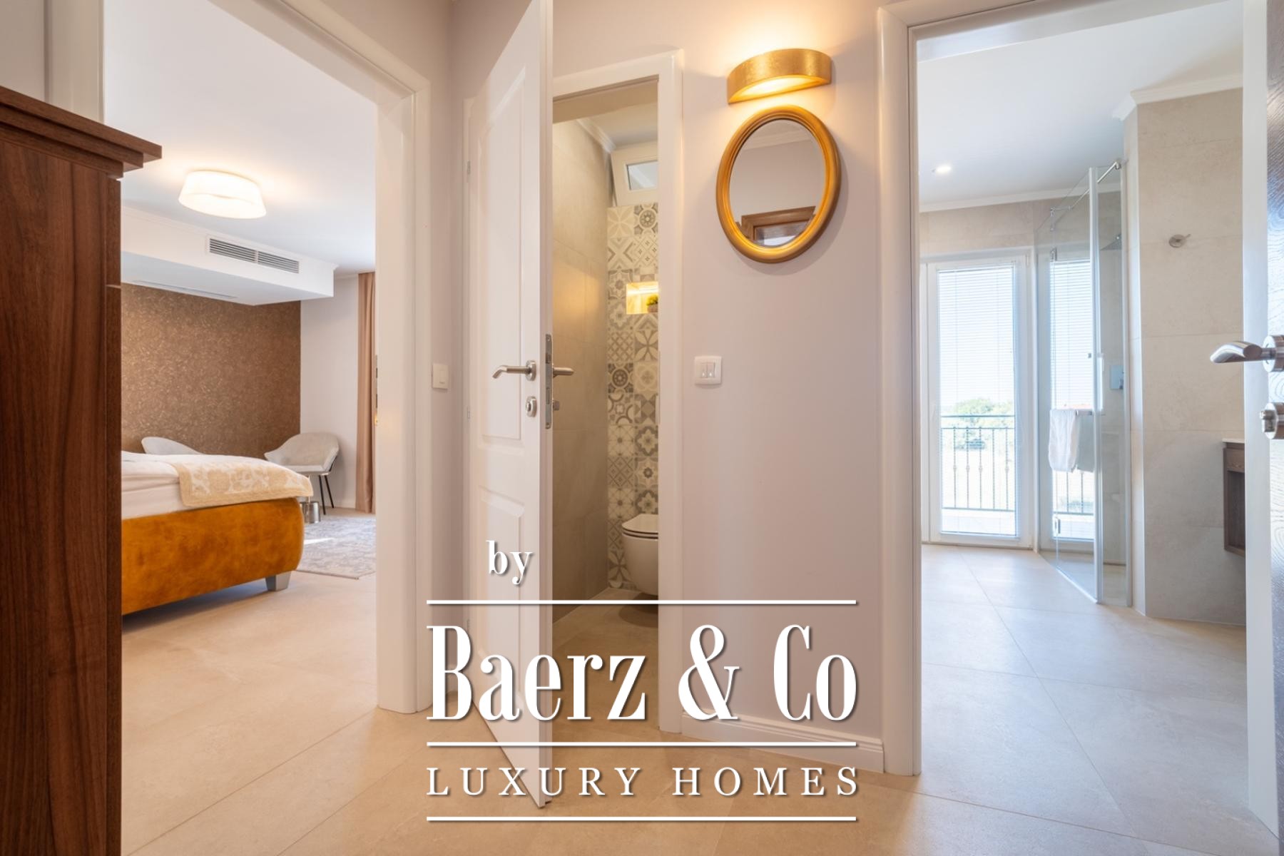 Outdoors, a pool and sunbathing lounge merge into meticulously landscaped gardens, offering serene settings for privacy or quiet gatherings. A detached garage and ample parking provide further ease, making this luxury villa for sale in Zadar Nin a synthesis of aesthetics and utility, tailored for those drawn to the lasting pleasures of design and discretion.