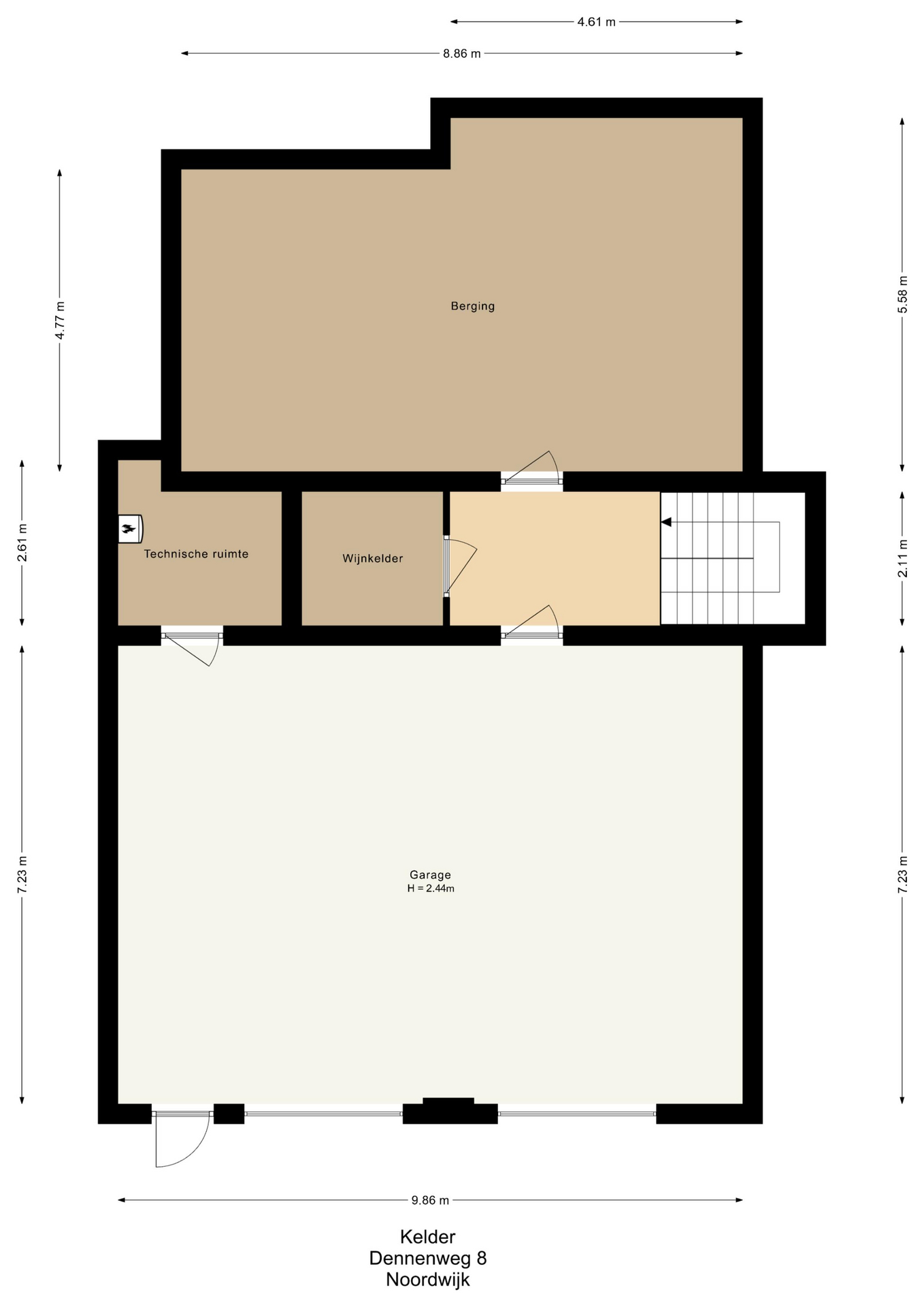 The basement features a double indoor garage with electric doors, a multifunctional room, a wine cellar, and a technical room.
