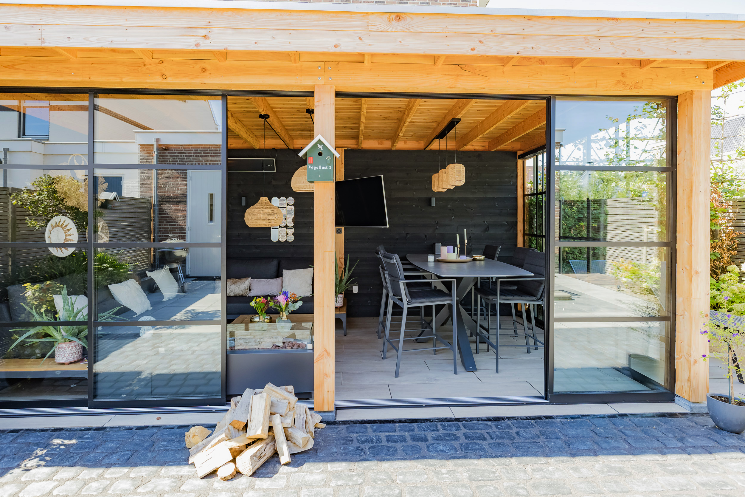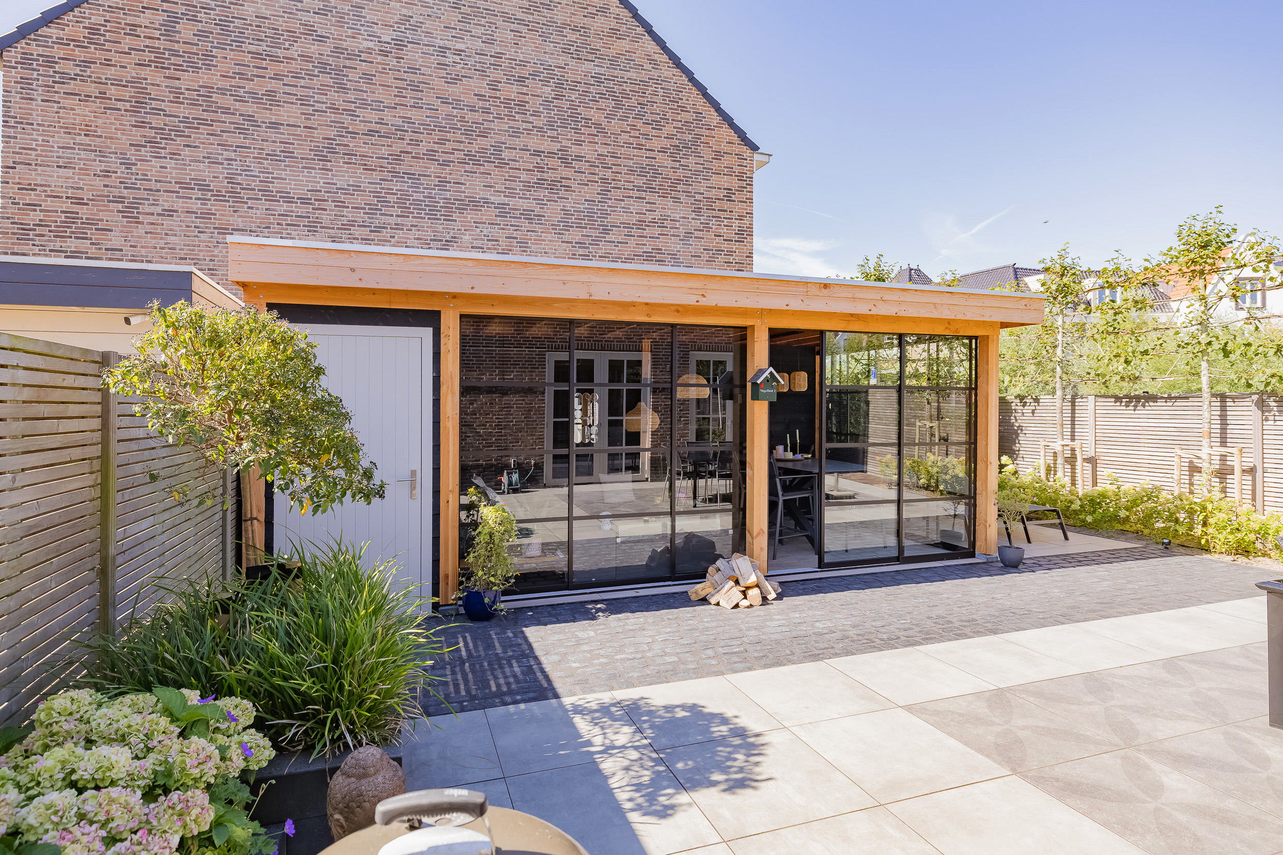 The sunny garden (SW) with veranda completes the living experience. Here you can enjoy the outdoors in all seasons. The back entrance provides convenient additional access to the backyard.