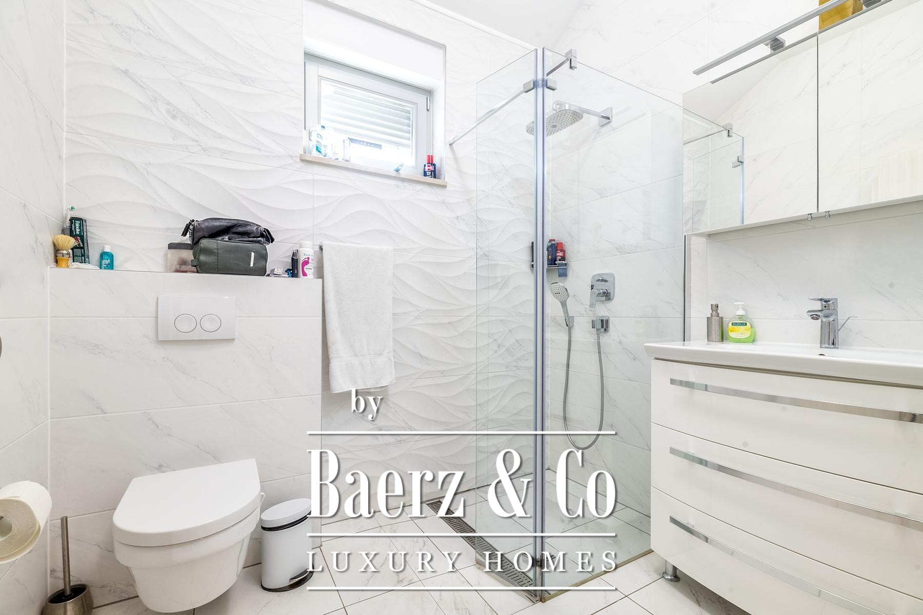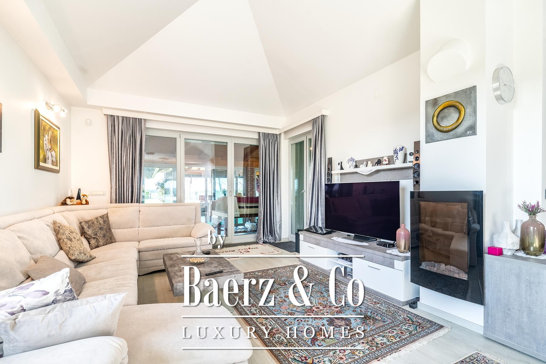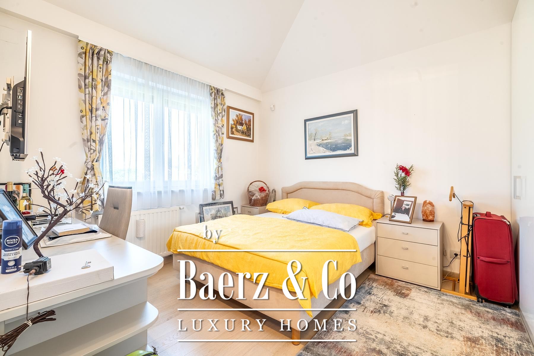 Outdoors, mature landscaping frames the scene with an orchard, well-maintained lawn, and high green hedges ensuring absolute privacy. Entertain in the barbecue area under a covered terrace. Modern built-in furniture, quality appliances, fireplace, and an alarm system complete the offering. Easy reach to Novi Zagreb and the motorway adds convenience to the serenity of this address. This house in Novi Zagreb Zapad balances connectivity with retreat, crafted for those who value peace and proximity.