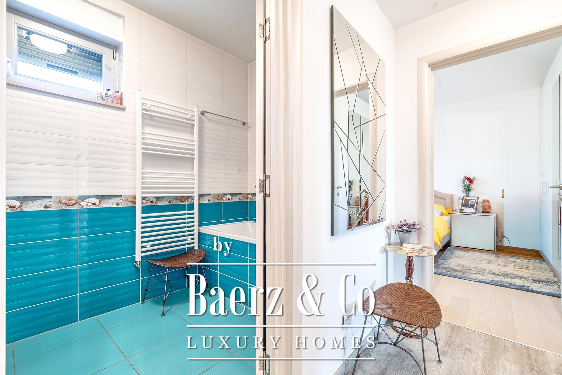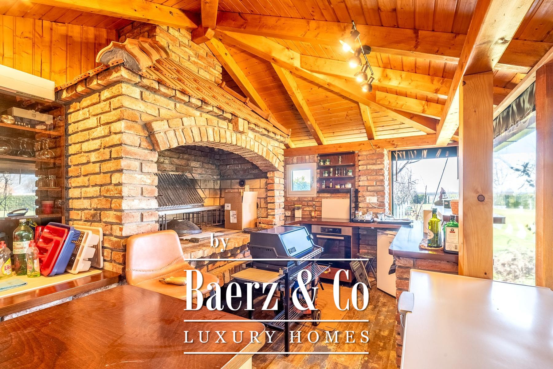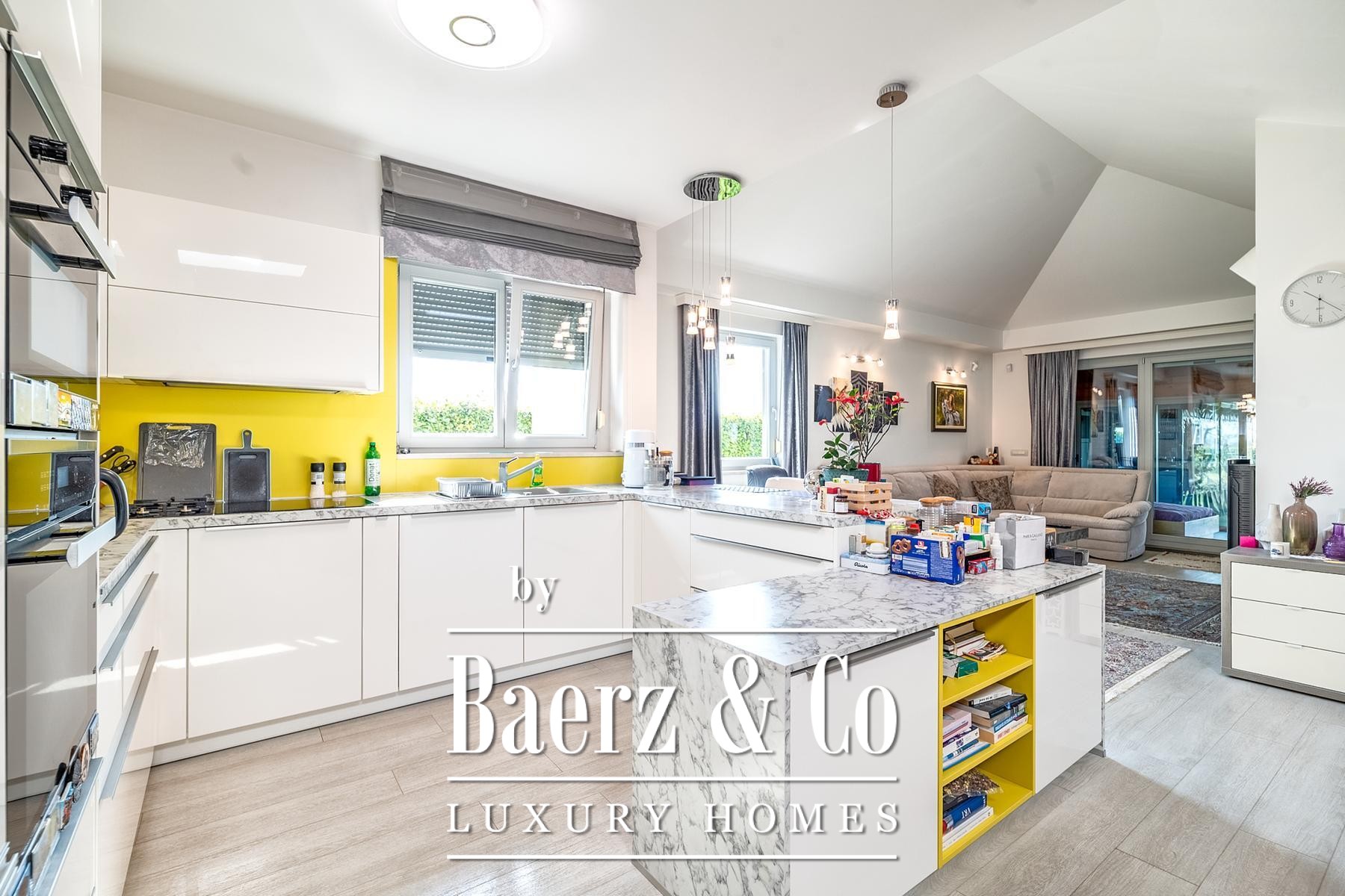 Outdoors, mature landscaping frames the scene with an orchard, well-maintained lawn, and high green hedges ensuring absolute privacy. Entertain in the barbecue area under a covered terrace. Modern built-in furniture, quality appliances, fireplace, and an alarm system complete the offering. Easy reach to Novi Zagreb and the motorway adds convenience to the serenity of this address. This house in Novi Zagreb Zapad balances connectivity with retreat, crafted for those who value peace and proximity.