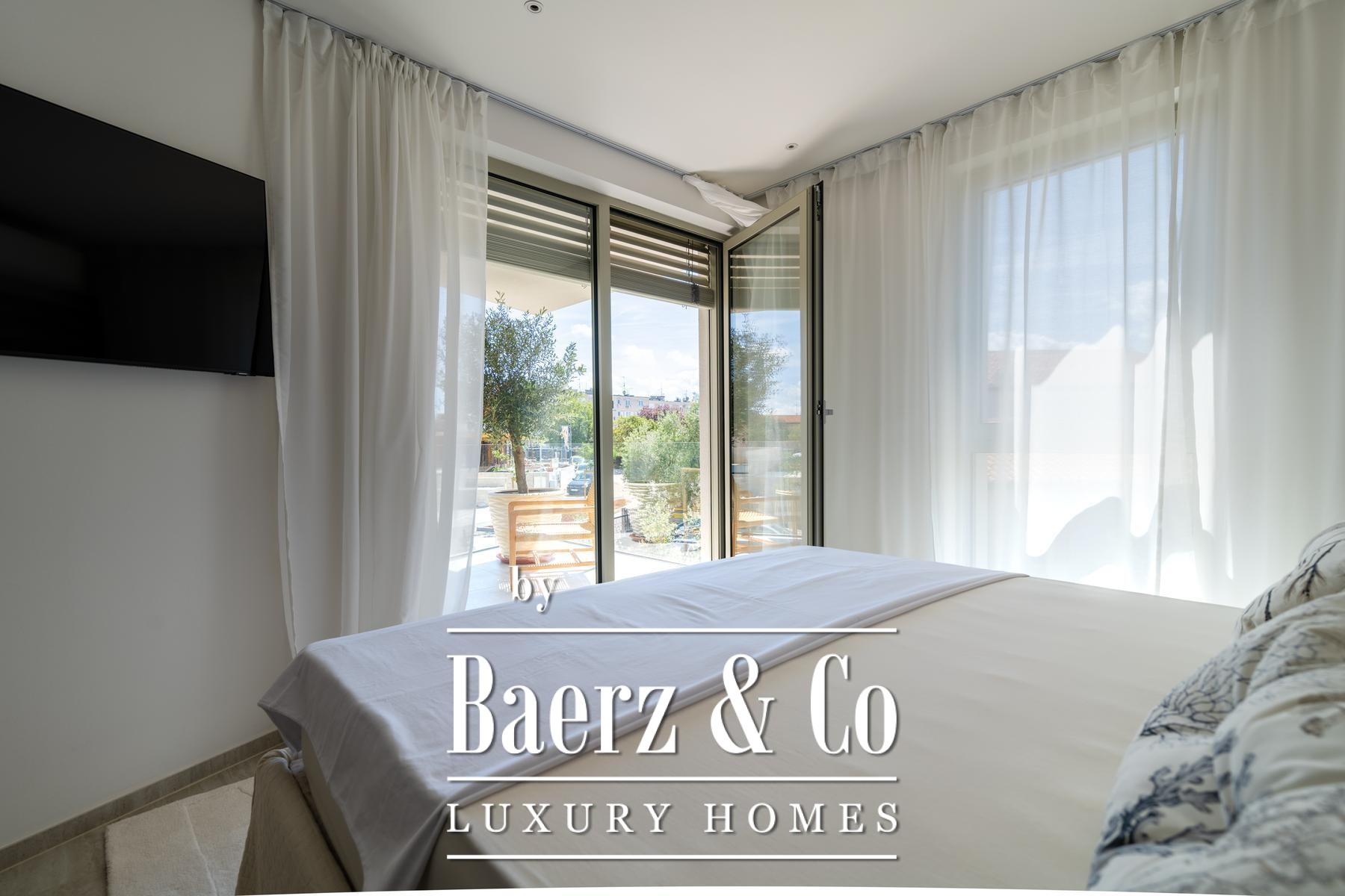 Apartment Novigrad offers a contemporary sanctuary just 200 meters from Croatia’s Adriatic coast. This modern residence provides 125.75 m² of living space on the second floor of a recently constructed building, comprised of only eight exclusive units with an elevator for ease and privacy. The apartment features three bedrooms and three bathrooms, all impeccably furnished and thoughtfully arranged to frame daily living with quiet elegance.