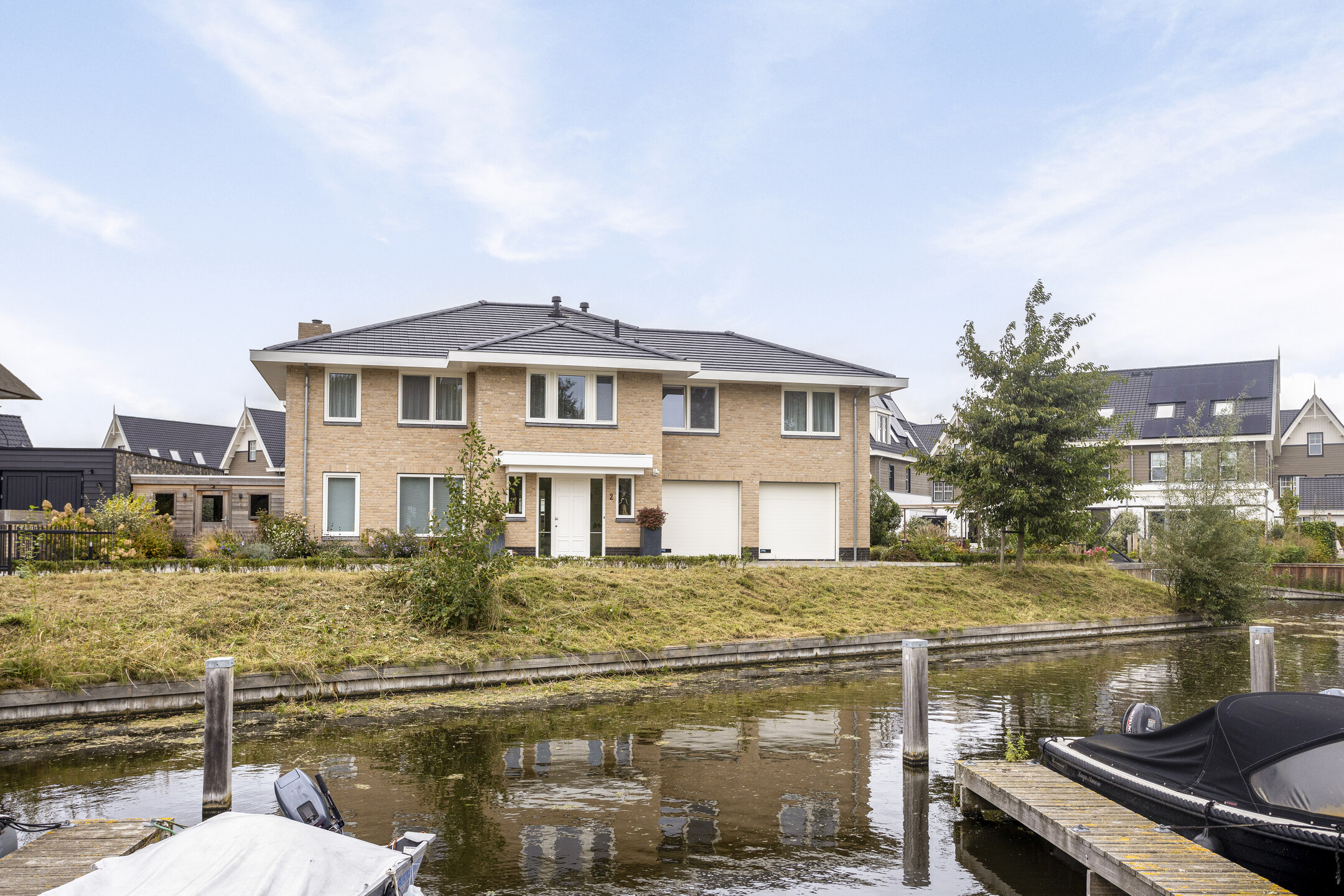 Detached villa Oegstgeest presents a sheltered world where contemporary design meets the tranquility of waterside living. This modern home, completed in 2019, anchors itself on a 762 m² plot bordered by water on three sides, offering unobstructed views and mooring for several boats, one fitted with a boat lift. The 311 m² residence is a study in sustainability, with A energy class, triple glazing, full insulation, and solar panels that balance comfort with responsibility.