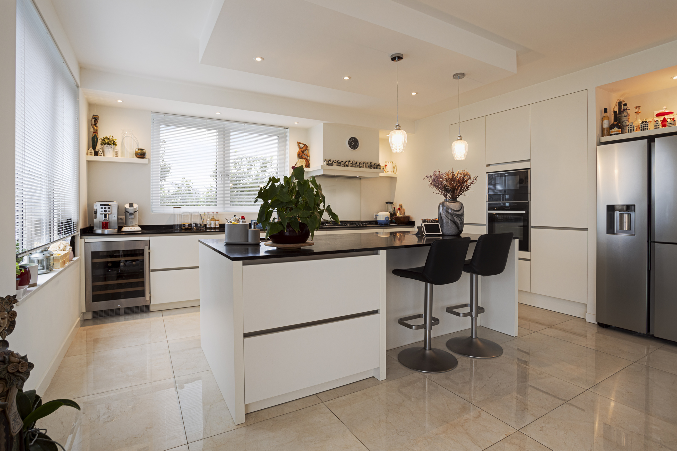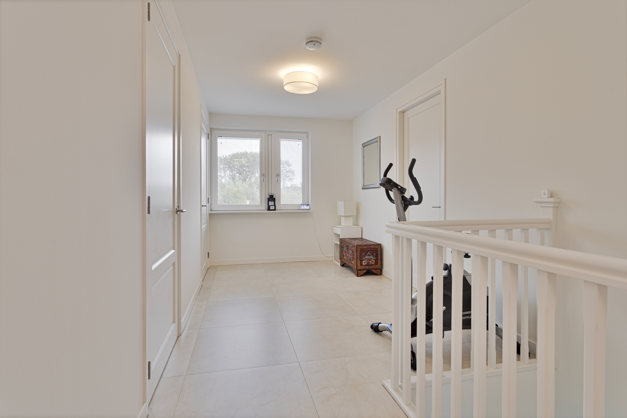 Upstairs, four large bedrooms accompany three elegant bathrooms. The principal suite features an extensive dressing room with crafted storage and a full ensuite. Additional features include a separate laundry, technical room, and a spacious attic. Located near Landskroonpark, with schools, shops, and key amenities easily reached, this luxury villa for sale in Oegstgeest merges a rare waterside setting with true contemporary ease.