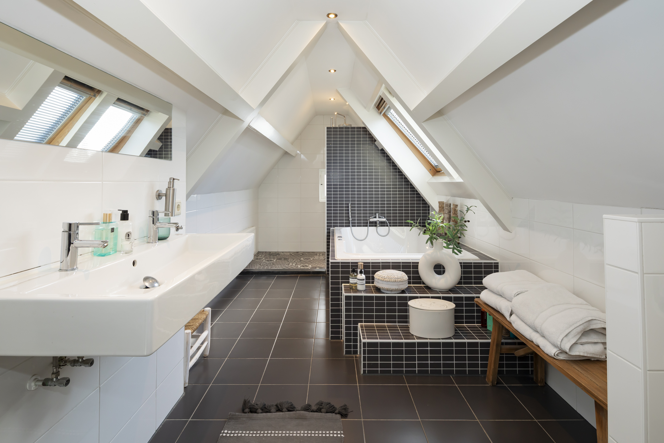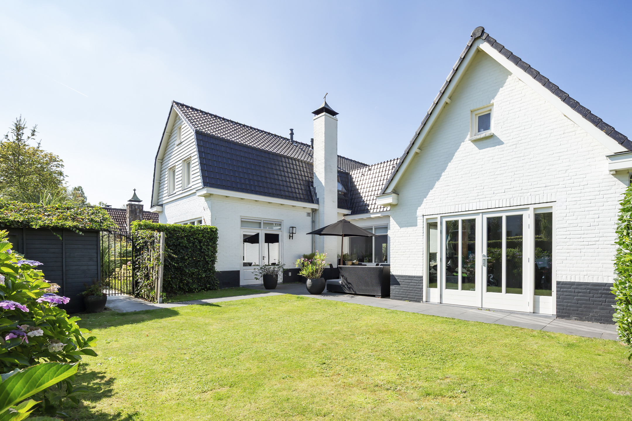 Outside, two distinct gardens allow for year-round enjoyment and complete privacy, with mature planting and stone paving. The property includes off street parking for multiple vehicles behind secure gates, and the garage is accessible from both the front and the rear. Extensive insulation and modern heating underline comfort. The location provides immediate access to natural reserves, cultural destinations, and the vibrant life of Oisterwijk, recognized for its rich amenities and green surroundings.