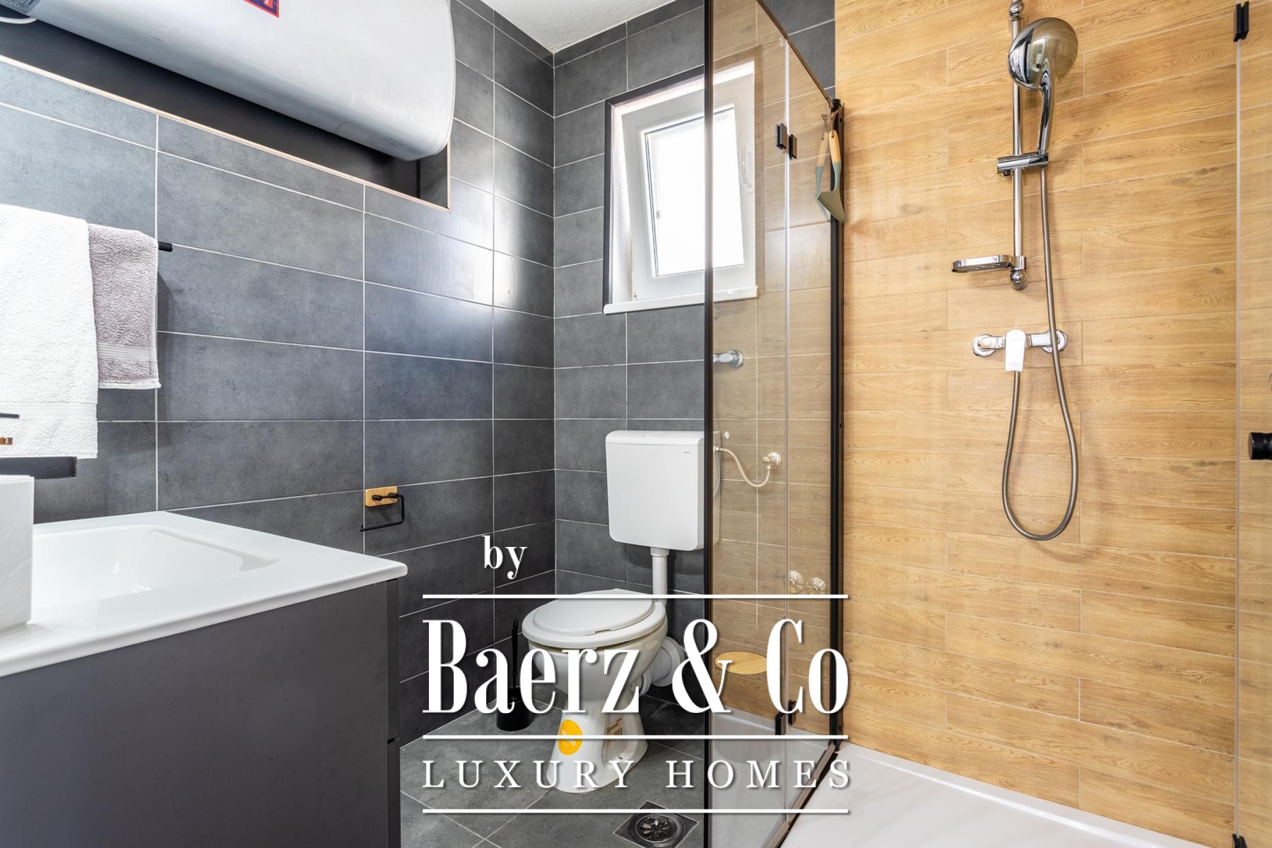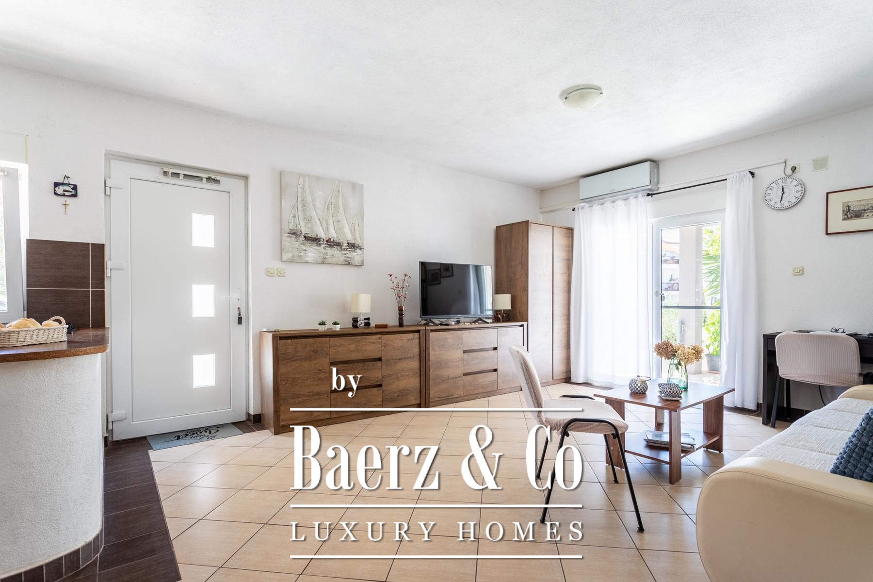 • Outdoor space features a well-maintained Mediterranean garden with olive trees, rosemary, grapevines, palms, and a variety of flowers, creating an ideal setting for relaxation. There is also an outdoor kitchen equipped with a fireplace, sink, and oven - perfect for gatherings in the shade of the grapevine.The apartments face east, south, and west, ensuring plenty of sunlight throughout the day, while the higher floors offer beautiful sea views.Five parking spaces are available directly next to the house.Further information available upon request.