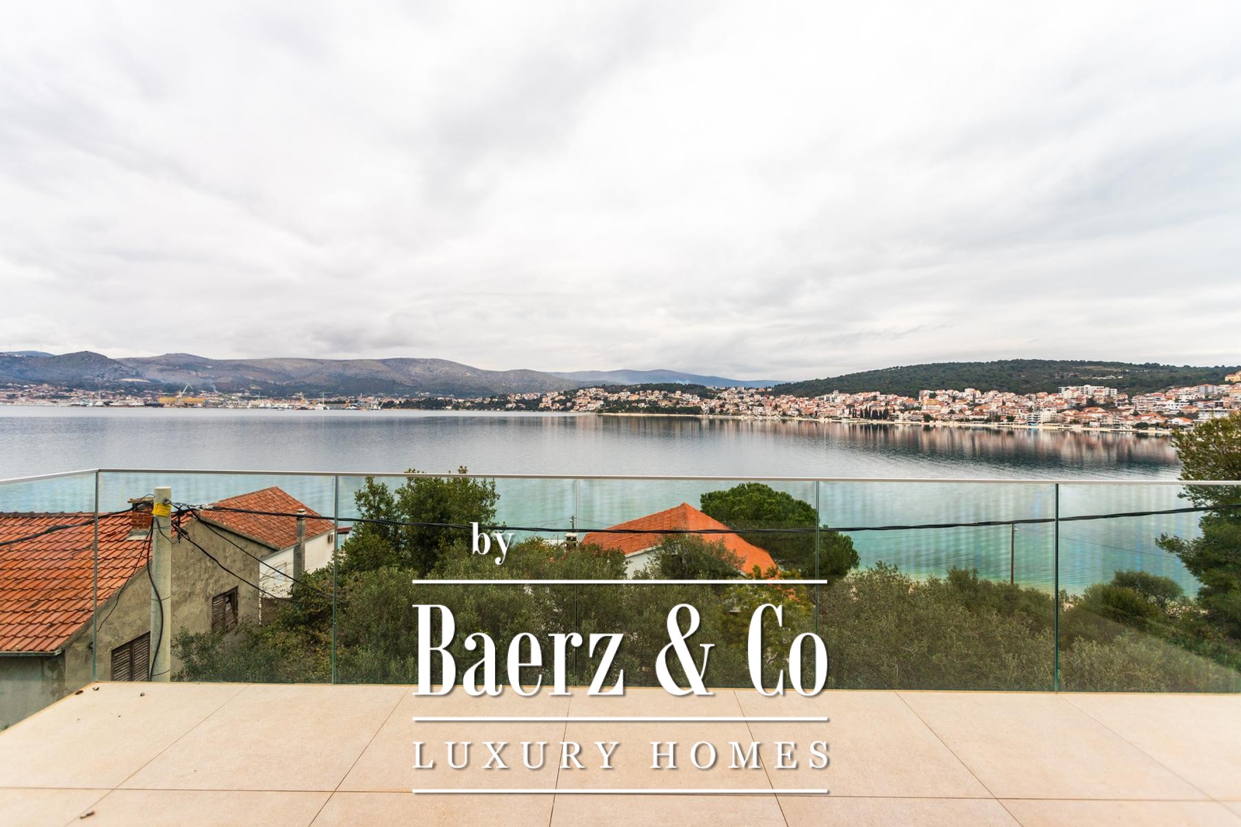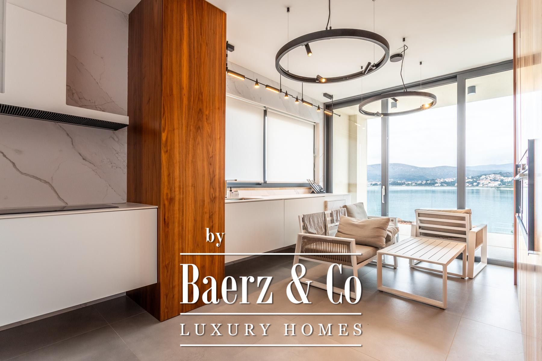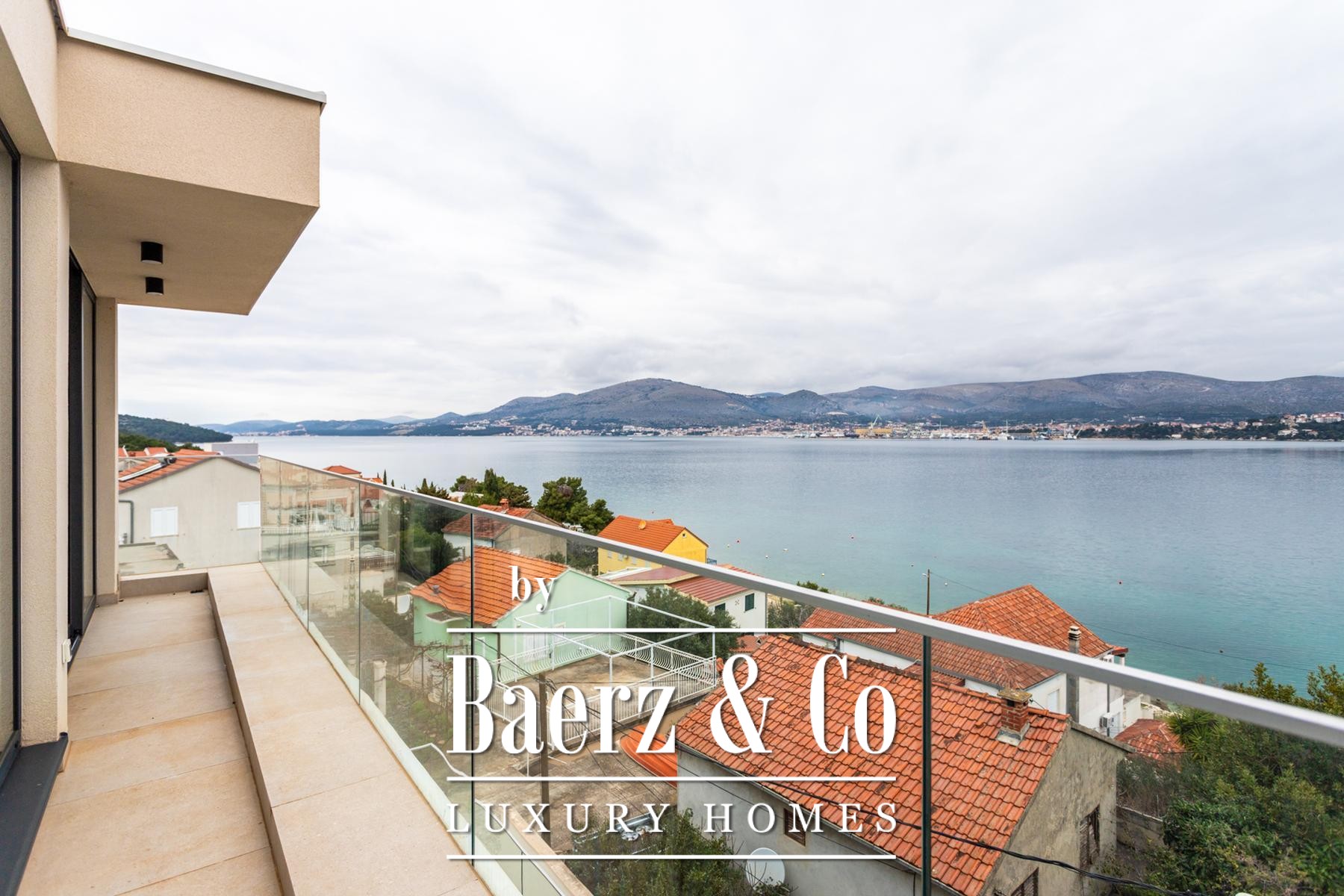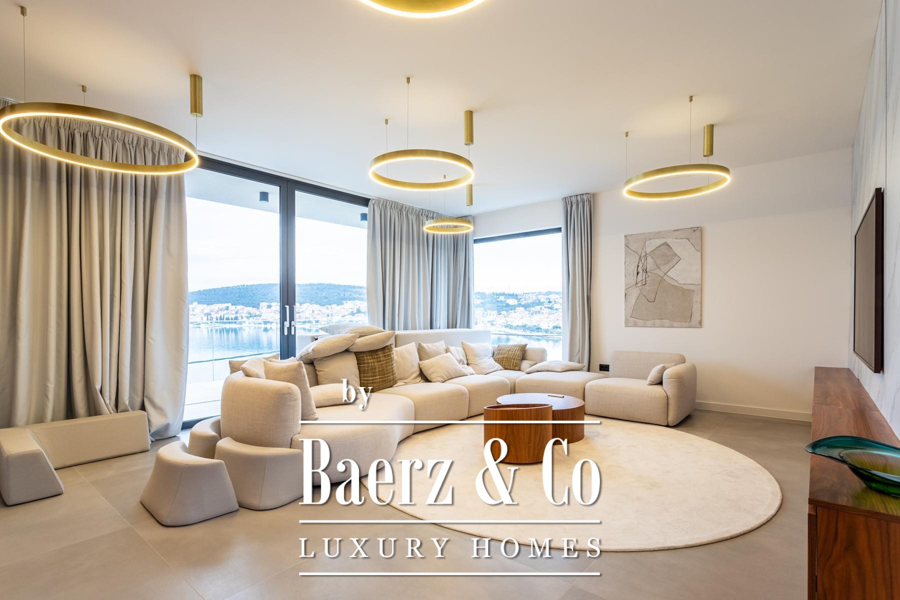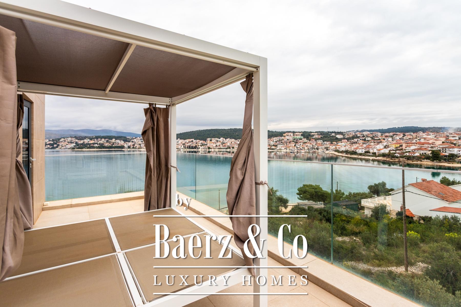 Villa Okrug with panoramic view stands just fifty meters from the pebble beach, offering both serenity and elegant living in Croatia. This modern villa features 400 m² of curated space and sits on a 470 m² plot, with architecture that embraces light, openness, and continuous flow.