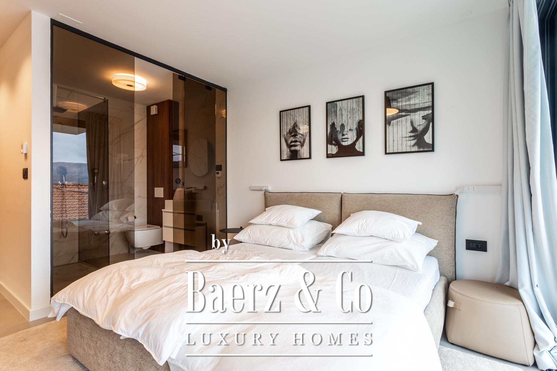 Three dedicated outdoor parking spaces and an environment enriched with Mediterranean plants underscore the villa’s effortless elegance. Air conditioning and underfloor heating throughout further elevate comfort. Proximity to Okrug’s center and the beach ensures easy access while preserving privacy. Villa Okrug with panoramic view invites refined living, just moments from the Adriatic shore.